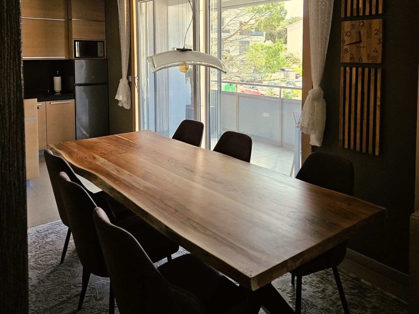 PULA, PJEŠČANA UVALA – nadstandardně zařízený apartmán s terasou, pouhých 150 metrů od moře, parkování Ve výborné lokalitě v klidné ulici, pouhých 150 metrů od moře, se nachází tento apartmán o rozloze 99,9 m², který se nachází v budově s celkem šesti apartmány. Apartmán byl kompletně zrekonstruován v roce 2025 s pětiletou zárukou na všechny spotřebiče. Byly použity nejkvalitnější materiály – masivní dřevo, pracovní deska z černé žuly, tonalitová žula na terase a ručně vyrobený akáciový stůl. Hlavní prostor tvoří otevřený obývací pokoj s kuchyní a jídelnou o rozloze 60 m² s velkými prosklenými stěnami a vstupem na krytou terasu o rozloze 23 m² s částečným výhledem na moře. Hlavní ložnice má rozlohu 12 m² a samostatnou šatnu. Apartmán dále zahrnuje koupelnu s podlahovým vytápěním o rozloze 9 m² a samostatné místnosti pro domácí spotřebiče. Vybavení zahrnuje: - dálkově ovládané žaluzie Screen Line - nové žaluzie a moskytiéry - termofólie na oknech - rekuperace vzduchu - klimatizace - pračka a sušička - lednice s mrazákem, mikrovlnnou troubou a myčkou - elektrická přípojka 8 kW K bytu náleží kryté parkovací místo o rozloze 15 m². Veškerá infrastruktura se nachází v blízkosti - obchody, kavárny, přístav a dětské hřiště. Moře je vzdálené 3 minuty chůze a pláž Pješčana Uvala 6 minut chůze.