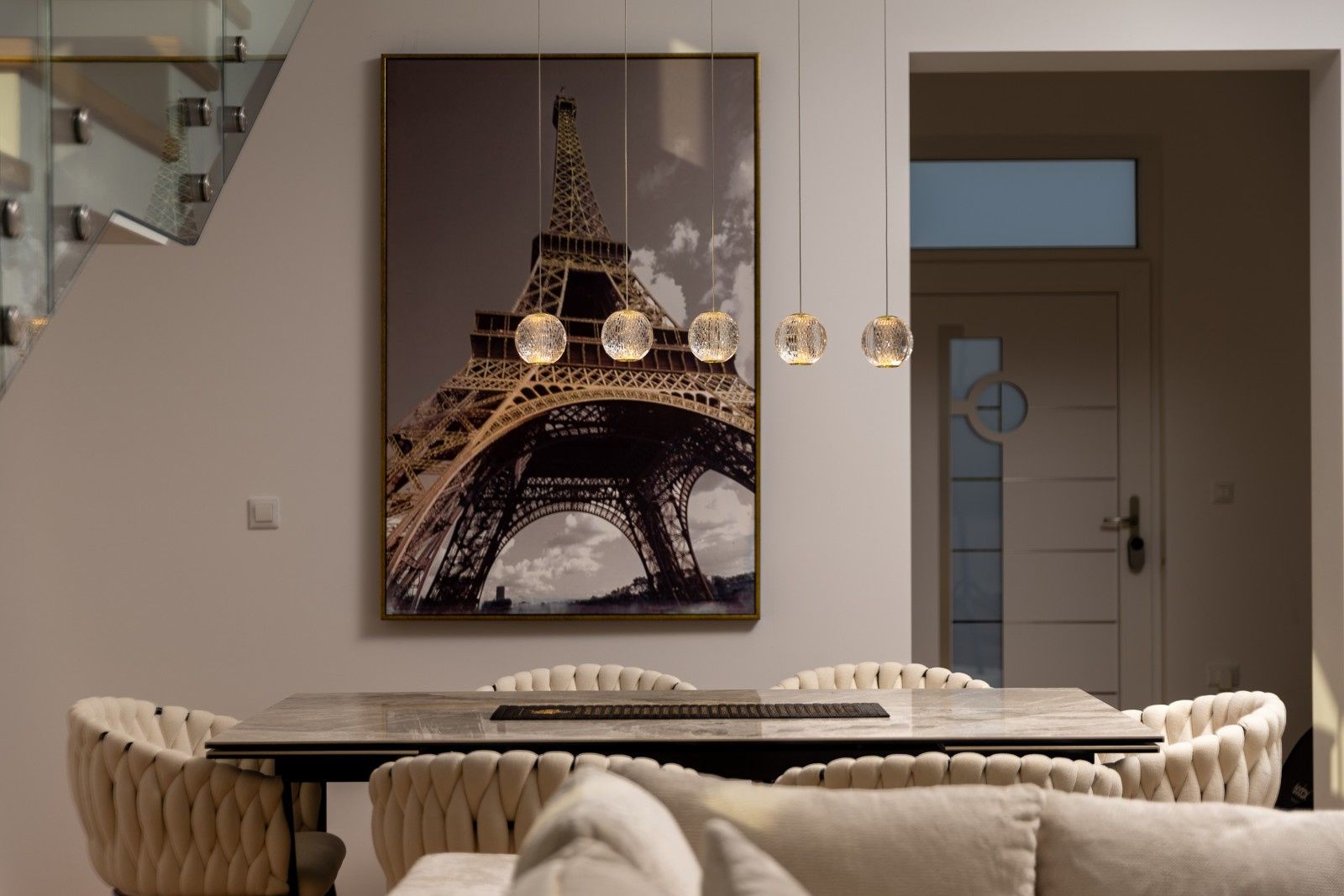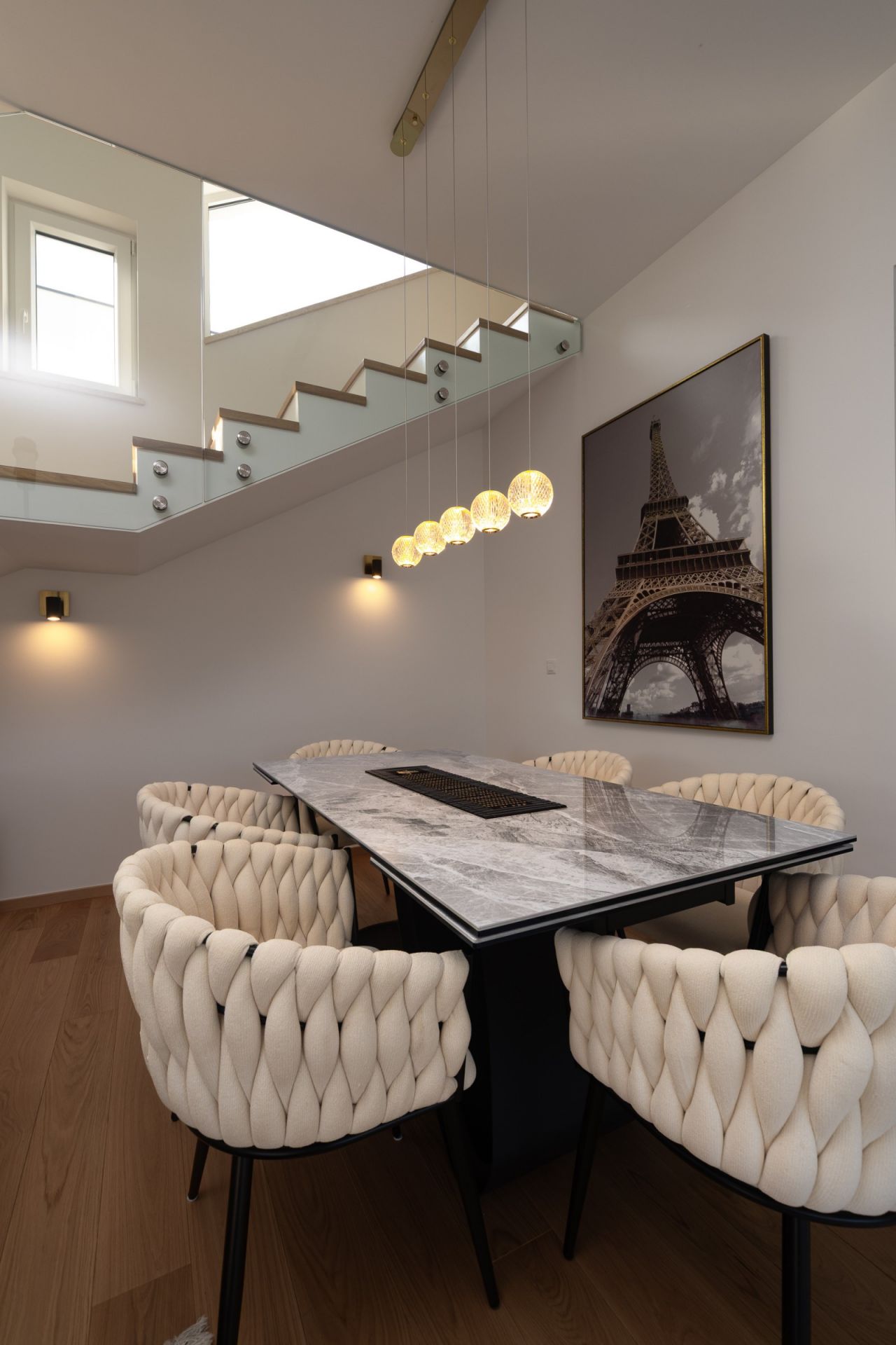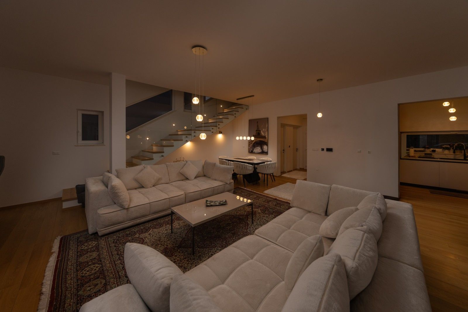 Tato elegantní vila obklopená přírodou nabízí pohodlí a soukromí pro všechny členy rodiny. Rozkládá se na dvou podlažích – přízemí a prvním patře – a představuje dokonalou rovnováhu mezi moderním komfortem a středomořským šarmem. Vila s velkou upravenou zahradou se v přízemí skládá z technické místnosti, šatny, prostorného obývacího pokoje s jídelním koutem a samostatné kuchyně. Velké prosklené stěny se otevírají na venkovní terasu a k impozantnímu vyhřívanému bazénu o rozměrech 3 x 23 m. Vnitřní schodiště vede do prvního patra, kde se nacházejí tři prostorné ložnice (všechny s přístupem na terasu), chodba, dvě koupelny a velká krytá terasa. Pozemek je pečlivě upravený středomořskou vegetací, jako je levandule, rozmarýn, oleandr, ovocné stromy, kiwi a šeřík, a automatický zavlažovací systém zajišťuje jejich dlouhodobou krásu. Venku se nachází jídelní stůl, pergola o rozměrech 4 x 4 m, gril a letní kuchyně, zatímco sedací souprava a místo na opalování s lehátky poskytují další pohodlí, ideální pro plné vychutnání klidného okolí. Bezpečnost je zajištěna alarmovým systémem, videotelefonem a elektronickým zámkem s klávesnicí. Interiér je vybaven dubovými parketami s podlahovým vytápěním, zatímco příjemné klima v každé místnosti zajišťují klimatizační jednotky BOSCH. K dispozici je parkoviště pro tři auta s automatickou bránou do dvora. Vila se nachází ve vynikající lokalitě, v klidném prostředí, ale přesto v blízkosti moře a pláží.