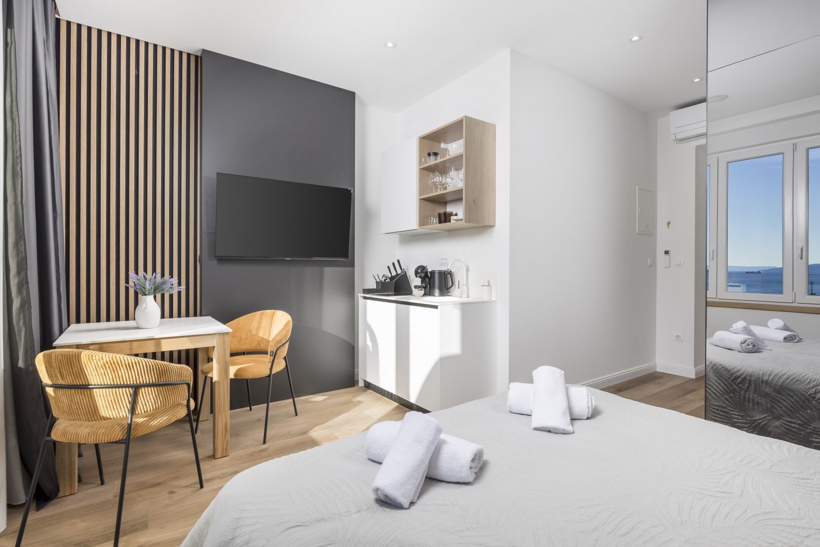 RIJEKA, CENTRUM – Prémiově zařízená nemovitost se třemi samostatnými jednotkami a výhledem na celý Kvarner V samém centru Rijeky se nachází mimořádně vzácná nemovitost, která překonává všechny standardy městského luxusu. Panoramatický vizuál táhnoucí se od Krckého mostu až po Opatiji vytváří dojem každodenního života nad městem, kde se moře, světla a architektura splývají v dechberoucí scenérii. Interiér odhaluje rafinovaný prostor s nejkvalitnějšími materiály, moderními technologiemi, vysokou funkčností a řadou detailů, které činí tuto adresu na trhu jedinečnou. Jedná se o elegantní celek navržený jako tři samostatné bytové jednotky – luxusní dvoupokojový byt s obývacím pokojem, sofistikovaný jednopokojový prostor a intimní studio. Modulární design umožňuje flexibilní využití: otevřením diskrétních posuvných panelů se dvoupokojová jednotka a studio okamžitě stanou velkým třípokojovým bytem, zatímco jednopokojový prostor lze využívat zcela samostatně nebo integrovat. Tato architektura nabízí možnost bydlení v jedné jednotce a zbývající jednotky pronajímat, sloučit je do dvou větších bytů nebo vytvořit jeden impozantní luxusní prostor v celém rozsahu. Část orientovaná na jih vyzařuje světlo, eleganci a výhled, který uchvátí od prvního kroku. Velký obývací pokoj s otevřeným prostorem odhaluje dokonalou kombinaci designu a pohodlí s vířivou vanou, sprchovými kouty, špičkovým vybavením a bezchybným zpracováním. Ložnice mají vlastní koupelny, zatímco studio nabízí soukromí, intimitu a výhled, který inspiruje k inspiraci. Na severní straně se nachází stejně atraktivní prostor se soukromým balkonem, ideální pro letní měsíce, setkání, grilování nebo klidná rána s výhledem na Susak, bulvár a impozantní staré budovy. Vysoké stropy a velká okna vytvářejí atmosféru sofistikovanosti a kvalita zpracování je viditelná v každém segmentu: moderní klimatizace ve všech místnostech, prémiové domácí spotřebiče, nábytek na míru, stropní reproduktory připojené přes Bluetooth, samostatné měřiče, elektronické zámky s možností samoobslužného check-inu, špičková izolace a nově vybudovaný výtah, který zajišťuje snadný a elegantní přístup. Rekonstrukce byla provedena kompletně – od instalací až po povrchové materiály – s mimořádnou pečlivostí a dokumentací, která je k dispozici k nahlédnutí. Budova má společnou terasu v patře nad bytem, která je téměř nikým nevyužívána, a úložný prostor ve stejném patře dále zvyšuje praktičnost. Panoramatický výhled je trvale zajištěn díky konfiguraci křižovatky před budovou, což z této nemovitosti dělá investici, jejíž hodnota se jen zvyšuje. Kategorizace pro turistický pronájem dále zvyšuje potenciál – ideální pro dlouhodobý příjem, prémiovou krátkodobou nabídku nebo kombinaci soukromého života a obchodních příležitostí na jedné adrese. Městský, exkluzivní a dokonale zařízený prostor nabízí skutečně luxusní životní styl v samém centru Rijeky, s plážemi, restauracemi, kulturními atrakcemi a promenádami v docházkové vzdálenosti několika minut. Nemovitost představuje vzácnou příležitost pro kupující, kteří hledají něco špičkového, zejména s velkým prostorem pro rozvoj. Pro další informace nebo pro domluvení prohlídky mě prosím s důvěrou kontaktujte, rád vám pomohu splnit vaše sny! *** !