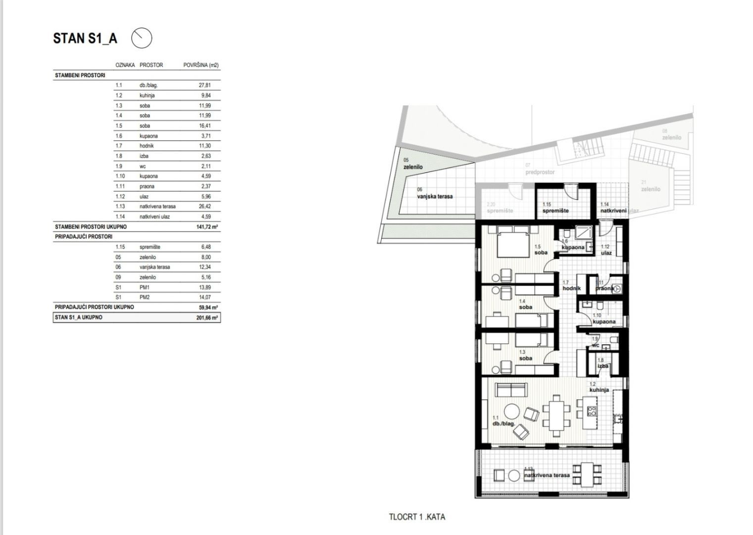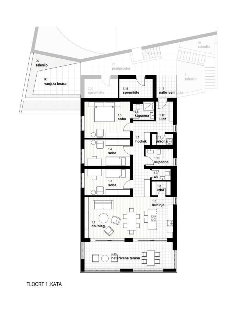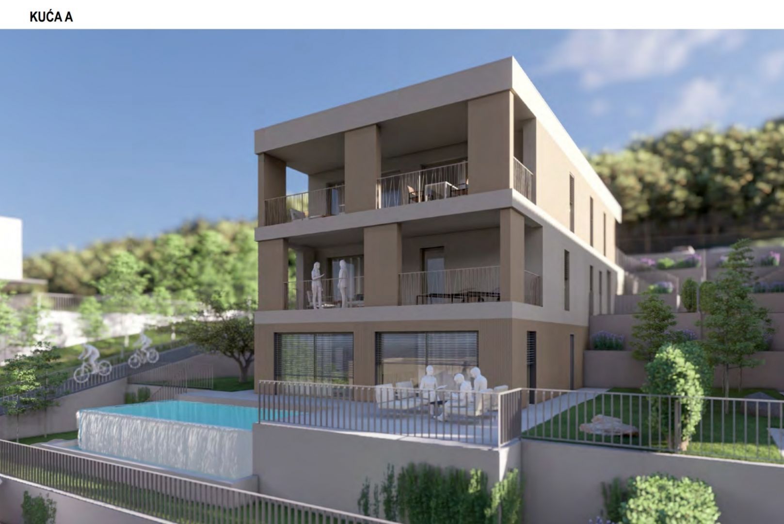 RIJEKA, KOSTRENA - exkluzivní byt 141,72m2, novostavba s krásným výhledem na moře + zahrada 59,94m2 - S1-A Nabízíme nemovitost, která Vám nabízí moderní design a eleganci, komfort a špičkové vybavení a nachází se v krásné, klidné lokalitě v blízkosti MHD, škol, školek, nákupních center a deset minut jízdy od Rijeky. Komplex 4 bytových domů s celkem 8 apartmány se nachází severně od Jadranské magistrály v oblasti "Zelena Kostrena" odkud je krásný výhled na celý Kvarnerský záliv. V bezprostřední blízkosti se nachází 10 kilometrů dobře udržovaných turistických, cyklistických a fitness stezek, které procházejí nejvyššími částmi Kostrena od vrcholu Solin až po vrchol Sopalj. Přístup k domům je řešen z horní komunikace, kde je plánována úprava a rozšíření stávající komunikace. Každý dům má čtyři venkovní parkovací stání, nebo dvě parkovací stání na bytovou jednotku. Každý dům se skládá ze dvou apartmánů. Byty na horních dvou pozemcích jsou umístěny nad sebou, byty na spodních dvou pozemcích jsou umístěny vedle sebe. Ke každému bytu náleží část zahrady. DŮM A byt S1 - A: OBÝVACÍ PROSTORY: - obývací pokoj / jídelna 27,81 - kuchyně 9,84 - pokoj 11,99 - pokoj 11,99 - pokoj 16,41 - koupelna 3,71 - předsíň 11,30 - šatna 2,63 - WC 2,11 - koupelna 6 - koupelna 2 - zastřešená 4.5. krytý vchod 4,59 BYTOVÉ PROSTORY CELKEM: 141,72 m² SPOLEČENSKÉ PROSTORY: - komora 6,48 - zeleň 8,00 - venkovní terasa 12,34 - zeleň 5,16 - stání 1 13,89 - stání 2 14,07 PARTNERSKÉ PROSTORY 9,07 PARTNERSKÉ PROSTORY: BYT S1- CELKOVÁ PLOCHA (m2): 201,66 m² Tento luxusní byt je navržen pro maximální pohodlí. VYBAVENÍ: Dům, ve kterém se byt nachází, je kvalitně postavený a luxusně vybavený, veškeré vestavěné materiály, podlahové a stěnové krytiny jsou na nejvyšší úrovni. - zateplení fasády o tloušťce 10 cm - podlahové vytápění - tepelná čerpadla - špičkové hliníkové truhlářství. K bytu náleží vlastní zahrada a 2 parkovací stání. CENA: Uvedená cena se vztahuje na kompletně dokončené zařízení na klíč, bez nábytku. Cena je včetně DPH, kupující je osvobozen od placení daně z nemovitých věcí. V případě nákupu od společnosti registrované v Chorvatsku je po prodeji možné vrácení DPH v plné výši. Čistý a uklizený majetek. Určitě krásná nemovitost pro luxusní rodinný život, ale vhodná i jako investice v podobě elitní turistiky. JEDINEČNÁ NEMOVITOST URČITĚ STOJÍ ZA VAŠI POZORNOST VE SKVĚLÉ MÍSTĚ!!! KOSTRÉNA Kostrena je staré oblíbené přímořské město, poprvé zmíněno na začátku 15. století. První obecní samostatnost získala v roce 1874, ale udržela si ji velmi krátce, pouhé dva roky. Je rozdělena na dvě části, sv. Lucii a sv. Barbory, podle názvů dvou kostelů, které v jeho areálu existují. Kostrena se nachází v bezprostřední blízkosti města Rijeka, obklopeného zálivy Martinšćica a Bakar. Poloostrov Kostrena je asi 10 kilometrů dlouhý a mírně se svažuje k pobřeží. Po celé její délce jsou nádherné pláže, které v létě navštěvují tisíce plavců. Nejznámější a nejnavštěvovanější jsou ty v zátoce Žurkovo, dále Smokvinovo, Svežanj, Spužvina, Podražica, Nova voda a Perilo. Kostrena se skládá z asi dvaceti osad, z nichž mnohé byly pojmenovány po rodinách, a dnes jsou nejlidnatější Vrh Martinšćice, Glavani, Sv. Lucija, Rožmanići, Doričići a Paveki. Charakteristickým znakem této oblasti je charakteristická krasová oblast se středomořskými rostlinami a slavnou Kostrena gromača, stejně jako mírné klima, které někdy ustupuje silným poryvům větru bóra.