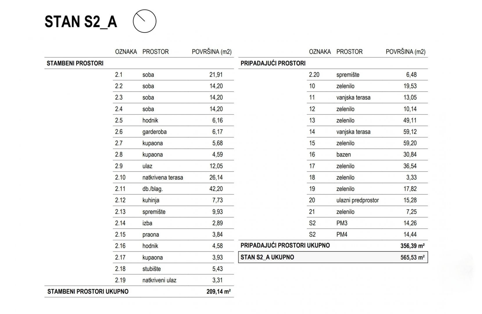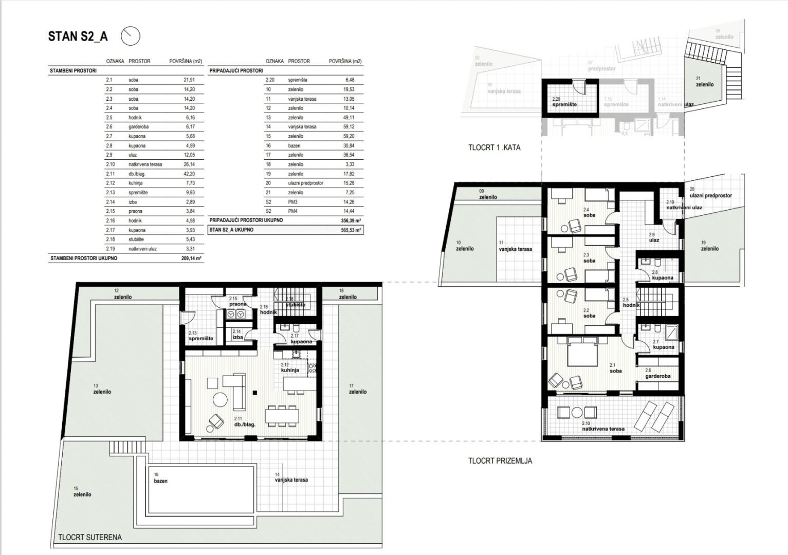 RIJEKA, KOSTRENA - exkluzivní dvoupodlažní byt 209,14 m2, novostavba s krásným výhledem na moře a bazén + zahrada 356,39 m2 - S2-A Nabízíme nemovitost, která Vám nabízí moderní design a eleganci, komfort a špičkové vybavení a nachází se v krásné, klidné lokalitě v blízkosti MHD, škol, školek, nákupních center a deset minut jízdy od Rijeky. Komplex 4 bytových domů s celkem 8 apartmány se nachází severně od Jadranské magistrály v oblasti "Zelena Kostrena" odkud je krásný výhled na celý Kvarnerský záliv. V bezprostřední blízkosti se nachází 10 kilometrů dobře udržovaných turistických, cyklistických a fitness stezek, které procházejí nejvyššími částmi Kostrena od vrcholu Solin až po vrchol Sopalj. Přístup k domům je řešen z horní komunikace, kde je plánována úprava a rozšíření stávající komunikace. Každý dům má čtyři venkovní parkovací stání, nebo dvě parkovací stání na bytovou jednotku. Každý dům se skládá ze dvou apartmánů. Byty na horních dvou pozemcích jsou umístěny nad sebou, byty na spodních dvou pozemcích jsou umístěny vedle sebe. Ke každému bytu náleží část zahrady. DŮM A byt S2 - A: OBYTNÉ PROSTORY: - pokoj 21,91 - pokoj 14,20 - pokoj 14,20 - pokoj 14,20 - chodba 6,16 - šatna 6,17 - koupelna 5,68 - koupelna 4,59 - vchod 12,05 - krytá terasa / jídelna 26,73 - jídelna 26,73 - jídelna šatna 2,89 - prádelna 3,84 - předsíň 4,58 - koupelna 3,93 - schodiště 5,43 - krytý vchod 3,31 BYTOVÉ PROSTORY CELKEM (m2): 209,14 m² DRUHOVÉ PROSTORY: - komora 6,48 - zeleň venkovní 10 - terasa 10 - zeleň - zeleň 49,11 - venkovní terasa 59,12 - zeleň 59,20 - bazén 30,84 - zeleň 36,54 - zeleň 3,33 - zeleň 17,82 - vstupní hala 15,28 - zeleň 7,25 - parkovací stání 3 14,26 - parkovací stání 4ACED6.1 PART MENT S2-A CELKOVÁ PLOCHA: 565,53 m² Tento luxusní apartmán je navržen pro maximální pohodlí. VYBAVENÍ: Dům, ve kterém se byt nachází, je kvalitně postavený a luxusně vybavený, veškeré vestavěné materiály, podlahové a stěnové krytiny jsou na nejvyšší úrovni. - 10cm silná fasádní izolace - podlahové vytápění - tepelná čerpadla - špičkové hliníkové truhlářství. K bytu náleží vlastní zahrada a 2 parkovací stání. CENA: Uvedená cena se vztahuje na kompletně dokončené zařízení na klíč, bez nábytku. Cena je včetně DPH, kupující je osvobozen od placení daně z nemovitých věcí. V případě nákupu od společnosti registrované v Chorvatsku je po prodeji možné vrácení DPH v plné výši. Čistý a uklizený majetek. Určitě krásná nemovitost pro luxusní rodinný život, ale vhodná i jako investice v podobě elitní turistiky. JEDINEČNÁ NEMOVITOST URČITĚ STOJÍ ZA VAŠI POZORNOST VE SKVĚLÉ MÍSTĚ!!! KOSTRÉNA Kostrena je staré oblíbené přímořské město, poprvé zmíněno na začátku 15. století. První obecní samostatnost získala v roce 1874, ale udržela si ji velmi krátce, pouhé dva roky. Dělí se na dvě části, sv. Lucii a sv. Barbory, podle názvů dvou kostelů, které v jeho areálu existují. Kostrena se nachází v bezprostřední blízkosti města Rijeka, obklopeného zálivy Martinšćica a Bakar. Poloostrov Kostrena je asi 10 kilometrů dlouhý a mírně se svažuje k pobřeží. Po celé její délce jsou krásné pláže, které v létě navštěvují tisíce plavců. Nejznámější a nejnavštěvovanější jsou ty v zátoce Žurkovo, dále Smokvinovo, Svežanj, Spužvina, Podražica, Nova voda a Perilo. Kostrena se skládá z asi dvaceti osad, z nichž mnohé byly pojmenovány po rodinách, a dnes jsou nejlidnatější Vrh Martinšćice, Glavani, Sv. Lucija, Rožmanići, Doričići a Paveki. Charakteristickým znakem této oblasti je charakteristická krasová oblast se středomořskými rostlinami a slavnou Kostrena gromača, stejně jako mírné klima, které někdy ustupuje silným poryvům větru bóra.
