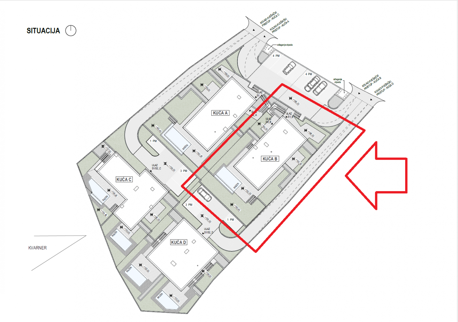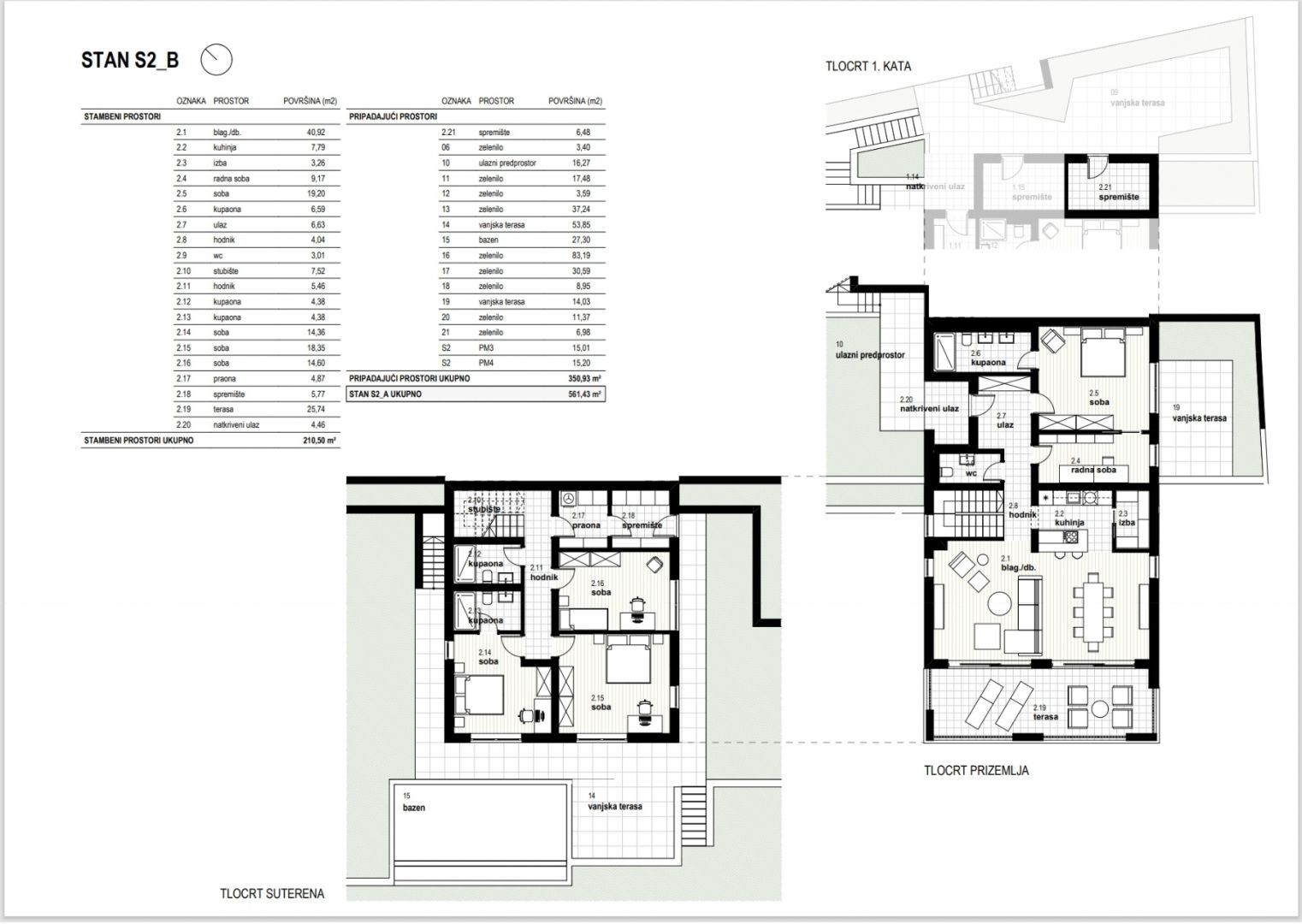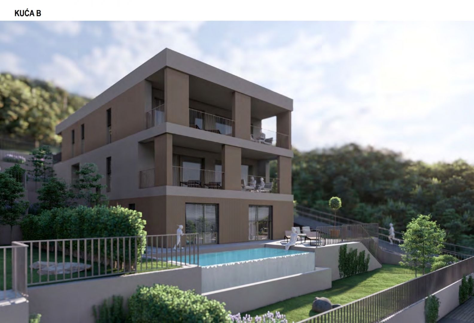 RIJEKA, KOSTENA - exkluzivní dvoupodlažní byt 210,50 m2, novostavba s krásným výhledem na moře a bazén + zahrada 350,93 m2 - S2-B Nabízíme nemovitost, která Vám nabízí moderní design a eleganci, komfort a špičkové vybavení a nachází se v krásné, klidné lokalitě v blízkosti MHD, škol, školek, nákupních center a deset minut jízdy od Rijeky. Komplex 4 bytových domů s celkem 8 apartmány se nachází severně od Jadranské magistrály v oblasti "Zelena Kostrena" odkud je krásný výhled na celý Kvarnerský záliv. V bezprostřední blízkosti se nachází 10 kilometrů dobře udržovaných turistických, cyklistických a fitness stezek, které procházejí nejvyššími částmi Kostrena od vrcholu Solin až po vrchol Sopalj. Přístup k domům je řešen z horní komunikace, kde je plánována úprava a rozšíření stávající komunikace. Každý dům má čtyři venkovní parkovací stání, nebo dvě parkovací stání na bytovou jednotku. Každý dům se skládá ze dvou apartmánů. Byty na horních dvou pozemcích jsou umístěny nad sebou, byty na spodních dvou pozemcích jsou umístěny vedle sebe. Ke každému bytu náleží část zahrady. DŮM B byt S2 - B: OBÝVACÍ PROSTORY: - obývací pokoj / jídelna 40,92 - kuchyně 7,79 - spíž 3,26 - pracovna 9,17 - pokoj 19,20 - koupelna 6,59 - vstup 6,63 - chodba 4,04 - WC 3,01 - schodiště 3 chodba -5 koupelna 7,4 koupelna 7,4 4,36 - pokoj 18,35 - pokoj 14,60 - prádelna 4,87 - komora 5,77 - terasa 25,74 - krytý vchod 4,46 OBYTNÉ PROSTORY CELKEM: 210,50 m² SPOLEČENSKÉ PROSTORY: - komora 6,48 - zeleň 1 vstupní hala 7 - zeleň 7 - zeleň 3,48 - zeleň 3,59 - zeleň 37,24 - venkovní terasa 53,85 - bazén 27,30 - zeleň 83,19 - zeleň 30,59 - zeleň 8,95 - venkovní terasa 14,03 - zeleň 11,37 - zeleň 6,98 - parkovací stání 3 AS01 SIGN PARK 15.01 0,93 m² BYT S2-B CELKEM: 561,43 m² Tento luxusní apartmán je navržen pro maximální pohodlí. VYBAVENÍ: Dům, ve kterém se byt nachází, je kvalitně postavený a luxusně vybavený, veškeré vestavěné materiály, podlahové a stěnové krytiny jsou na nejvyšší úrovni. - 10cm silná fasádní izolace - podlahové vytápění - tepelná čerpadla - špičkové hliníkové truhlářství. K bytu náleží vlastní zahrada a 2 parkovací stání. CENA: Uvedená cena se vztahuje na kompletně dokončené zařízení na klíč, bez nábytku. Cena je včetně DPH, kupující je osvobozen od placení daně z nemovitých věcí. V případě nákupu od společnosti registrované v Chorvatsku je po prodeji možné vrácení DPH v plné výši. Čistý a uklizený majetek. Určitě krásná nemovitost pro luxusní rodinný život, ale vhodná i jako investice v podobě elitní turistiky. JEDINEČNÁ NEMOVITOST URČITĚ STOJÍ ZA VAŠI POZORNOST VE SKVĚLÉ MÍSTĚ!!! KOSTRÉNA Kostrena je staré oblíbené přímořské město, poprvé zmíněno na začátku 15. století. První obecní samostatnost získala v roce 1874, ale udržela si ji velmi krátce, pouhé dva roky. Dělí se na dvě části, sv. Lucii a sv. Barbory, podle názvů dvou kostelů, které v jeho areálu existují. Kostrena se nachází v bezprostřední blízkosti města Rijeka, obklopeného zálivy Martinšćica a Bakar. Poloostrov Kostrena je asi 10 kilometrů dlouhý a mírně se svažuje k pobřeží. Po celé její délce jsou krásné pláže, které v létě navštěvují tisíce plavců. Nejznámější a nejnavštěvovanější jsou ty v zátoce Žurkovo, dále Smokvinovo, Svežanj, Spužvina, Podražica, Nova voda a Perilo. Kostrena se skládá z asi dvaceti osad, z nichž mnohé byly pojmenovány po rodinách, a dnes jsou nejlidnatější Vrh Martinšćice, Glavani, Sv. Lucija, Rožmanići, Doričići a Paveki. Charakteristickým znakem této oblasti je charakteristická krasová oblast se středomořskými rostlinami a slavnou Kostrena gromača, stejně jako mírné klima, které někdy ustupuje silným poryvům větru bóra.