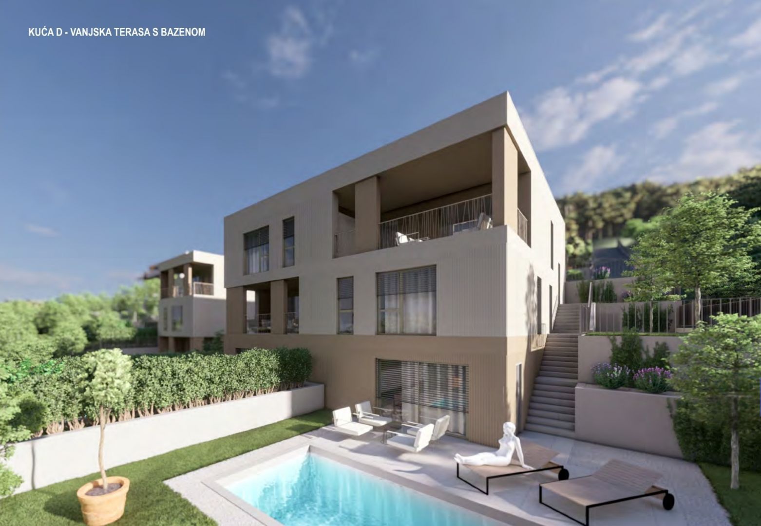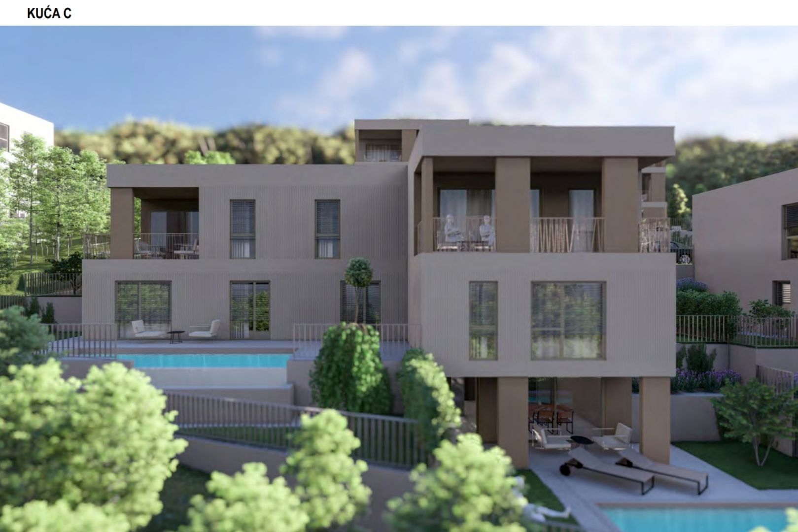 RIJEKA, KOSTENA - exkluzivní mezonetový byt 212,23 m2 novostavba s krásným výhledem na moře a bazénem + zahrada 153,70 m2 - S2-C Nabízíme nemovitost, která Vám nabízí moderní design a eleganci, komfort a špičkové vybavení a nachází se v krásné, klidné lokalitě v blízkosti MHD, škol, školek, nákupních center a deset minut jízdy od Rijeky. Komplex 4 bytových domů s celkem 8 apartmány se nachází severně od Jadranské magistrály v oblasti "Zelena Kostrena" odkud je krásný výhled na celý Kvarnerský záliv. V bezprostřední blízkosti se nachází 10 kilometrů dobře udržovaných turistických, cyklistických a fitness stezek, které procházejí nejvyššími částmi Kostrena od vrcholu Solin až po vrchol Sopalj. Přístup k domům je řešen z horní komunikace, kde je plánována úprava a rozšíření stávající komunikace. Každý dům má čtyři venkovní parkovací stání, nebo dvě parkovací stání na bytovou jednotku. Každý dům se skládá ze dvou apartmánů. Byty na horních dvou pozemcích jsou umístěny nad sebou, byty na spodních dvou pozemcích jsou umístěny vedle sebe. Ke každému bytu náleží část zahrady. DŮM C byt S2 - C: OBÝVACÍ PROSTORY: - obývací pokoj / jídelna 32.01 - kuchyně 11.10 - schodiště 5.72 - vchod 7.96 - WC 2.78 - pokoj 10.20 - pokoj 10.21 - pokoj 14.89 - komora komora - komora 2.4 6 - schodiště 7,64 - schodiště 7,79 - hostinec 32,17 - komora 4,52 - wc 2,79 - krytá terasa 15,28 - terasa 15,52 - komora 4,57 - koupelna 4,60 CELKOVÉ OBBYTNÉ PROSTORY: 212,23 - PROSTORY zeleně venkovní terasa 12,26 - bazén 18,00 - zeleň 3,99 - venkovní terasa 15,16 - zeleň 17,92 - zeleň 7,97 - stání 3 11,95 - stání 4 11,95 PŘIDĚLENÉ PROSTORY CELKEM: 153,70 m² max. komfort BYTU 6 BYT 3. 3. luxusní byt je určen pro BYT S9:3.- VYBAVENÍ: Dům, ve kterém se byt nachází, je kvalitně postavený a luxusně vybavený, veškeré vestavěné materiály, podlahové a stěnové krytiny jsou na nejvyšší úrovni. - zateplení fasády o tloušťce 10 cm - podlahové vytápění - tepelná čerpadla - špičkové hliníkové truhlářství. K bytu náleží vlastní zahrada a 2 parkovací stání. CENA: Uvedená cena se vztahuje na kompletně dokončené zařízení na klíč, bez nábytku. Cena je včetně DPH, kupující je osvobozen od placení daně z nemovitých věcí. V případě nákupu od společnosti registrované v Chorvatsku je po prodeji možné vrácení DPH v plné výši. Čistý a uklizený majetek. Určitě krásná nemovitost pro luxusní rodinný život, ale vhodná i jako investice v podobě elitní turistiky. JEDINEČNÁ NEMOVITOST URČITĚ STOJÍ ZA VAŠI POZORNOST VE SKVĚLÉ MÍSTĚ!!! KOSTRÉNA Kostrena je staré oblíbené přímořské město, poprvé zmíněno na začátku 15. století. První obecní samostatnost získala v roce 1874, ale udržela si ji velmi krátce, pouhé dva roky. Dělí se na dvě části, sv. Lucii a sv. Barbory, podle názvů dvou kostelů, které v jeho areálu existují. Kostrena se nachází v bezprostřední blízkosti města Rijeka, obklopeného zálivy Martinšćica a Bakar. Poloostrov Kostrena je asi 10 kilometrů dlouhý a mírně se svažuje k pobřeží. Po celé její délce jsou nádherné pláže, které v létě navštěvují tisíce plavců. Nejznámější a nejnavštěvovanější jsou ty v zátoce Žurkovo, dále Smokvinovo, Svežanj, Spužvina, Podražica, Nova voda a Perilo. Kostrena se skládá z asi dvaceti osad, z nichž mnohé byly pojmenovány po rodinách, a dnes jsou nejlidnatější Vrh Martinšćice, Glavani, Sv. Lucija, Rožmanići, Doričići a Paveki. Charakteristickým znakem této oblasti je charakteristická krasová oblast se středomořskými rostlinami a slavnou Kostrena gromača, stejně jako mírné klima, které někdy ustupuje silným poryvům větru bóra.