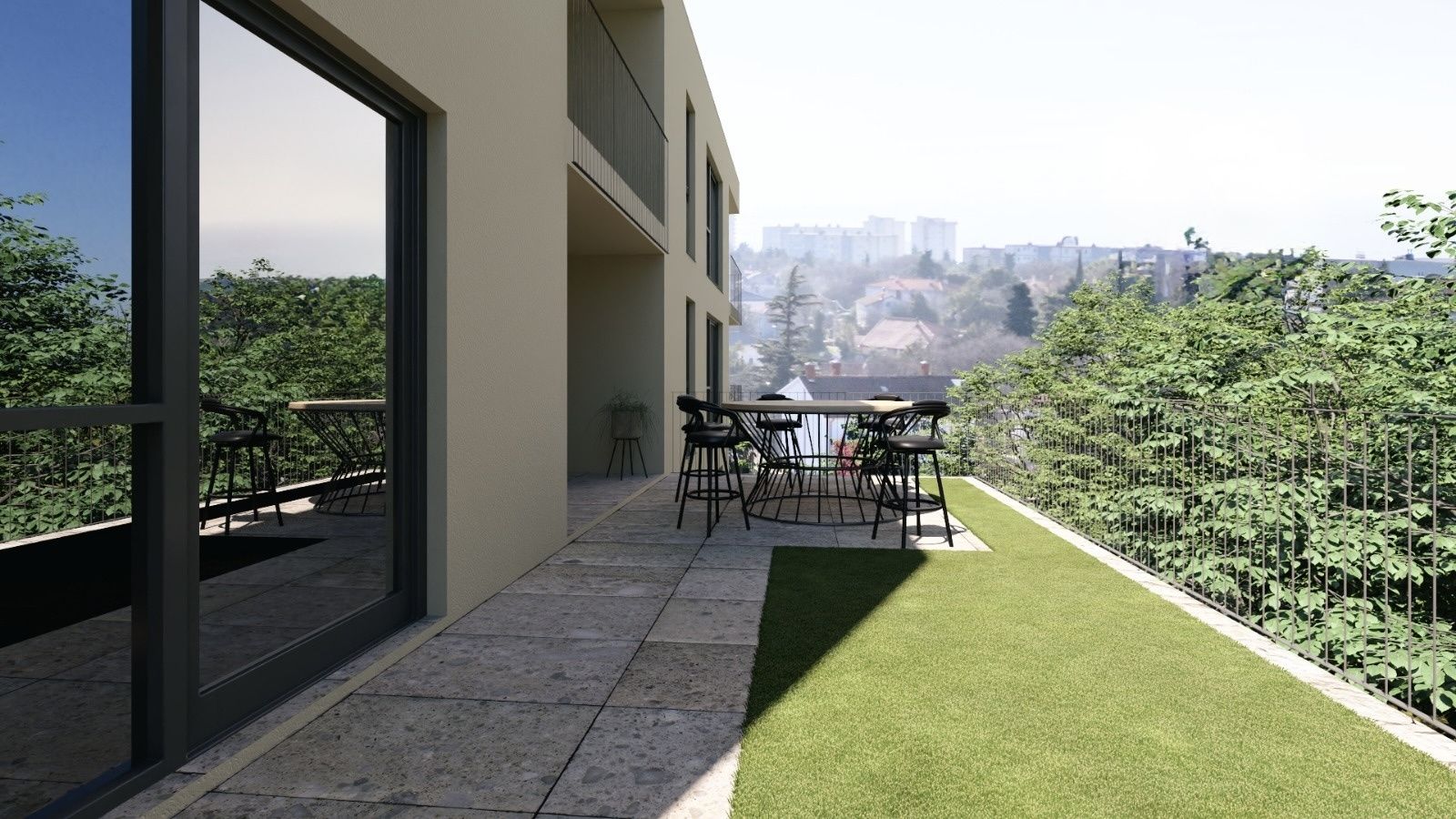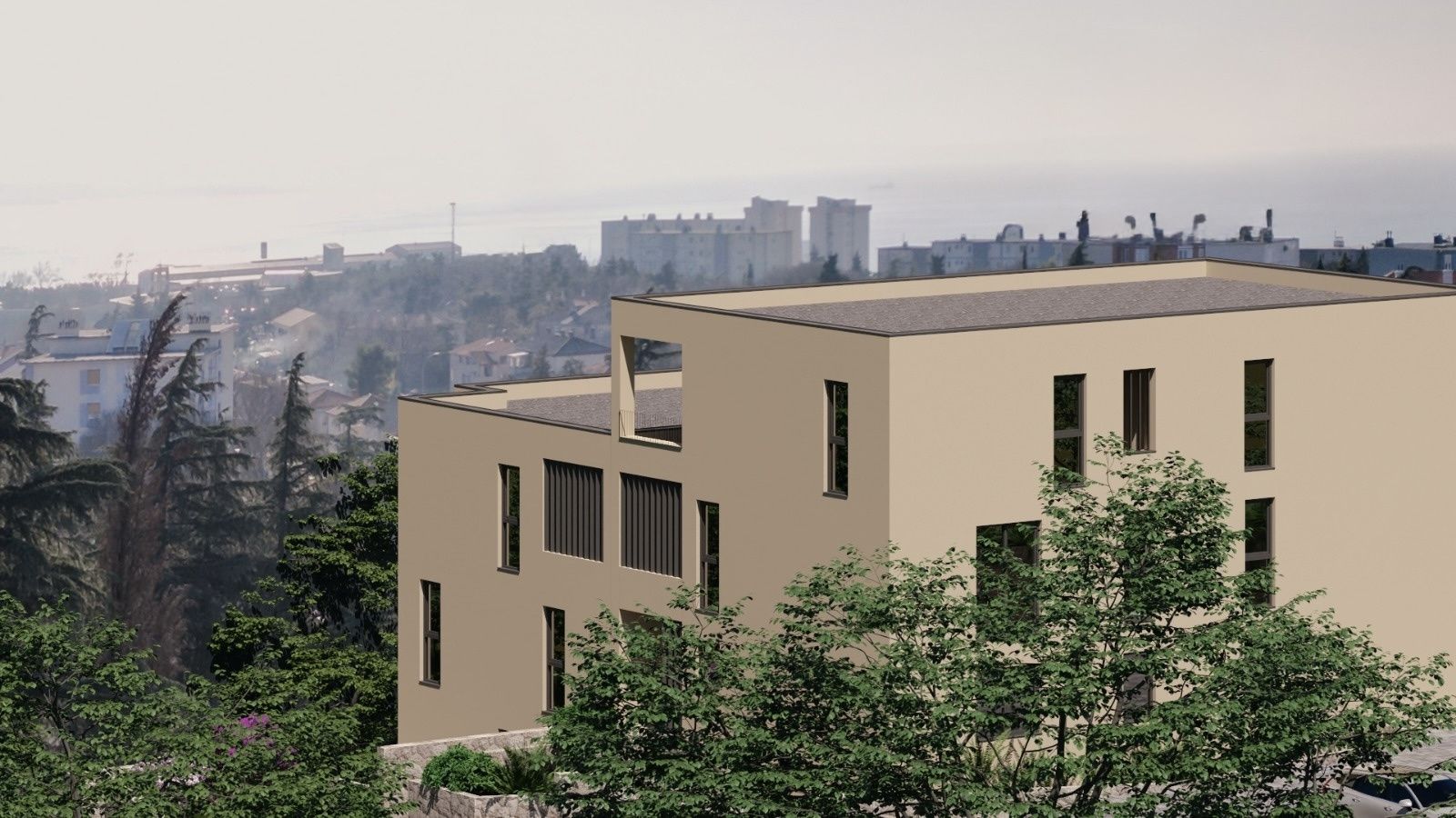 RIJEKA, KRYM - Útulný byt 3+kk + koupelna, zahrada 100m2, výhled, dvě garáže a jedno venkovní parkovací místo Byt se nachází v přízemí menší novostavby, která je v podstatě dvoupatrová, každá se čtyřmi byty - celkem osm bytů. Útulný dům se nachází v klidné ulici, ve vyhledávané lokalitě v blízkosti veškeré občanské vybavenosti. Čistá plocha bytu je 150,59 m². Skládá se z prostorného obývacího pokoje (42,46 m²), tří ložnic, dvou koupelen, chodby, vstupního prostoru, šatny a úložného prostoru. Z obývacího pokoje je vstup na krytou lodžii a upravený dvůr o rozloze 100 m². K bytu náleží dvě garážová parkovací místa, jedno venkovní parkovací místo a úložný prostor.