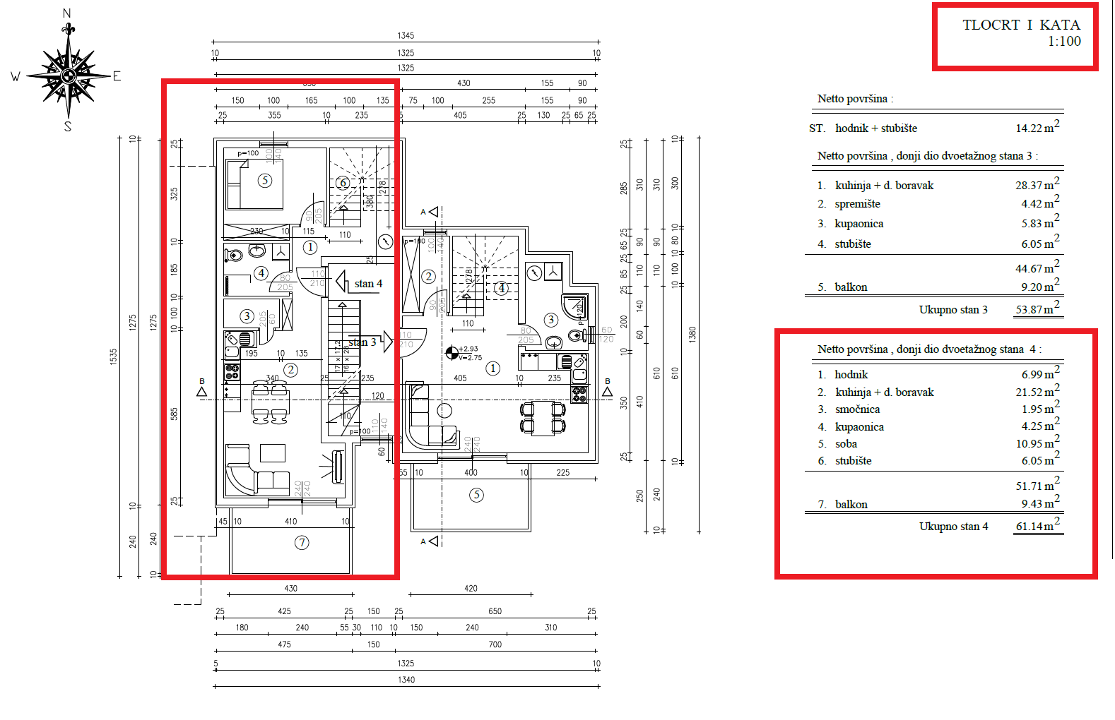 RIJEKA, PEHLIN, PODMURVICE - mezonetový byt 106,97 m2 v novostavbě s výhledem na moře, DB+3S. - BYT 4D BYT 4D, mezonetový, 1. PATRO + 2. PATRO, 106,97 m2: 1. PATRO: - obývací pokoj + kuchyň - chodba - schodiště - spíž - ložnice - koupelna - balkon 2. PATRO: - 2 ložnice - koupelna - chodba - balkon POPIS BYTŮ: Byty vyzařují luxus, jsou vybaveny nejkvalitnějšími materiály a zařízením a velké prosklené plochy zajišťují dostatek přirozeného světla a nabízejí krásný výhled na moře a ostrovy. - velké prosklené plochy s výhledem na moře a ostrovy - vysoce kvalitní hliníkové truhlářské výrobky - rolety s elektromotory - sítě proti hmyzu - třívrstvé parketové podlahy větších rozměrů - podlahové vytápění - tepelná čerpadla - kvalitní dlažba - vysoce kvalitní sanitární keramika a koupelnové vybavení - vytápění a chlazení tepelnými čerpadly s vnitřními fan coilovými jednotkami - betonová konstrukce - 10 cm tepelná izolace vnějších stěn - příprava pro nabíjení elektromobilů na parkovišti budovy PANORAMA Krásný výhled na moře, ostrovy a celý Kvarner BEZPEČNOST: Ochrana proti zemětřesení a požáru, oplocený dvůr a kontrola přístupu k budovám. ENERGETICKÁ ÚČINNOST: Na budovách jsou instalovány hliníkové truhlářské výrobky a 10 cm silná tepelně izolovaná fasáda. Vytápění a chlazení je zajištěno tepelnými čerpadly. Instalací vysoce kvalitních materiálů a zařízení je zajištěna nízká spotřeba energie a dosaženo energetického standardu A. LOKALITA: Budova se nachází v klidné lokalitě v Hosti na konci slepé ulice, nově postavená exkluzivně pro potřeby naší osady. Nachází se pár minut jízdy autem nad stadionem Rujevica a velkým supermarketem, 10 minut od centra Rijeky a 15 minut od Opatije. Vynikající infrastruktura v okruhu 150m až 750m: - sjezd/vjezd na obchvat, autobusové nádraží, pošta, banka, sportovní centrum, klinika, lékárna, restaurace, škola, školka, univerzita, nákupní centrum, čerpací stanice... JEDINEČNÁ NEMOVITOST STOJÍCÍ ZA POZORNOST VE SKVĚLÉ LOKALITE!!! Pro veškeré další informace kontaktujte realitní kanceláře. Vážení potenciální kupující, nájemníci a pronajímatelé, prohlídka nemovitosti, která vás zajímá a o kterou máte zájem, je možná pouze a výhradně s podpisem Smlouvy o realitním zprostředkování, a to z důvodu ochrany vlastníka nemovitosti před návštěvami neregistrovaných osob, a v souladu se zákonem o ochraně osobních údajů a zákonem o realitním zprostředkování. Při prohlídce každé nemovitosti je potenciální kupující/nájemce/nájemce povinen vyplnit a podepsat Smlouvu o realitním zprostředkování, která uvádí následující: - základní informace o potenciálním kupujícím/nájemci/nájemci - základní informace o realitní kanceláři - výše provize realitní kanceláře Provize realitní kanceláře pro kupujícího činí 3 % (+25 % DPH) z celkové sjednané kupní ceny. Provize realitní kanceláře pro nájemce činí jedno měsíční nájemné (+25 % DPH).
