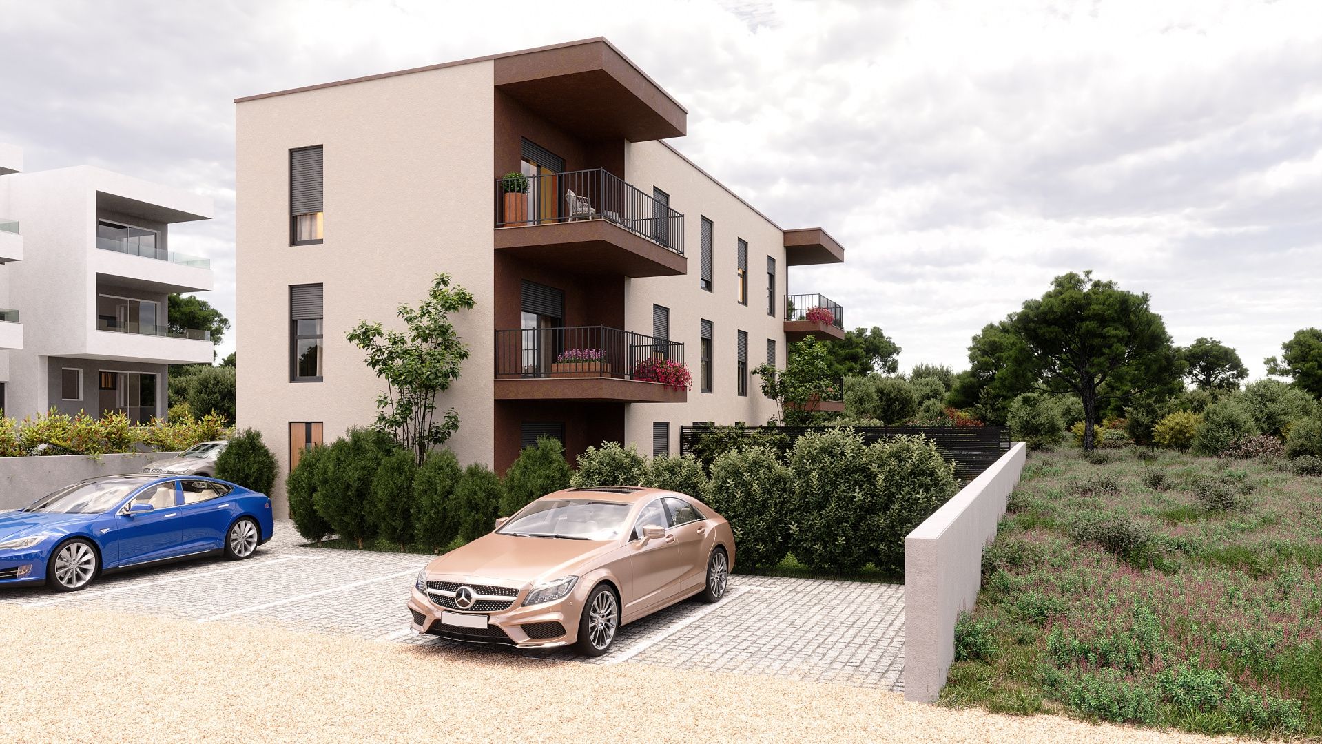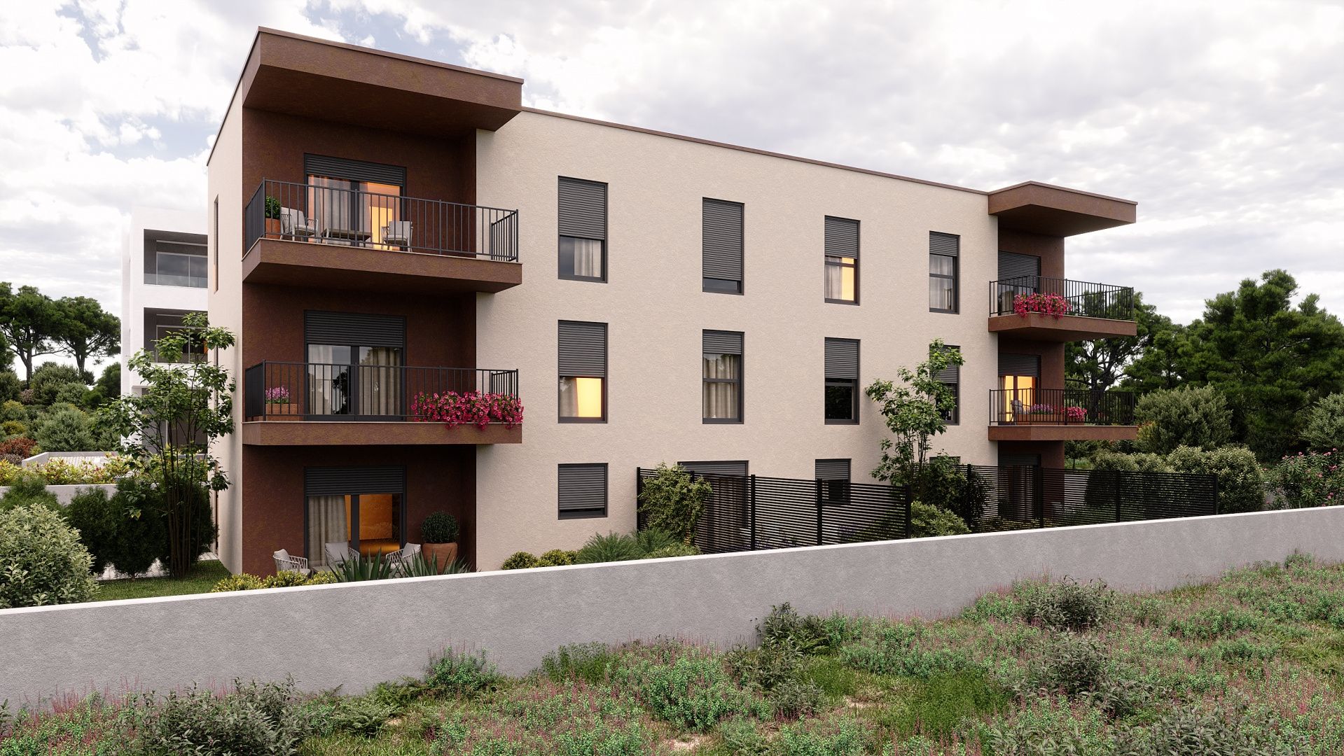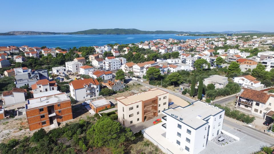 ŠIBENIK, BRODARICA - Dvoupokojový apartmán ve 2. patře s výhledem na moře a ostrov Krapanj S6 Na prodej je elegantní dvoupokojový apartmán s označením S6, který se nachází ve druhém patře moderní novostavby v klidné části Brodarice. S celkovou rozlohou 79,37 m² nabízí tento apartmán harmonickou kombinaci funkčnosti, pohodlí a kvality, čímž vytváří ideální místo pro pohodový život u moře, ale také bezpečnou investici. Obytná plocha 69,73 m² byla pečlivě navržena tak, aby každý metr čtvereční měl svůj účel. Vstupní hala o rozloze 7,93 m² nabízí dostatek prostoru pro vestavěné skříně a úhledný úložný prostor a dále vede do koupelny (5,37 m²), dvou pohodlných ložnic (12,01 m² a 10,89 m²) a centrálního obývacího prostoru. Srdcem bytu je vzdušný otevřený prostor kuchyně, jídelny a obývacího pokoje o rozloze 33,76 m², naplněný přirozeným světlem a teplem, ideální pro vytváření každodenních chvil pohodlí a relaxace. Z obývacího pokoje je vstup na krytou terasu o rozloze 10 m², ze které se otevírá podmanivý výhled na město Šibenik a ostrov Krapanj – scenérie, která přináší zvláštní atmosféru a pocit středomořského klidu v kteroukoli denní dobu. Dvě venkovní parkovací místa dodávají této nemovitosti také dodatečnou hodnotu, která zajišťují praktičnost a bezstarostnost v každodenním životě. Přitažlivost bytu dodává otevřený výhled na moře, ostrov Krapanj – nejníže položený ostrov na světě, a panorama města Šibenik, které je vzdálené jen pár minut jízdy autem. K bytu náleží dvě parkovací místa. Při stavbě byly použity nejkvalitnější materiály a moderní vybavení: PVC truhlářství s trojsklem, klimatizace ve všech místnostech a podlahové vytápění v koupelně s důrazem na energetickou účinnost a dlouhodobý komfort bydlení. Budoucím majitelům je nabízena flexibilita koupě – byt lze převzít v aktuálním stavu nebo s dohodou o kompletním vybavení a vybavení nábytkem dle vlastního výběru. Stavba je financována z vlastních prostředků investora, což umožňuje bezpečnou koupi prostřednictvím bytového úvěru, a dokončení prací je plánováno do konce roku. Tato nemovitost představuje na trhu vzácnou příležitost – ideální pro luxusní dovolenou u moře, příjemný rodinný život nebo jako špičkovou investici s vynikajícím turistickým potenciálem.