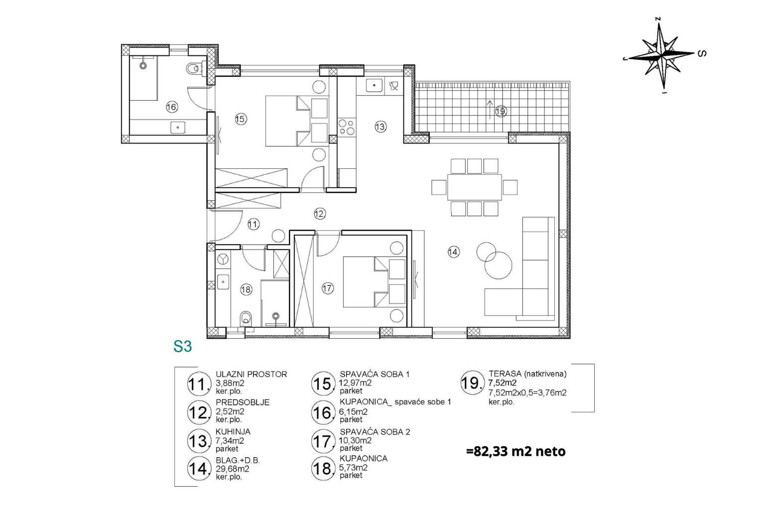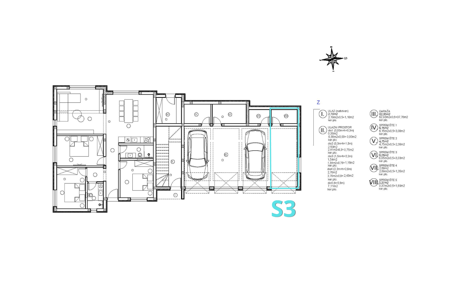 ŠIBENIK, VODICE – 121 m² soukromá zahrada, garáž, 500 m od moře Pokud hledáte byt, který se v létě promění v dům – tento má 121 m² soukromou zahradu, která se stane vaším hlavním obytným prostorem, a nachází se v jedné z nejvyhledávanějších lokalit ve Vodicích. Byt S3 se nachází v 1. patře malého bytového domu s celkem 5 byty, má 78,57 m² obytné plochy (105,69 m² výpočtové plochy) a oboustrannou orientaci východ-západ. Po vstupu do bytu se vstupuje do chodby, ze které se dostanete do ložnic na obou stranách (z nichž hlavní ložnice má vlastní koupelnu) a do další koupelny. V pokračování bytu se dostáváme do obytné části, kde se nachází obývací pokoj s kuchyní a jídelnou, na který navazuje krytá terasa. Z terasy vede venkovní schodiště dolů na soukromý dvůr o rozloze 121 m², ve kterém jsou připraveny instalace pro letní kuchyň a sprchu a je zde také možnost vybudování bazénu. K bytu náleží garáž se skladem v přízemí budovy, která má také vlastní vjezd/výjezd na dvůr, takže komunikace mezi částmi bytu je nerušená. To, co odlišuje tuto nemovitost na trhu, je soukromý oplocený dvůr o rozloze 121 m², který může v teplejších měsících sloužit jako obytná plocha pro venkovní bydlení a v létě se stane vaším hlavním prostorem pro trávení času: • letní kuchyně • společenská zóna • vířivka nebo odpočinková zóna • možnost vybudování bazénu Díky rozloze a infrastruktuře (elektřina, voda, kanalizace) umožňuje dvůr kompletní přizpůsobení – od odpočinkové zóny až po letní kuchyň nebo dokonce vybudování bazénu. DISPOZICE Skládá se z: • otevřeného obývacího pokoje s kuchyní a jídelním koutem • kryté terasy (7,5 m²) • 2 ložnic (hlavní ložnice s vlastní koupelnou) • 2 koupelen (jedna en-suite) • vstupní haly • soukromého dvora o rozloze 121 m² • garážového stání a úložného prostoru v přízemí budovy Vybavení a kvalita: Byt byl postaven s důrazem na dlouhodobý komfort a energetickou účinnost: • podlahové vytápění v obývacím prostoru a koupelnách - příjemný pobyt po celý rok • klimatizace ve všech místnostech - kompletní regulace teploty • PVC okna (Gealan) s trojsklem - klid, izolace a nižší náklady • elektrické rolety a moskytiéry - dodatečný komfort • posuvné stěny - více světla a lepší propojení s terasou • příprava na letní kuchyň a sprchu ve dvoře (elektřina, voda, kanalizace) • příprava na nabíjení elektromobilů v garáži LOKALITA Blízkost moře a novější části Vodice vytváří Rovnováha mezi pohodovým bydlením a dostupností veškeré občanské vybavenosti. Poloha umožňuje rychlé spojení do centra a zároveň zachovává klid mimo hlavní turistické toky. Kupující si tuto část města vybírají pro kombinaci soukromí, výhledů a dlouhodobé hodnoty nemovitosti. VZDÁLENOSTI: • moře: 500 m • centrum: cca 1 km (15 min chůze) • obchod: 900 m • škola / školka: 1,2 km Mikrolokace obklopená novější zástavbou navíc zajišťuje jednotný standard a uklizené prostředí. PRO KOHO JE NEMOVITOST IDEÁLNÍ Pro kupující, kteří chtějí pocit domova bez povinností jeho údržby – pro ty, kteří hledají více než jen byt, větší úroveň soukromí a vlastní venkovní prostor, ale také jako investici do turistického pronájmu, kde dvůr výrazně zvyšuje cenu noci. Apartmány s takovou soukromou zahradou jsou v této lokalitě, v novostavbě ve Vodicích, extrémně vzácné – kontaktujte nás pro více informací a prohlídku, dokud je ještě k dispozici na trhu. Vodice je jedním z nejoblíbenějších turistických cílů v oblasti Šibeniku, známým svými plážemi a rozvinutou turistickou infrastrukturou.