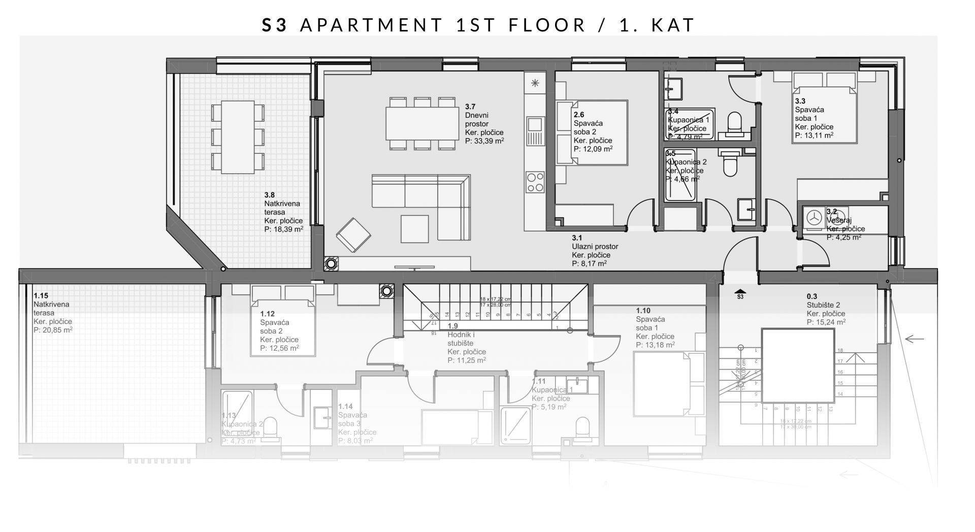 ŠIBENIK, VODICE – Apartmán v prvním patře s výhledem na moře a terasou pro nezapomenutelné chvíle V místě, kde vůně borovic a soli naplňují vzduch a moře je vždy v popředí, se tento krásný apartmán nachází v prvním patře moderní vily s terasou, která nabízí podmanivý výhled na jadranský horizont. Apartmán se nachází v klidné části Vodic, jen pár minut od centra a nejkrásnějších pláží. Jeho poloha v prvním patře umožňuje nejen větší soukromí, ale také luxus probouzení se každý den s úchvatným výhledem. Moře zde není jen kulisou - stává se součástí obytného prostoru. Prostorný obývací pokoj zalitý přirozeným světlem se otevírá na venkovní terasu a vytváří harmonický celek vnitřního a venkovního prostoru. Kuchyně a jídelna jsou funkčně propojeny s obývacím pokojem a ložnice se nacházejí v samostatné části apartmánu, což zaručuje ticho a pohodlí. Koupelny jsou moderně zařízené a každý kout apartmánu byl promyšleně navržen tak, aby uspokojil i ty nejnáročnější estetiky. Terasa je bezpochyby srdcem tohoto domu – místem pro ranní kávu, večerní západy slunce, posezení pod hvězdami nebo prostě jen pro odpočinek s léčivým výhledem. Tento byt je ideální pro ty, kteří chtějí pohodlí a klid v elegantním prostředí, ať už jako trvalý domov, sofistikované letní útočiště nebo cennou investici. Pro další informace nebo pro domluvení prohlídky mě prosím s důvěrou kontaktujte, rád vám pomohu splnit vaše sny!