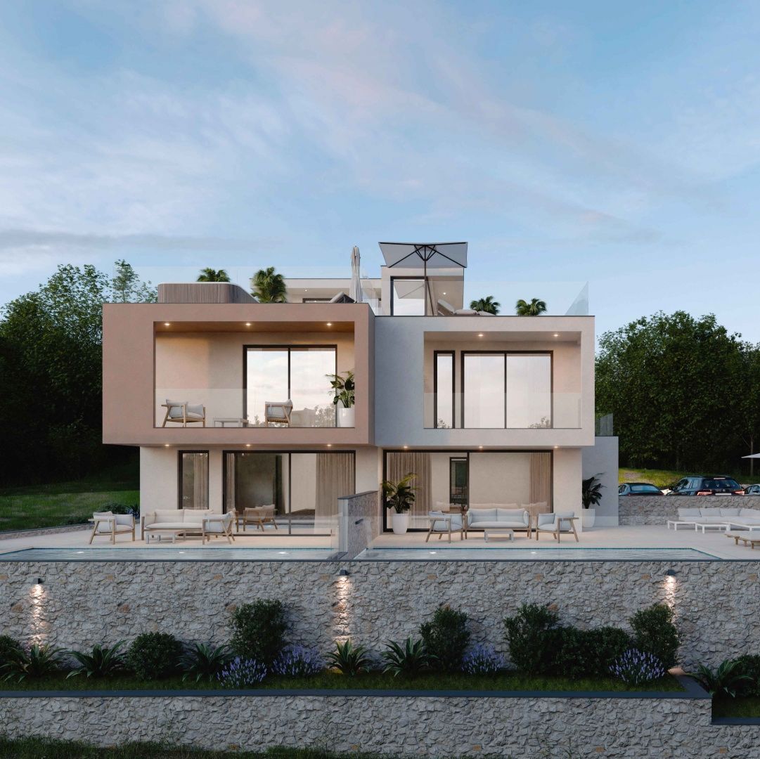 ŠIBENIK, VODICE - DVOJITÝ DOM s bazénem, střešní terasou a výhledem na moře Prodává se bytová jednotka S1 v luxusním DVOJITÉM DOMĚ ve Vodici. Tato nemovitost není určena pro kupující, kteří hledají kompromis mezi cenou a lokalitou. Je určena pro ty, pro které je luxus, výhled na moře a kvalita výstavby prioritou. Na luxusní a elitní lokalitě ve Vodici se staví moderní dvojdomek se dvěma samostatnými bytovými jednotkami, každá se samostatným vchodem, vlastním bazénem, zahradou a střešní terasou. Bytové jednotky se rozkládají v přízemí a prvním patře a na střešním patře se nachází střešní terasa určená pro vířivku a prostor pro odpočinek. Bytová jednotka S1 se skládá z přízemí, prvního patra a střešního patra, má 2 parkovací místa, vlastní zahradu a bazén a celkovou užitnou plochu 217,90 m2. V přízemí se nachází ložnice, koupelna a prostorný obývací pokoj s kuchyní a jídelnou v otevřeném prostoru. Velká prosklená stěna propojuje interiér s terasou, bazénem a zahradou, s neustálým vizuálním kontaktem s mořem. Vnitřní schodiště vede do 1. patra, kde se nacházejí tři ložnice, z nichž hlavní ložnice má vlastní koupelnu a přístup na soukromou terasu, a také další koupelna a další terasa. Kromě přízemí a prvního patra má byt také střešní terasu, navrženou jako soukromý prostor pro relaxaci, opalování a večerní posezení s panoramatickým výhledem na moře. Plánuje se vířivka a část terasy je zastřešená. Byt bude vybaven dle vysokých standardů moderní výstavby s použitím kvalitních materiálů a technických řešení zaměřených na dlouhodobou energetickou účinnost a komfort. Plánuje se moderní hliníkové truhlářské práce, podlahové vytápění pomocí tepelných čerpadel, klimatizace ve všech místnostech, kombinace parket v obytných prostorách a keramických podlah v koupelnách a technických prostorách. Tento standard vybavení zajišťuje vysokou úroveň komfortu bydlení, nízké náklady na údržbu a stabilní hodnotu nemovitosti v průběhu času. Pokud hledáte luxusní novostavbu na vzácném místě s trvalým výhledem na moře, tato nemovitost si zaslouží vaši pozornost. VODICE – Okouzlující město nočního života a pláží Vodice je turistická destinace ležící 10 kilometrů severně od Šibeniku. Vodice se pyšní skvělými hotely, plážemi a bohatou nabídkou nočního života. Nedaleko se nachází malý ostrov Prvić, město Split je vzdálené 69 km, Zadar 59 km a nejbližší letiště 49 km. Pro další informace nebo pro domluvení prohlídky nás neváhejte kontaktovat.