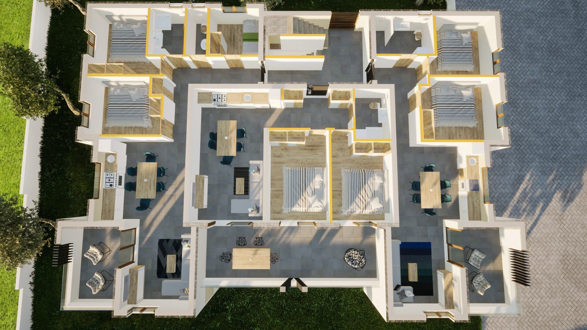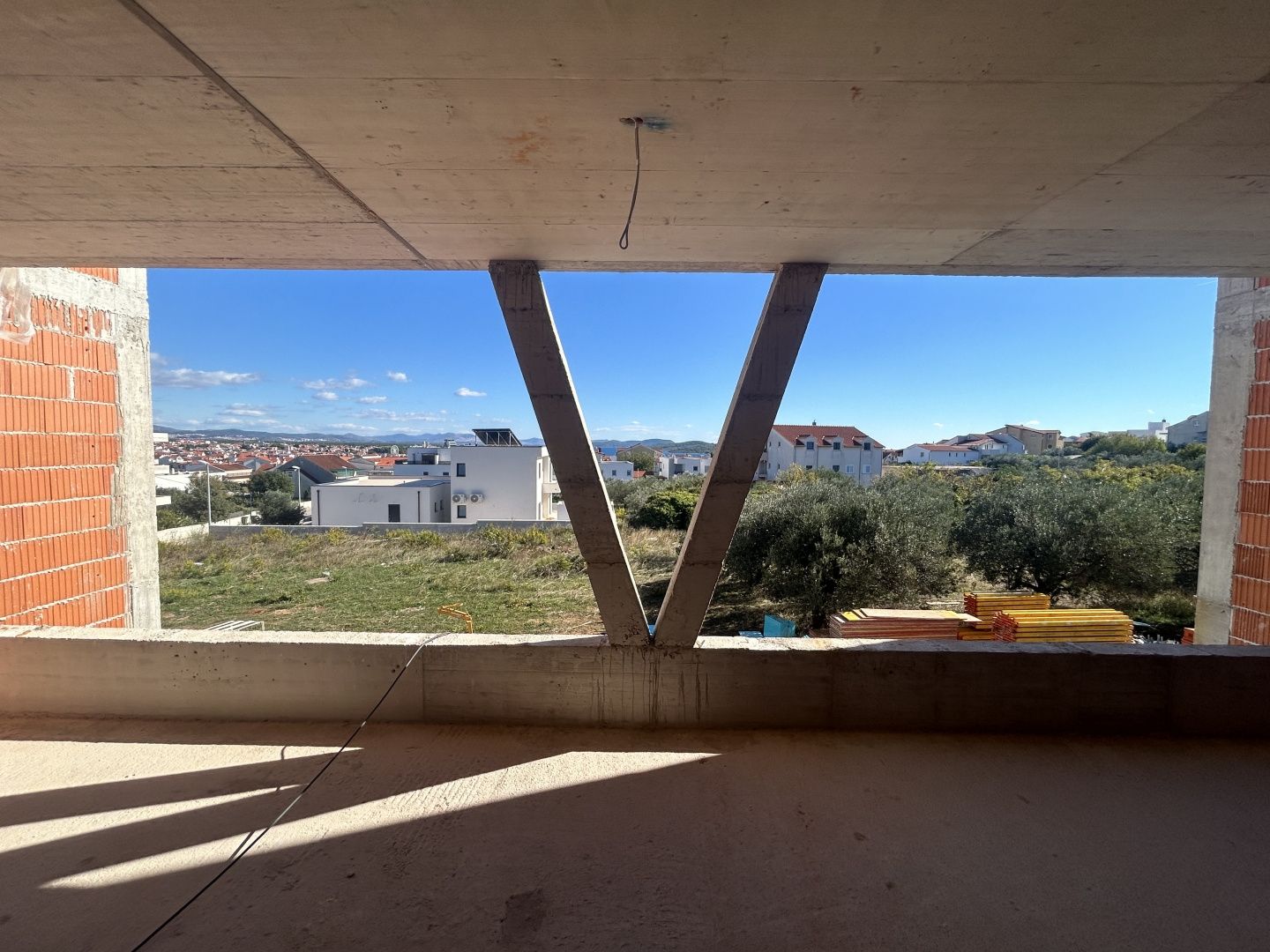 ŠIBENIK, VODICE – Dvoupokojový apartmán v novostavbě s velkou terasou a krásným výhledem na moře! Prodává se dvoupokojový apartmán v novostavbě s užitnou plochou 81,50 m2 a celkovou plochou 103,91 m2, který se nachází v 1. patře bytového domu s celkem 9 bytovými jednotkami. Apartmán se skládá ze dvou prostorných ložnic, koupelny a kuchyně s jídelnou a obývacím pokojem, ze které je přístup na velkou krytou terasu o rozloze 25 m2. K apartmánu náleží také jedno parkovací místo a úložný prostor v přízemí budovy. Tento apartmán je skutečnou perlou této budovy a zdobí ho velká terasa o rozloze 25 m2, ze které je krásný výhled na moře a šibenické souostroví, který vám vyrazí dech! Všechny pokoje v apartmánu a obývací pokoj jsou klimatizovány. Obývací pokoj a koupelna budou mít podlahové vytápění. Všechny otvory budou mít kvalitní truhlářské práce s elektrickými roletami. TV/SAT přípojky ve všech pokojích a obývacím pokoji a nabíječka do auta v úložném prostoru. Ve Vodicích, na krásném mikromístě, se nachází bytový dům s 9 bytovými jednotkami. Mírně vyvýšená poloha budovy poskytuje krásný výhled na moře z apartmánů v 1. a 2. patře a blízkost školy (300 m), nákupních center (500 m), centra Vodic (500 m) a pláže (900 m) a veškeré další vybavení jen pár minut odtud činí z této nemovitosti ideální místo pro váš budoucí domov nebo letní rezidenci. Pro více informací nebo pro domluvení prohlídky nás prosím kontaktujte! VODICE – Okouzlující město nočního života a pláží Vodice je malé turistické místo ležící 10 kilometrů severně od Šibeniku. Je oblíbené mezi mladými návštěvníky, kteří hledají živá místa. Vodice se pyšní skvělými hotely, plážemi a bohatou nabídkou nočního života. Název "Vodice" byl poprvé zmíněn v písemných pracích v roce 1402, ačkoli je známo, že zde lidé žili už v římských dobách. Místo bylo pojmenováno „Vodice“ kvůli hojnosti vody a studní. Nedaleko se nachází malý ostrov Prvić, město Split je vzdálené 69 km, Zadar 59 km a nejbližší letiště je vzdálené 49 km.
