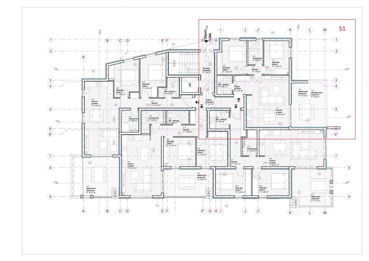 ŠIBENIK, VODICE – Dvoupokojový apartmán v přízemí novostavby s výhledem na moře Prodává se dvoupokojový apartmán S1, který se nachází v přízemí moderní bytové budovy s celkem 10 bytovými jednotkami, v atraktivní lokalitě ve Vodicích u Šibeniku. Apartmán má celkovou užitnou plochu 87,7 m² a je navržen s důrazem na funkčnost, pohodlí a kvalitu bydlení. Apartmán se skládá ze dvou ložnic, koupelny, samostatné toalety s prádelnou a prostorného obývacího pokoje, který kombinuje kuchyň, jídelnu a obývací pokoj, s přímým vstupem na terasu. Díky své jihovýchodní orientaci je apartmán bohatý na přirozené světlo a příjemné slunce po celý den a další výhodou je krásný výhled na moře. Apartmán má vlastní parkovací místo a úložný prostor v suterénu budovy o rozloze 12,33 m², což dále přispívá k praktičnosti a kvalitě bydlení. Apartmán bude luxusně vybaven nejkvalitnějšími povrchovými úpravami. V celém bytě je plánována kamenná podlaha, podlahové vytápění ve všech místnostech, klimatizace ve všech místnostech a také vysoce kvalitní hliníkové truhlářské práce. Budovu staví renomovaný dodavatel s osvědčenou pověstí a potenciální kupující mají možnost nahlédnout do dříve realizovaných projektů stejného investora. Další výhodou budovy je výtah, který zajišťuje vysokou úroveň komfortu a dlouhodobou hodnotu nemovitosti. Budova se nachází na krásném vyvýšeném místě ve Vodicích, orientovaná na jih, což zajišťuje dostatek denního světla a otevřený výhled na moře. Nachází se v klidné části města a zároveň v blízkosti veškerého potřebného vybavení pro každodenní život. Vzdálenost od moře a pláže je přibližně 650 metrů. Tato nemovitost představuje vynikající příležitost pro kvalitní rodinný život, luxusní letní dovolenou nebo bezpečnou investici na jednom z nejžádanějších míst na Šibenické riviéře. Pro další informace nebo pro domluvení prohlídky nás neváhejte kontaktovat.