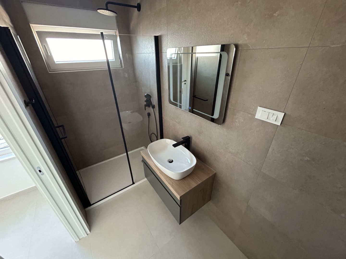 ŠIBENIK, VODICE – Luxusní apartmán v blízkosti pláže s výhledem na moře DUX zprostředkovává prodej luxusního apartmánu v novostavbě ve 2. patře malého bytového domu s celkem třemi apartmány. Mikrolokace nemovitosti se vyznačuje klidným prostředím a blízkostí pláží a promenád. Vzdálenost k první pláži je pouhých 250 metrů, zatímco centrum města je vzdálené 1000 m. Budova se nachází přímo nad promenádou spojující Tribunj a Vodice a nachází se v části Vodice, která nebyla přestavěna a kde si stále můžete vychutnat autentickou středomořskou krajinu polí, krasu, olivovníků a borovic, což činí tuto lokalitu mimořádně atraktivní a autentickou. Obytná plocha apartmánu je 69,92 m2, zatímco celková užitná plocha apartmánu je 89,42 m2. Apartmán se skládá z kuchyně, jídelny a obývacího pokoje, ze kterého je vstup na krásnou krytou terasu o rozloze 19,50 m2, která nabízí krásný výhled na moře a krajinu. Chodba s výklenkem pro vestavěnou skříň vede do tří prostorných ložnic, z nichž hlavní ložnice má vlastní koupelnu a další koupelny. Orientace bytu na jih zajišťuje dostatek přirozeného světla a byt je prosvětlený po celou denní dobu. K bytu patří také velká skladovací místnost v suterénu budovy o rozloze 12,66 m2 a dvě parkovací místa ve dvoře budovy s přípravou pro nabíječky elektromobilů. Vybavení tohoto bytu zahrnuje: klimatizaci ve všech místnostech, podlahové vytápění v koupelnách, chodbách a obývacím prostoru, vysoce kvalitní venkovní tesařské práce Gealan s moskytiérami a elektrickými roletami, bezpečnostní vstupní dveře s kódovým ovládáním, špičkovou italskou keramiku Marazzi, baterie a sprchy Hansgrohe, sprchové vaničky a kabiny renomované značky Nord, přípravu pro nabíječku elektromobilů s parkovacím místem ve dvoře budovy. Budova je kompletně dokončena a má kolaudační povolení, takže je možné i financování prostřednictvím úvěru! VODICE – Okouzlující město nočního života a pláží Vodice je turistická destinace ležící 10 kilometrů severně od Šibeniku. Je oblíbená u mladých návštěvníků, kteří hledají živé místo. Vodice se pyšní skvělými hotely, plážemi a bohatým nočním životem. Název „Vodice“ se poprvé zmiňuje v písemných pracích v roce 1402, ačkoli je známo, že zde lidé žili již v římských dobách. Místo bylo pojmenováno „Vodice“ kvůli hojnosti vody a studní. Nedaleko se nachází malý ostrov Prvić, město Split je vzdálené 69 km, Zadar 59 km a nejbližší letiště 49 km. Pro další informace nebo pro domluvení prohlídky nás neváhejte kontaktovat.
