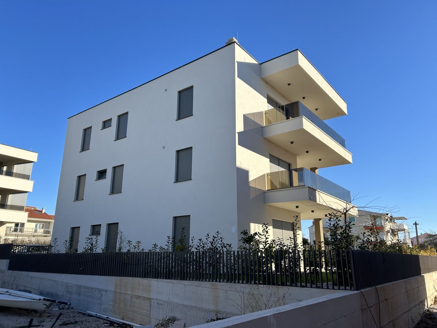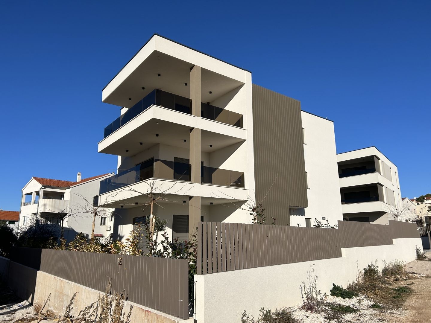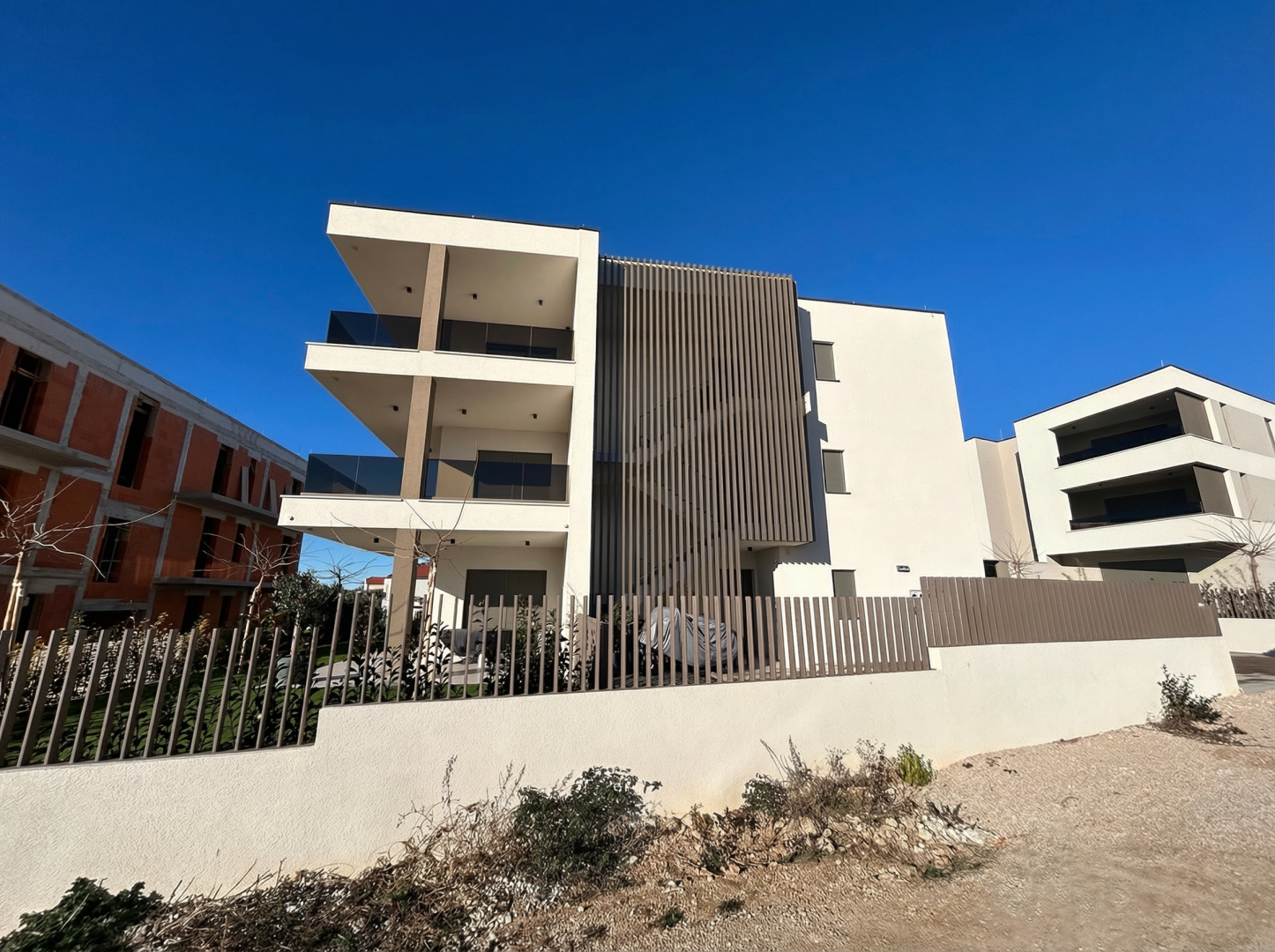 ŠIBENIK, VODICE – Luxusní apartmán na špičkovém místě, blízko pláže DUX zprostředkovává prodej luxusního apartmánu v novostavbě v 1. patře malého bytového domu s celkem třemi apartmány. Mikrolokace nemovitosti se vyznačuje klidným prostředím a blízkostí pláží a promenád. Vzdálenost k první pláži je pouhých 250 metrů, zatímco centrum města je vzdálené 1000 m. Budova se nachází přímo nad promenádou spojující Tribunj a Vodice a nachází se v části Vodice, která nebyla přestavěna a kde si stále můžete vychutnat autentickou středomořskou krajinu polí, krasu, olivovníků a borovic, což činí tuto lokalitu mimořádně atraktivní a autentickou. Obytná plocha apartmánu je 69,92 m2, zatímco celková užitná plocha apartmánu je 89,42 m2. Byt se skládá z kuchyně, jídelny a obývacího pokoje, ze kterého je vstup na krásnou krytou terasu o rozloze 19,50 m2, která nabízí krásný výhled na moře a krajinu. Chodba s výklenkem pro vestavěnou skříň vede do tří prostorných ložnic, z nichž hlavní ložnice má vlastní koupelnu, a dalších koupelen. Orientace bytu na jih zajišťuje dostatek přirozeného světla a byt je prosvětlený po celou denní dobu. K bytu patří také úložný prostor v suterénu budovy o rozloze 9,61 m2 a dvě parkovací místa ve dvoře budovy s přípravou pro nabíječky elektromobilů. Vybavení tohoto bytu zahrnuje: klimatizaci ve všech pokojích, podlahové vytápění v koupelnách, chodbách a obývacím prostoru, vysoce kvalitní venkovní truhlářské práce Gealan s moskytiérami a elektrickými roletami, bezpečnostní vstupní dveře s kódovým ovládáním, vysoce kvalitní italskou keramiku Marazzi, baterie a sprchy Hansgrohe, sprchové vaničky a kabiny renomované značky Nord, přípravu pro nabíječku elektromobilů s parkovacím místem ve dvoře budovy. Budova je kompletně dokončena a má povolení k užívání, takže je možné i financování prostřednictvím úvěru! VODICE – Okouzlující město nočního života a pláží Vodice je turistická destinace ležící 10 kilometrů severně od Šibeniku. Je oblíbená u mladých návštěvníků, kteří hledají živé místo. Vodice se pyšní skvělými hotely, plážemi a bohatým nočním životem. Název „Vodice“ se poprvé zmiňuje v písemných pracích v roce 1402, ačkoli je známo, že zde lidé žili již v římských dobách. Místo bylo pojmenováno „Vodice“ kvůli hojnosti vody a studní. Malý ostrov Prvić se nachází nedaleko, město Split je vzdálené 69 km, Zadar 59 km a nejbližší letiště 49 km. Pro další informace nebo pro domluvení prohlídky nás neváhejte kontaktovat.