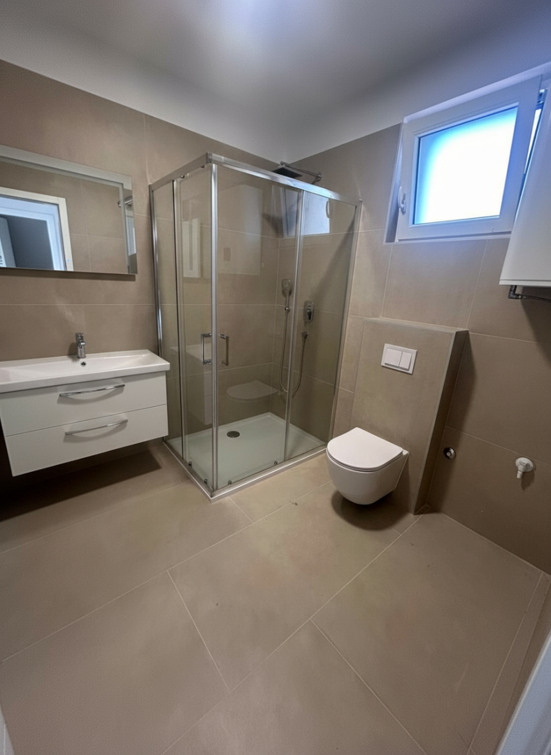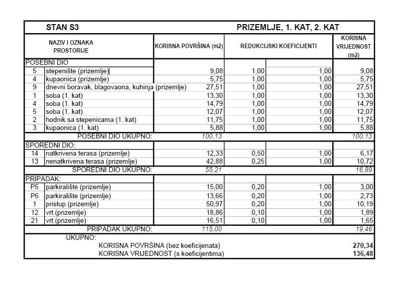 ŠIBENIK, VODICE – Luxusní mezonetový apartmán se zahradou, 200 m od pláže představuje moderní mezonetový apartmán S3, který se nachází v atraktivní lokalitě ve Vodicích, pouhých 200 metrů od moře a udržovaných pláží – nebo jen čtyři minuty chůze. Tato výjimečná nemovitost nabízí perfektní rovnováhu mezi luxusem, komfortem a funkčností, ideální pro rodinný život nebo jako investice pro turistické účely. Apartmán se rozkládá na dvou podlažích – přízemí a první patro, s celkovou čistou užitnou plochou 136,48 m², zatímco celková plocha s přilehlým vybavením je 270,34 m². V přízemí se nachází kuchyň s otevřeným konceptem, jídelna a obývací pokoj s přístupem na prostornou terasu, koupelna a vnitřní schodiště vedoucí do prvního patra. K apartmánu náleží také zahrada o rozloze 35,37 m² a zahrada o rozloze 115 m², ideální pro relaxaci a trávení času venku. V prvním patře se nacházejí tři prostorné ložnice a koupelna, které zajišťují dokonalé soukromí a pohodlí pro každého člena rodiny. Půdorys: Přízemí: Schodiště: 9,08 m² Koupelna: 5,75 m² Obývací pokoj, jídelna a kuchyň: 27,51 m² Krytá terasa: 12,33 m² Nekrytá terasa: 42,88 m² Zahrada: 35,37 m² Celková plocha zahrady: 115 m² 1. patro: Ložnice 1: 13,30 m² Ložnice 2: 14,79 m² Ložnice 3: 12,07 m² Chodba se schodištěm: 11,75 m² Koupelna: 5,88 m² K bytu náleží dvě parkovací místa a nabízí špičkové technické i estetické stavební standardy. Vybavení a vlastnosti: Vzdálenost od moře a pláže: 200 m / 4 minuty chůze Podlahové vytápění ve všech místnostech Klimatizace v každé místnosti PVC okna s trojsklem a elektrickými roletami Kvalitní tepelná izolace fasády (10 cm) Vysoce kvalitní materiály a povrchová úprava Sanitární zařízení a keramika od renomovaných výrobců Renomovaný a osvědčený dodavatel Tato moderní novostavba ve Vodicích představuje ideální příležitost pro každého, kdo hledá luxusní a funkční bydlení u moře a zároveň bezpečnou investici do kvalitní nemovitosti na pobřeží Jaderského moře. Pro veškeré potřebné informace a prohlídku této atraktivní nemovitosti nás prosím kontaktujte. Vodice jsou jedním z nejžádanějších míst k životu a dovolené na Šibenické riviéře - známé svými dlouhými promenádami u moře, udržovanými plážemi a bohatou turistickou nabídkou. Národní parky Krka a Kornati se nacházejí v blízkosti, zatímco letiště ve Splitu a Zadaru jsou vzdálena 50, respektive 85 kilometrů.