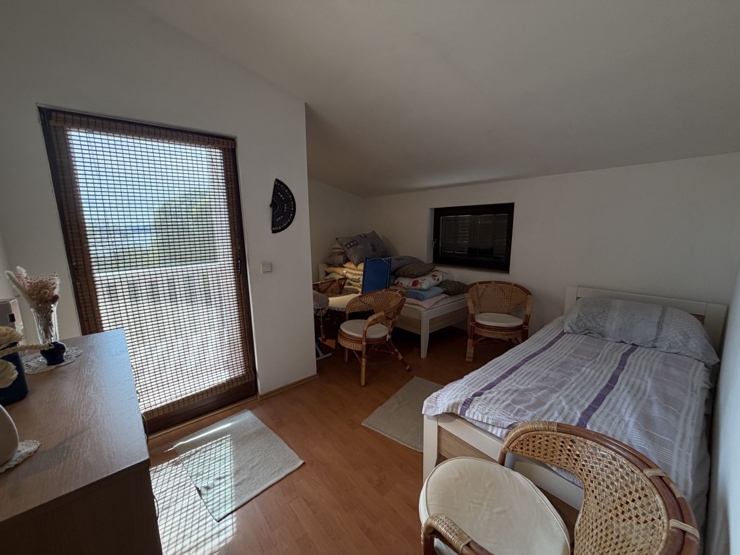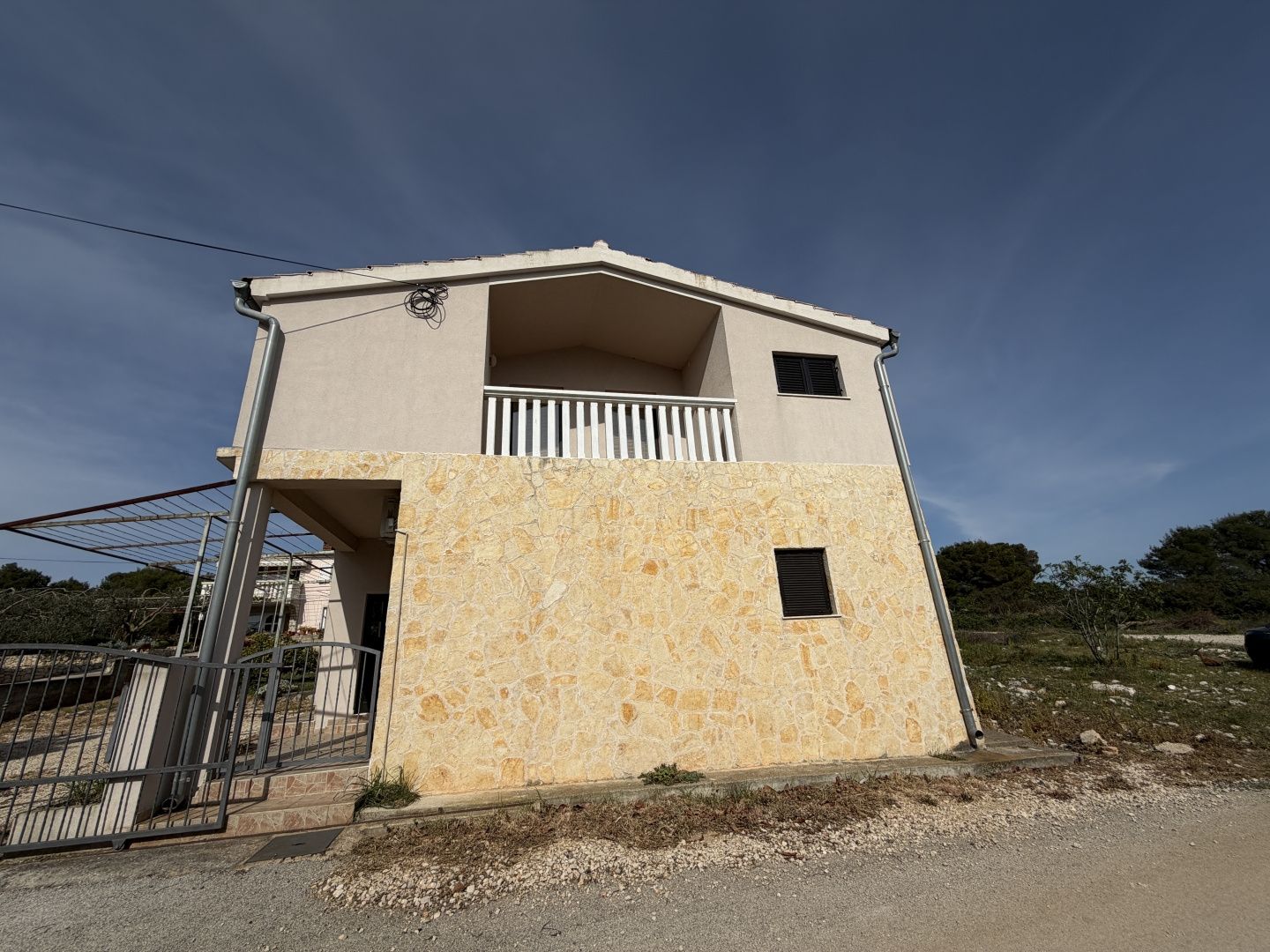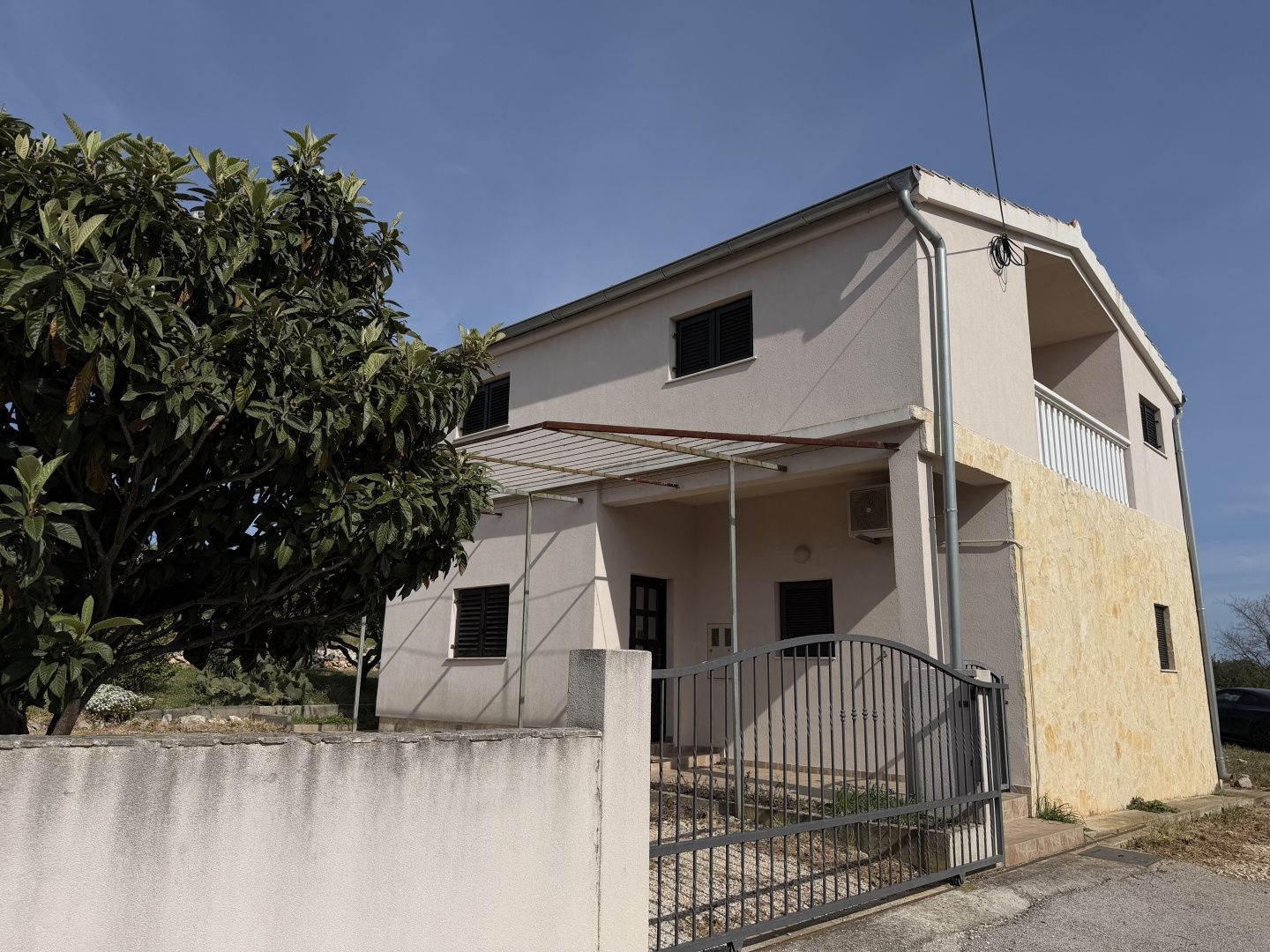 SV. FILIP I JAKOV – Dům s výhledem na moře, klidná lokalita! Nabízíme dům nacházející se v klidné a příjemné části města Sveti Filip i Jakov, ideální pro rodinný život nebo dovolenou. Nachází se na pozemku o rozloze 326 m² a je vzdálený od moře přibližně 850 metrů. Dům se rozkládá na dvou podlažích a je funkčně uspořádán: Přízemí se skládá ze vstupní haly, kuchyně propojené s jídelnou a obývacím pokojem, jedné ložnice a koupelny. První patro nabízí další komfort se dvěma ložnicemi, kuchyní, koupelnou a balkonem s krásným výhledem na moře. Nemovitost je napojena na městskou kanalizaci, což dále usnadňuje každodenní život. Na zahradě se nachází udržovaná zahrada s olivovníky, citrusovými plody a středomořskými bylinkami, prostor pro grilování a dvě zabezpečená parkovací místa. Z pozemku je otevřený výhled na Pašmanský kanál a Biograd na Moru, což dává této nemovitosti zvláštní hodnotu a činí z ní vynikající volbu jak pro turistický pronájem, tak pro celoroční bydlení. Sveti Filip i Jakov je známý svou vynikající polohou - pouhé 3 km od Biogradu na Moru a asi 25 km od Zadaru, což poskytuje perfektní rovnováhu mezi klidem a dostupností veškeré občanské vybavenosti.