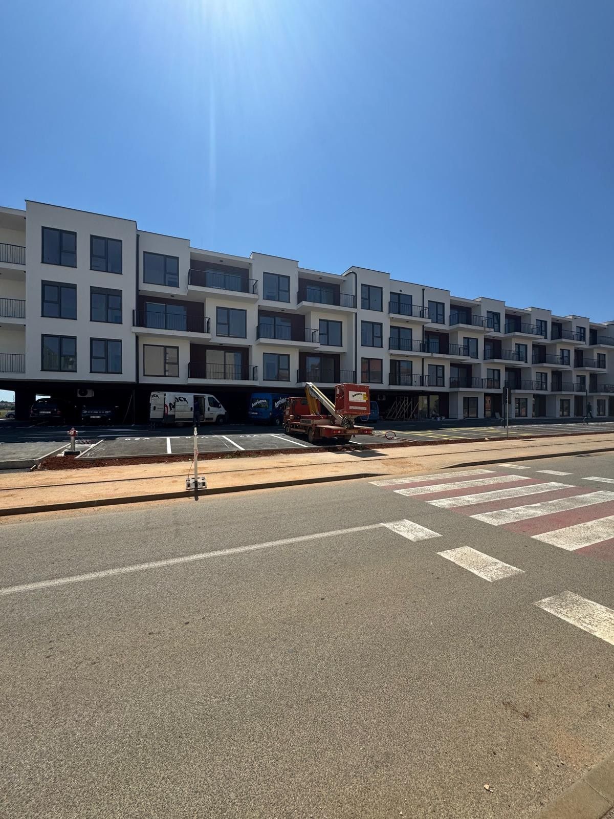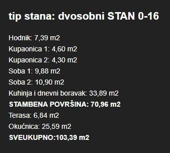 V samotném městě Umag, v rámci moderního rezidenčního projektu s 122 byty. Na prodej je byt v přízemí budovy, o celkové ploše 77,8 m², se zahradou, terasou, skladovacím prostorem a parkovacím místem. Byt označený 0-16 se nachází v přízemí a skládá se z: Vstupní prostory 2 koupelny 2 ložnice Otevřený obývací pokoj s kuchyní a jídelnou Východu na terasu (6,84 m²) a zahradu (25,59 m²) K bytu patří také: Sklad (3,78 m²) Garážové parkovací místo (12,50 m²) Technické specifikace: Železobetonová konstrukce Tepelně izolační fasáda (ETICS, 10 cm) Vysoce kvalitní PVC okna, zdvižně-posuvné stěny Elektrické rolety v pokojích Multisplit klimatizace ve všech místnostech Prvotřídní keramika a parkety Vlastní měřiče elektřiny a vody Videotelefon, internet a TV přípojka Budova obsahuje: 74 garážových míst, 82 venkovních a 25 krytých parkovacích míst Celkem 105 skladovacích prostor Výtah a schodiště ze 4 hlavních vchodů Suterénní podlaží s garážemi a komunikací Byty od 1. do 3. patra. Lokalita: 100–500 m od mateřské školy, školy, obchodů, sportovních zařízení a centra 700 m k moři, promenádě a městské pláži. Dokončení prací je plánováno na konec roku 2025.