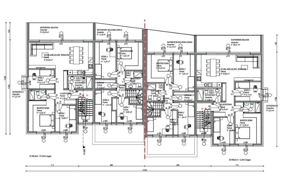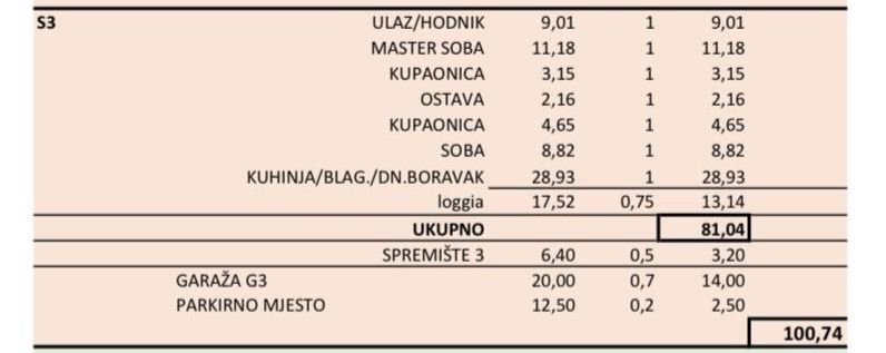 VELIKA GORICA – Moderní dům s lodžií, garáží a parkováním. Nastěhujte se bez starostí. Nabízíme prostorný a moderně navržený dvoupokojový byt, který se nachází ve druhém patře moderního bytového domu v klidné a vyhledávané městské části Velika Gorica. Budova je situována mimo hlavní silnice, což zajišťuje klid, soukromí a vysokou kvalitu bydlení. Byt je ideální volbou pro rodinu, mladý pár nebo jako bezpečná investice k dlouhodobému pronájmu. Budova je v současné době ve výstavbě a plánované dokončení a nastěhování je naplánováno na září 2026. Označení novostavby: Byt S3 – 2. patro, BUDOVA B DISPOZICE MÍSTNOSTÍ Vchod / chodba – 9,01 m² Kuchyň / jídelna / obývací pokoj – 28,93 m² Hlavní ložnice – 11,18 m² Ložnice – 8,82 m² Koupelna 1 – 3,15 m² Koupelna 2 – 4,65 m² Úložný prostor – 2,16 m² Lodžie – 17,52 m² Příslušenství bytu: Úložný prostor – 6,40 m² Garážové stání – 20,00 m² Venkovní parkovací stání – 12,50 m² Celková vypočítaná plocha bytu s příslušenstvím: 100,74 m² Čistá užitná plocha bytu (bez příslušenství): 81,04 m² Budova byla postavena z železobetonové konstrukce s vysokými standardy odolnými vůči zemětřesení na plovoucí betonové desce. Vyznačuje se špičkovou tepelnou izolací (15 cm minerální vlny a EPS), PVC truhlářstvím s trojvrstvým zasklením, elektrickými roletami, bezpečnostními dveřmi a videovrátným. Vytápění je zajištěno tepelnými čerpadly s podlahovým vytápěním, ve všech místnostech je instalována klimatizace. Budova má energetický certifikát A+. Nemovitost se nachází v klidné a městské ulici, ideální pro rodinný život. V bezprostřední blízkosti jsou k dispozici školky, školy, obchody, veřejná doprava a veškerá důležitá zařízení, přičemž lokalita poskytuje klid a soukromí. Díky rostoucí poptávce po kvalitních novostavbách ve Veliki Gorici představuje tato nemovitost také bezpečnou dlouhodobou investici s vynikajícím potenciálem pro pronájem nebo další růst hodnoty.