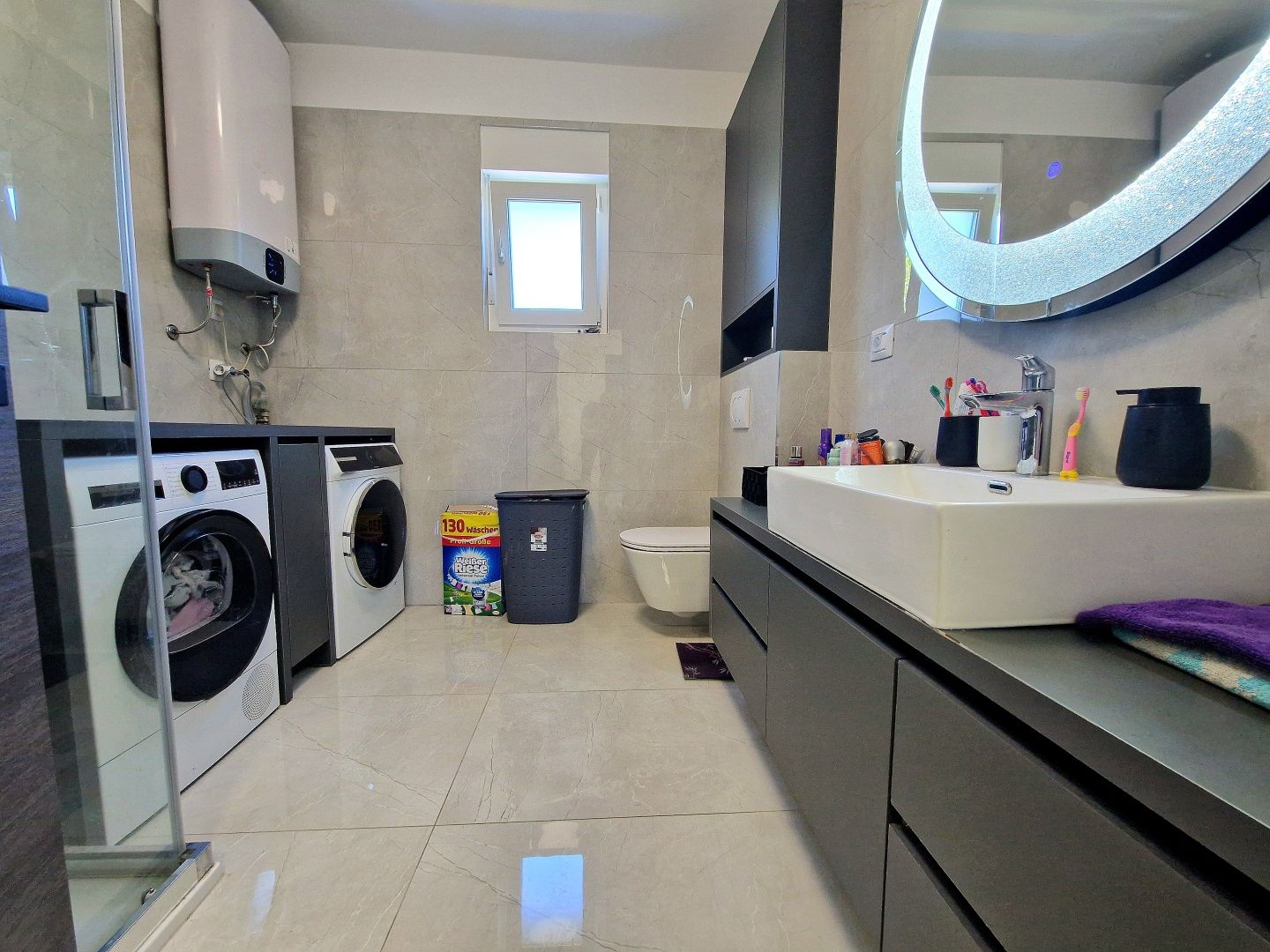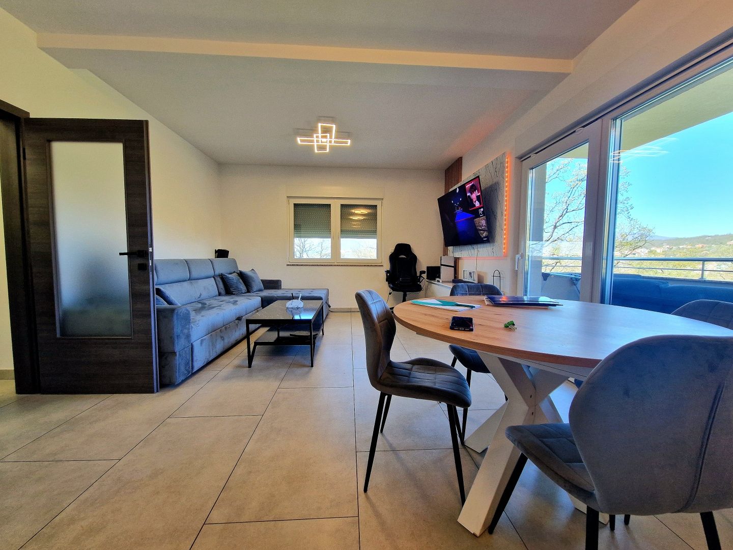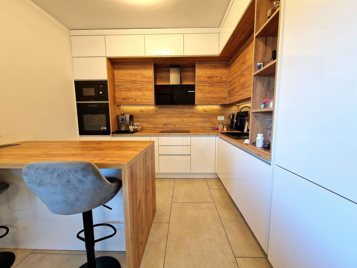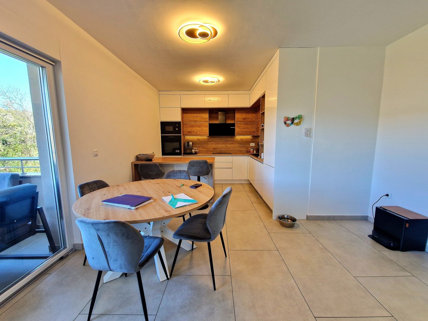 VIŠKOVO - 3+kk v novostavbě, 97m2 Prodává se moderní, mimořádně dobře zařízený a vybavený byt ve Viškově, který se nachází v 1. patře novostavby z roku 2024. Byt se skládá ze vstupní haly, tří ložnic - z nichž jedna má vlastní koupelnu - dalších samostatných koupelen, praktické úložné místnosti a prostorného obývacího pokoje s kuchyní a jídelnou v otevřeném konceptu. Z obývacího prostoru je vstup na příjemnou terasu, která poskytuje další prostor pro relaxaci. Nemovitost je vybavena podlahovým vytápěním pomocí tepelného čerpadla, vysoce kvalitními truhlářskými prvky s elektrickými roletami a moskytiérami, což zajišťuje vysokou úroveň komfortu a energetické účinnosti. Veškerý nábytek v bytě je vyroben na míru s důrazem na funkčnost a estetiku a byly použity kvalitní materiály a pečlivě vybrané detaily. Byt je zařízen s mimořádnou péčí a vyzařuje vysokou úroveň kvality a příjemné bydlení. K bytu náleží tři parkovací místa, což je velkou výhodou. Vynikající a kvalitní nemovitost, která stojí za zvážení, ideální pro rodinný život nebo jako investice.