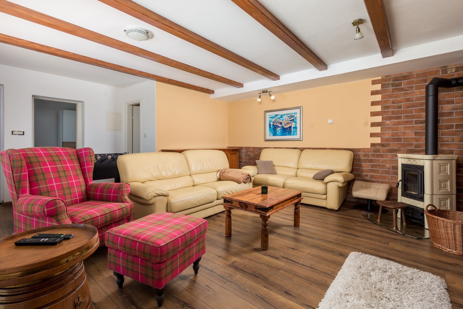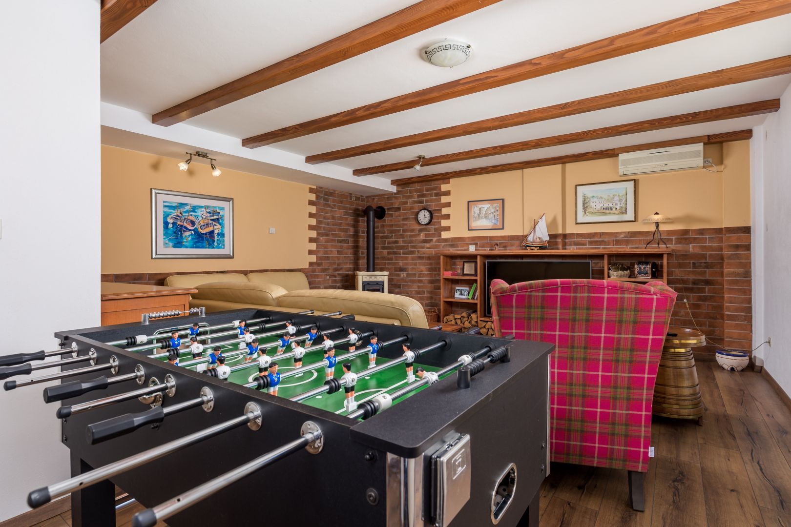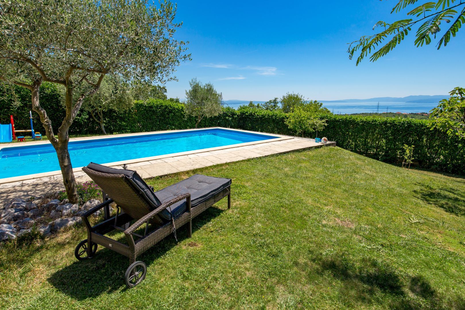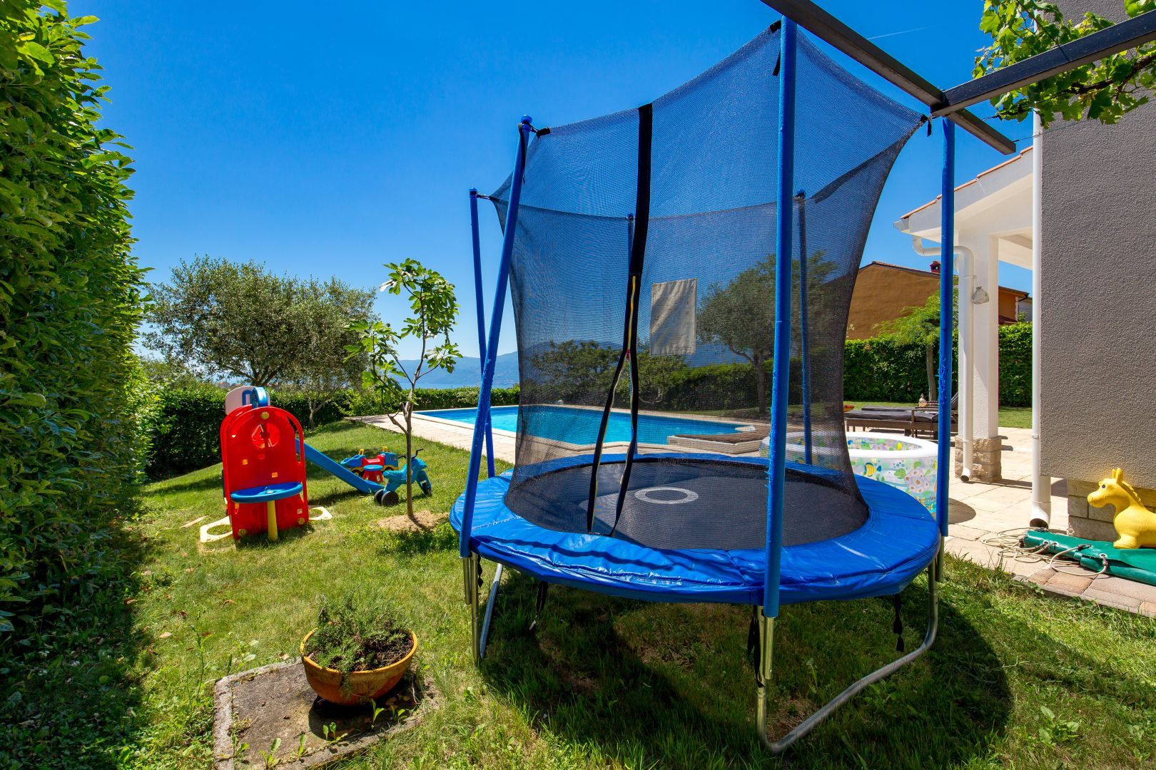 Viškovo, Marinići - rodinný dům se dvěma apartmány a bazénem Prodáme dům v Marinići, novější, kvalitnější stavby s upraveným dvorem a bazénem, asi 10 minut jízdy od centra města. Plocha pozemku je 989 m2, plocha domu 316 m2. Dům se skládá ze dvou bytů. Jeden apartmán je v přízemí 78 m2 a skládá se z jedné ložnice, obývacího pokoje, kuchyně a koupelny. Byt vede do dvora, kde je místo pro společenské vyžití, gril a bazén. Byt je kategorizován a může být použit pro turistické účely. Druhá strana je přístupná z horní strany, kde je parkoviště a garáž. Byt se rozkládá na dvou podlažích o celkové ploše 238 m2. V přízemí se nachází velký obývací pokoj, kuchyň a jídelna se vstupem na balkon, jedna ložnice, koupelna, prostor se saunou a mini tělocvičnou. Vnitřní schodiště vede do patra, kde jsou 4 ložnice, koupelna a šatna a z hlavní místnosti se vchází na balkon. V upravené zahradě je venkovní krb, dětské hřiště a zahradní domek. Vynikající nemovitost na skvělém místě s krásným výhledem na Kvarner a moře, s ohledem na dva samostatné apartmány vhodné pro různé účely.