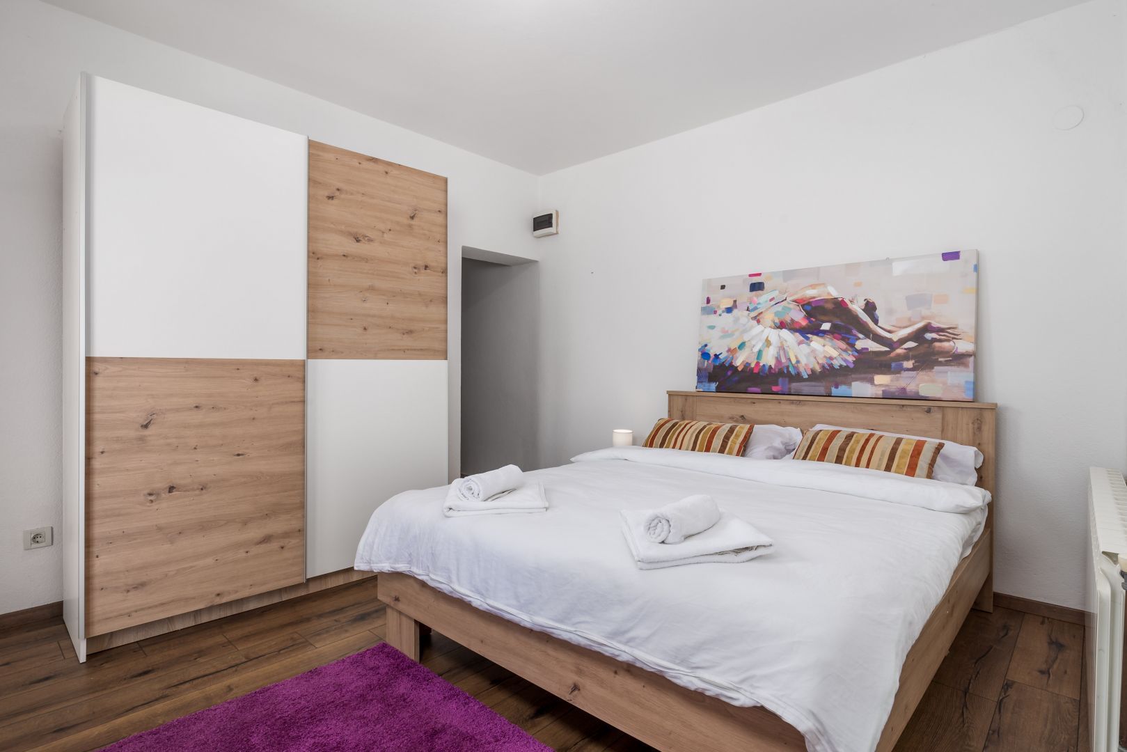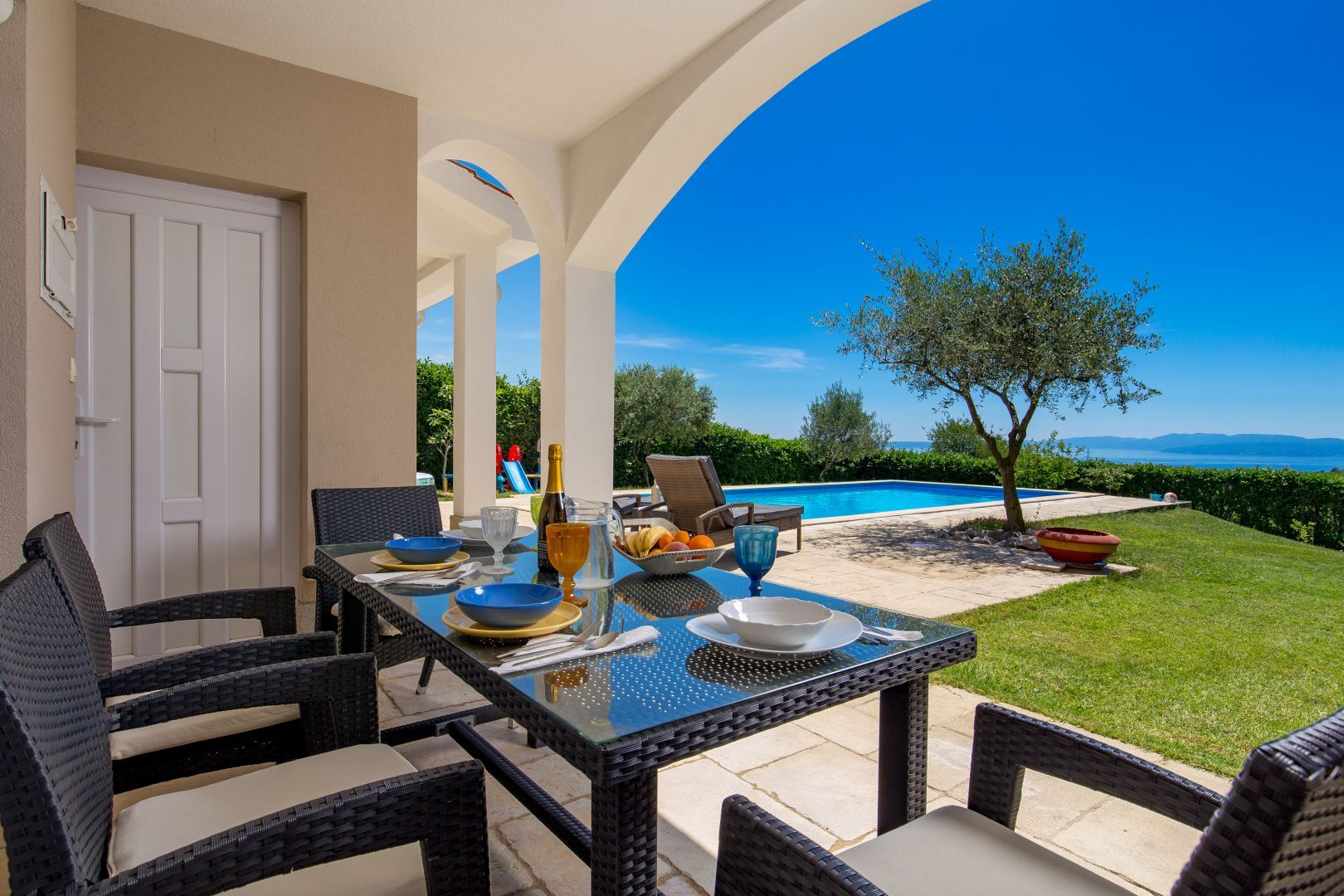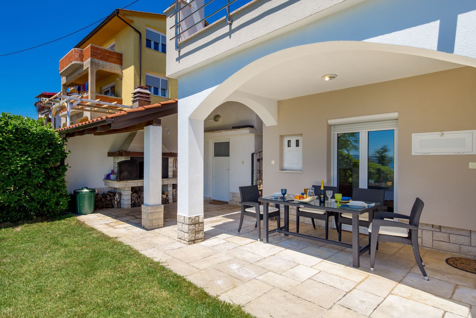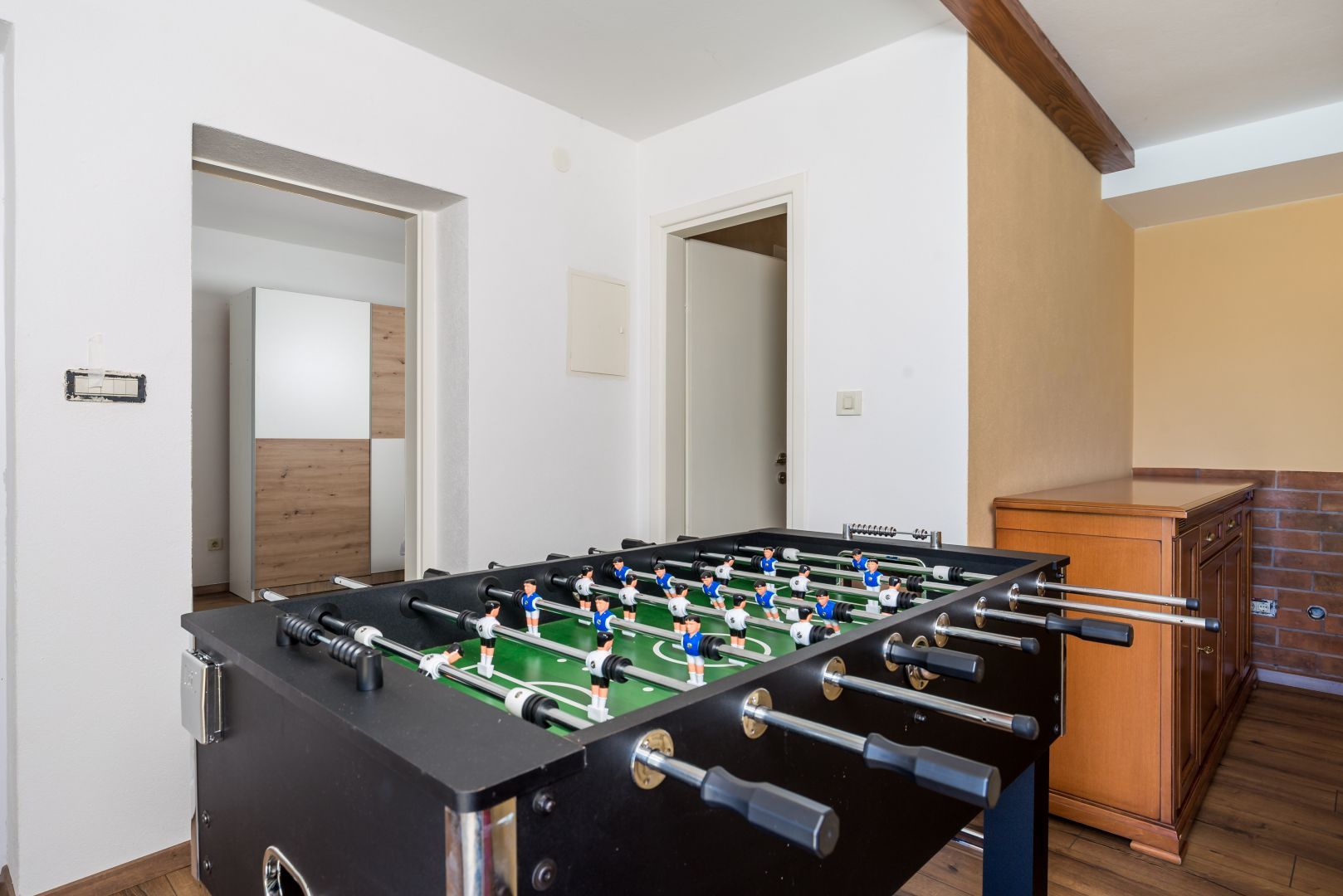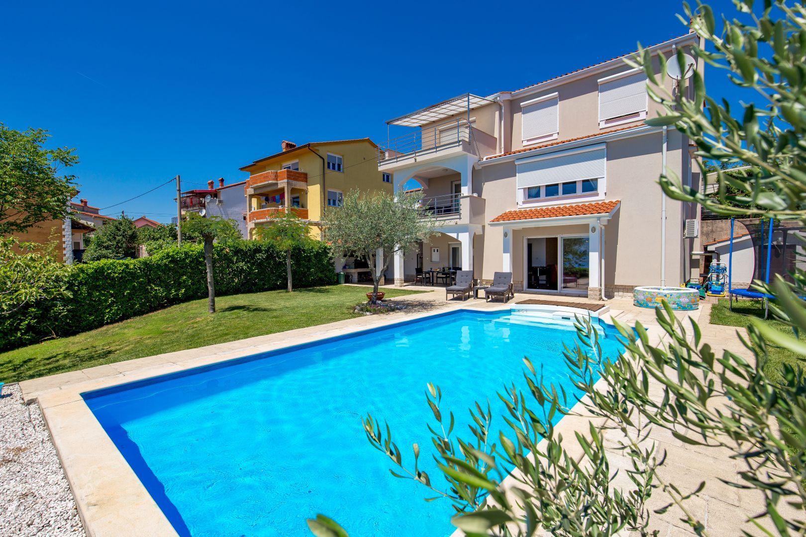 Viškovo, Marinići - rodinný dům se dvěma apartmány a bazénem Prodáme dům v Marinići, novější, kvalitnější stavby s upraveným dvorem a bazénem, asi 10 minut jízdy od centra města. Plocha pozemku je 989 m2, plocha domu 316 m2. Dům se skládá ze dvou bytů. Jeden apartmán je v přízemí 78 m2 a skládá se z jedné ložnice, obývacího pokoje, kuchyně a koupelny. Byt vede do dvora, kde je místo pro společenské vyžití, gril a bazén. Byt je kategorizován a může být použit pro turistické účely. Druhá strana je přístupná z horní strany, kde je parkoviště a garáž. Byt se rozkládá na dvou podlažích o celkové ploše 238 m2. V přízemí se nachází velký obývací pokoj, kuchyň a jídelna se vstupem na balkon, jedna ložnice, koupelna, prostor se saunou a mini tělocvičnou. Vnitřní schodiště vede do patra, kde jsou 4 ložnice, koupelna a šatna a z hlavní místnosti se vchází na balkon. V upravené zahradě je venkovní krb, dětské hřiště a zahradní domek. Vynikající nemovitost na skvělém místě s krásným výhledem na Kvarner a moře, s ohledem na dva samostatné apartmány vhodné pro různé účely.