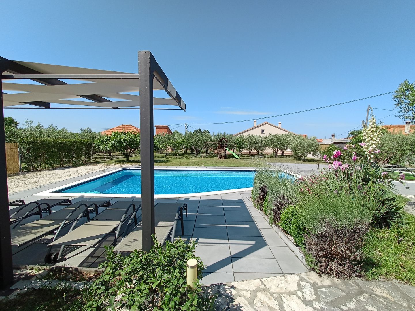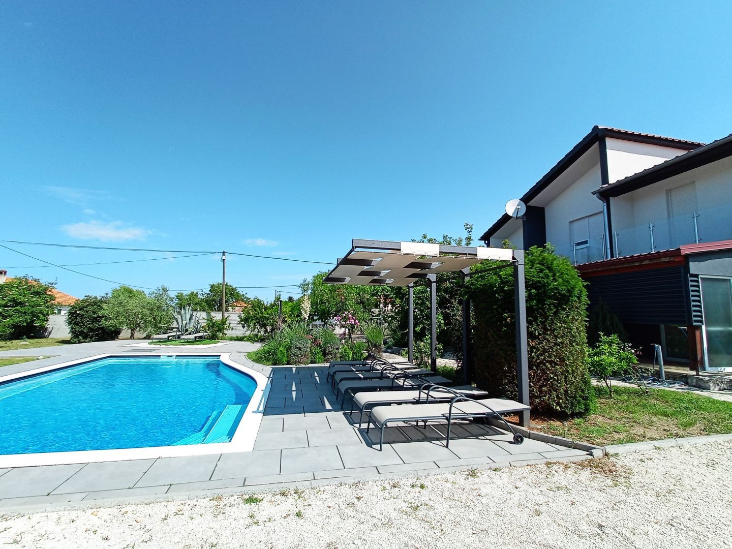 ZADAR, DEBELJAK - Krásná vila s bazénem Moderně zařízená vila s bazénem je na prodej v Debeljaku u Zadaru. Nemovitost s celkovou obytnou plochou 239,46 m2 je postavena na pozemku o rozloze 1497 m2. V přízemí s celkovou obytnou plochou 127,93 m2 se nachází jeden jednopokojový a jeden dvoupokojový apartmán se samostatnými vchody. Horní patro, které nabízí také výhled na moře, má celkovou plochu 110,89 m2, je v Roh Bau a vyžaduje investici. V prostorném nádvoří se nachází vyhřívaný bazén, zahrada a dětské hřiště. K dispozici je také soukromé parkování. Vila byla zrekonstruována v roce 2017, kdy byla zrekonstruována fasáda, a v roce 2022 byl kompletně zrekonstruován dvoupokojový apartmán v přízemí. Na podlahu byly použity keramické dlaždice a laminátové podlahy a truhlářské práce jsou z PVC. Vila se nachází na výhodném místě v srdci Dalmácie, ale zároveň daleko od městského hluku. Centrum Zadaru je od Debeljaku vzdáleno 7 km a nejbližší letiště Zemunik je 8 km. Nejbližší pláž se nachází v krásném pobřežním městě Sukošan, 4 km daleko, kde se nachází přístav. V oblasti se nachází také řada dalších malebných pobřežních měst, jako jsou Bibinje, Biograd na Moru a Pakoštane. V blízkosti se nachází také několik národních a přírodních parků, například Vranské jezero, největší přírodní jezero v Chorvatsku, které se vyznačuje bohatou flórou a faunou. Ve Vraně najdete také monumentální budovu Maškovićův han ze 17. století, známou jako nejzápadnější budova turecké architektury v Evropě.
