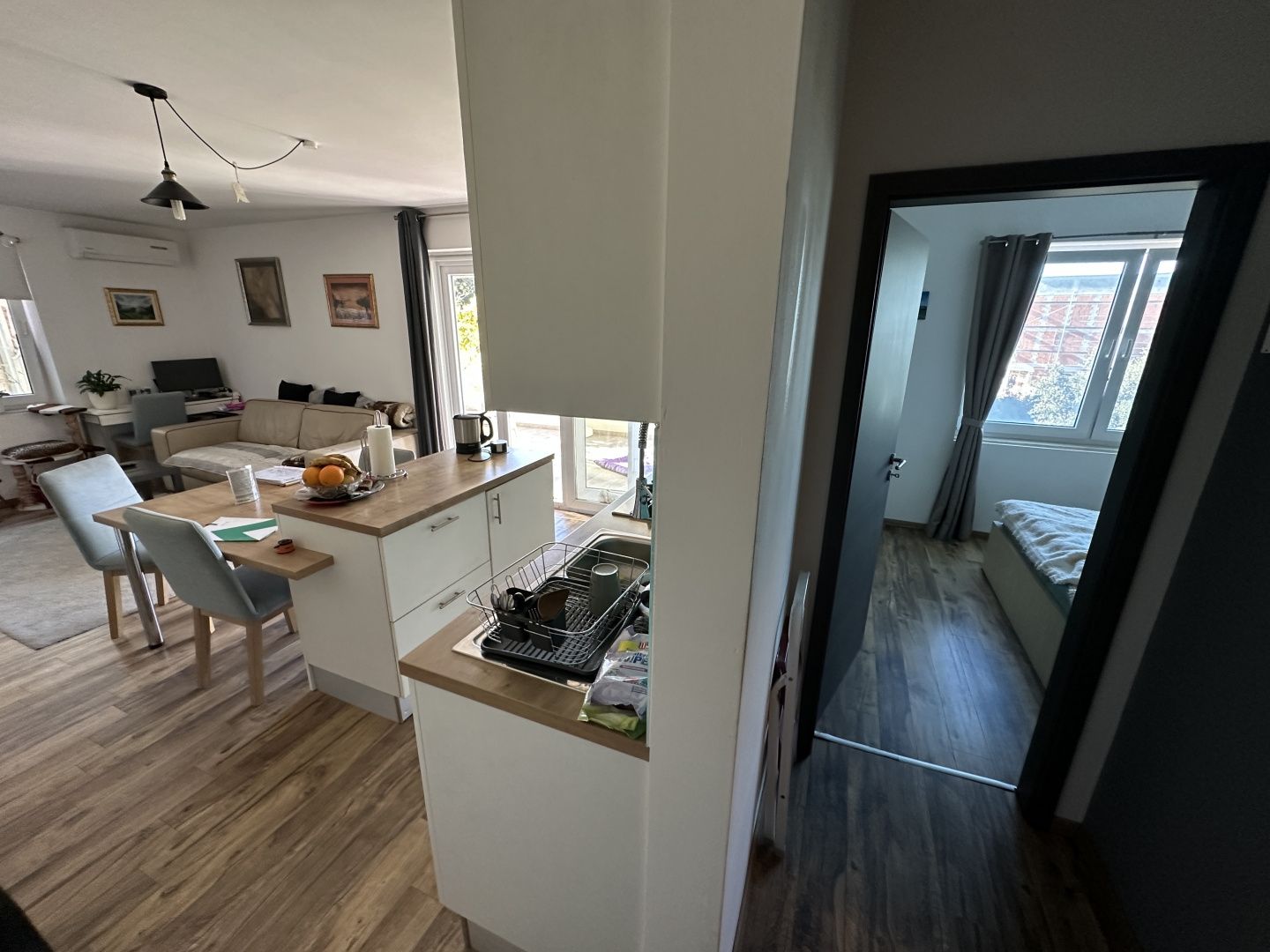 ZADAR, DIKLO – Atraktivní apartmán se zahradou a výhledem na moře! Atraktivní a pohodlný apartmán s jednou ložnicí je k prodeji v klidné a mimořádně žádané části Dikla, pouhých 250 metrů od moře. Nachází se v přízemí úhledného bytového domu. Apartmán se skládá ze vstupní haly, velkého obývacího pokoje s kuchyní a jídelnou, jedné ložnice, koupelny a kryté lodžie, která vede do krásné 90 m2 zahrady. Prostor je velmi světlý a vzdušný a z obývacího pokoje je také výhled na moře – v této oblasti skutečná rarita. Vytápění je kamny a apartmán je klimatizován. Apartmán je funkční, pohodlný a ihned k nastěhování, ideální pro celoroční bydlení nebo jako vynikající investice pro turistický pronájem. Diklo je známé jako jedno z nejklidnějších a nejkrásnějších osad v Zadaru. Vyznačuje se dobře udržovanými plážemi, čistým mořem, širokými promenádami a rozpoznatelnou středomořskou atmosférou. Nedaleko se nacházejí restaurace, obchody, sportovní zařízení a autobusové nádraží, zatímco centrum Zadaru je vzdálené jen pár minut jízdy autem. Tento apartmán představuje vynikající příležitost pro každého, kdo hledá kvalitní nemovitost v prestižní lokalitě se zahradou, výhledem na moře a blízkostí pláže.