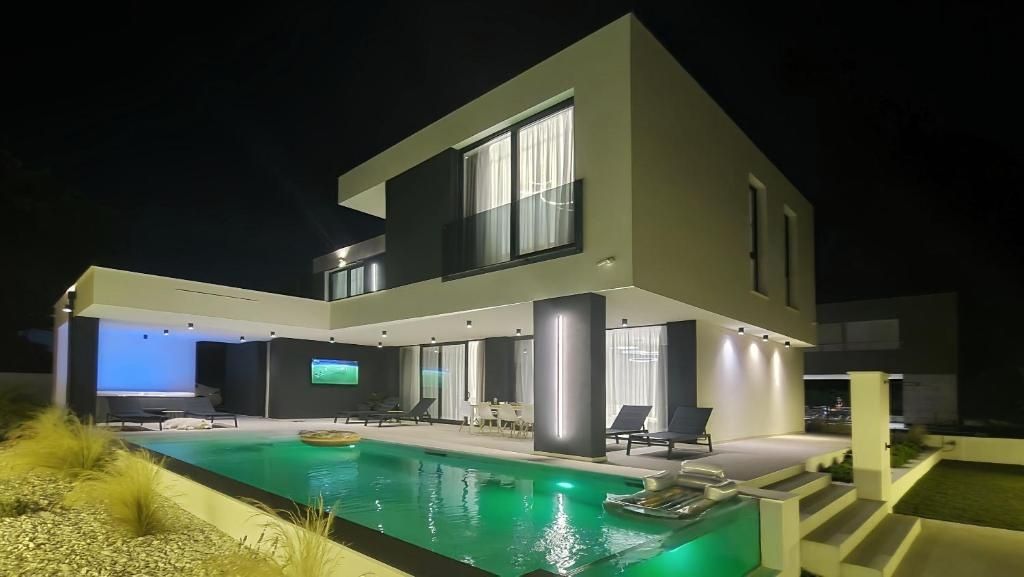 ZADAR, KOŽINO - Luxusní vila s výhledem na moře! Podlahové vytápění, tepelné čerpadlo, bazén... Moderní a luxusně zařízená vila je k prodeji v klidné části Kožina, ideální pro bydlení, dovolenou nebo investici. Vila o rozloze 240 m2 se vyznačuje špičkovou kvalitou konstrukce, pečlivě vybranými detaily a nerušeným výhledem na moře. Prodává se kompletně zařízená, připravená k nastěhování bez dalších investic. V přízemí se nachází prostorný obývací pokoj propojený s elegantní kuchyní a jídelnou, koupelna, úložný prostor, plně vybavená sauna a velká terasa s přístupem k bazénu a na terasu na opalování - ideální místo pro vychutnání klidu, soukromí a výhledu na moře. V prvním patře se nacházejí tři prostorné ložnice, každá s vlastní koupelnou a přístupem na velkou terasu s krásným panoramatickým výhledem. Hlavní ložnice má také vlastní šatnu. V přízemí je kvalitní keramická dlažba, zatímco v pokojích jsou třívrstvé parketové podlahy o délce dvou metrů. První patro a přízemí jsou propojeny elegantním železným schodištěm, které dále zdůrazňuje moderní design interiéru. Vila je vybavena podlahovým vytápěním s vestavěným tepelným čerpadlem a klimatizací v každé místnosti. K dispozici jsou tři parkovací místa. Na pláž se dostanete autem za pár minut nebo příjemnou patnáctiminutovou procházkou. Kožino je klidná, prestižní osada ležící jen pár kilometrů od Zadaru, jednoho z nejkrásnějších měst na Jadranu. Je známá svými luxusními vilami a udržovanými plážemi a není žádným tajemstvím, že Luka Modrić vlastní v Kožinu také nemovitosti. Zadar je vzdálen jen pár minut jízdy autem, což z této lokality dělá perfektní kombinaci soukromí a blízkosti městské vybavenosti. Pro veškeré další informace a prohlídku vily nás neváhejte kontaktovat - váš nový domov s výhledem na moře v Kožinu na vás čeká.