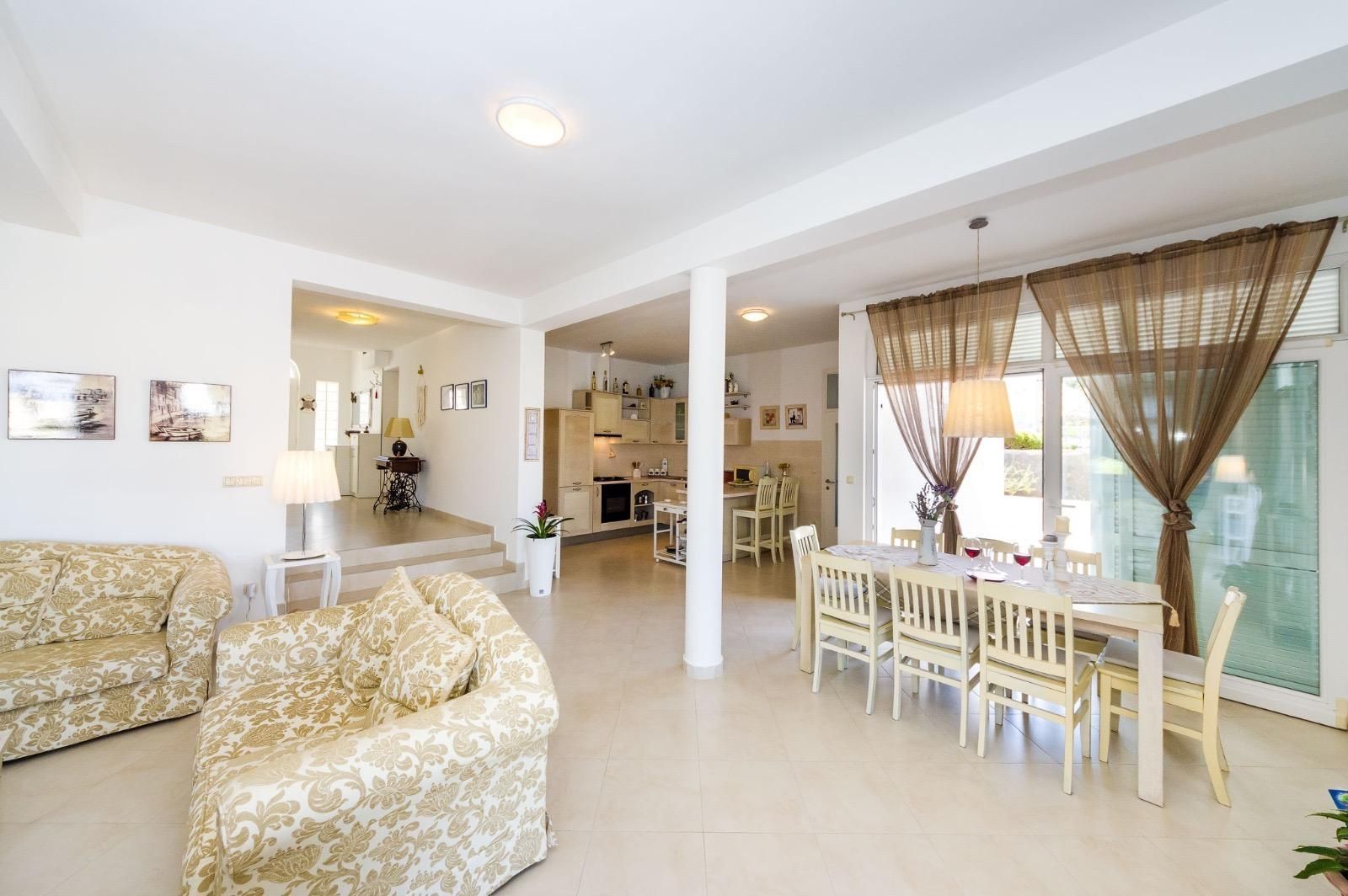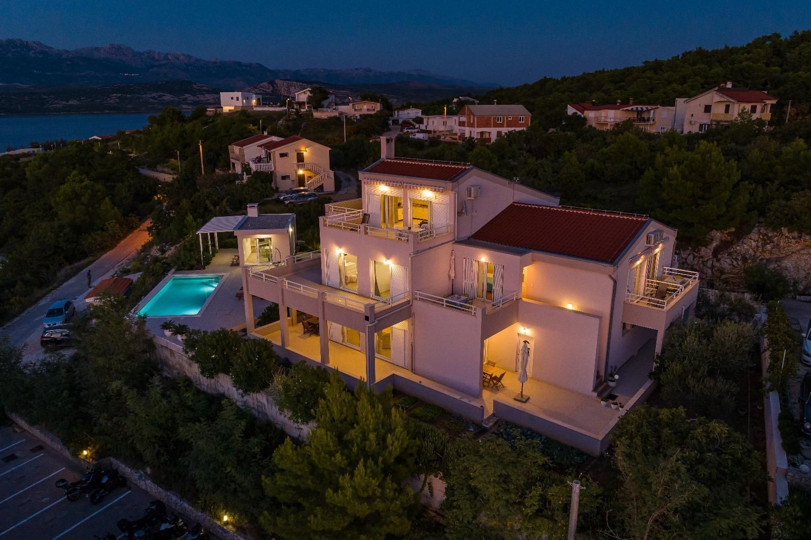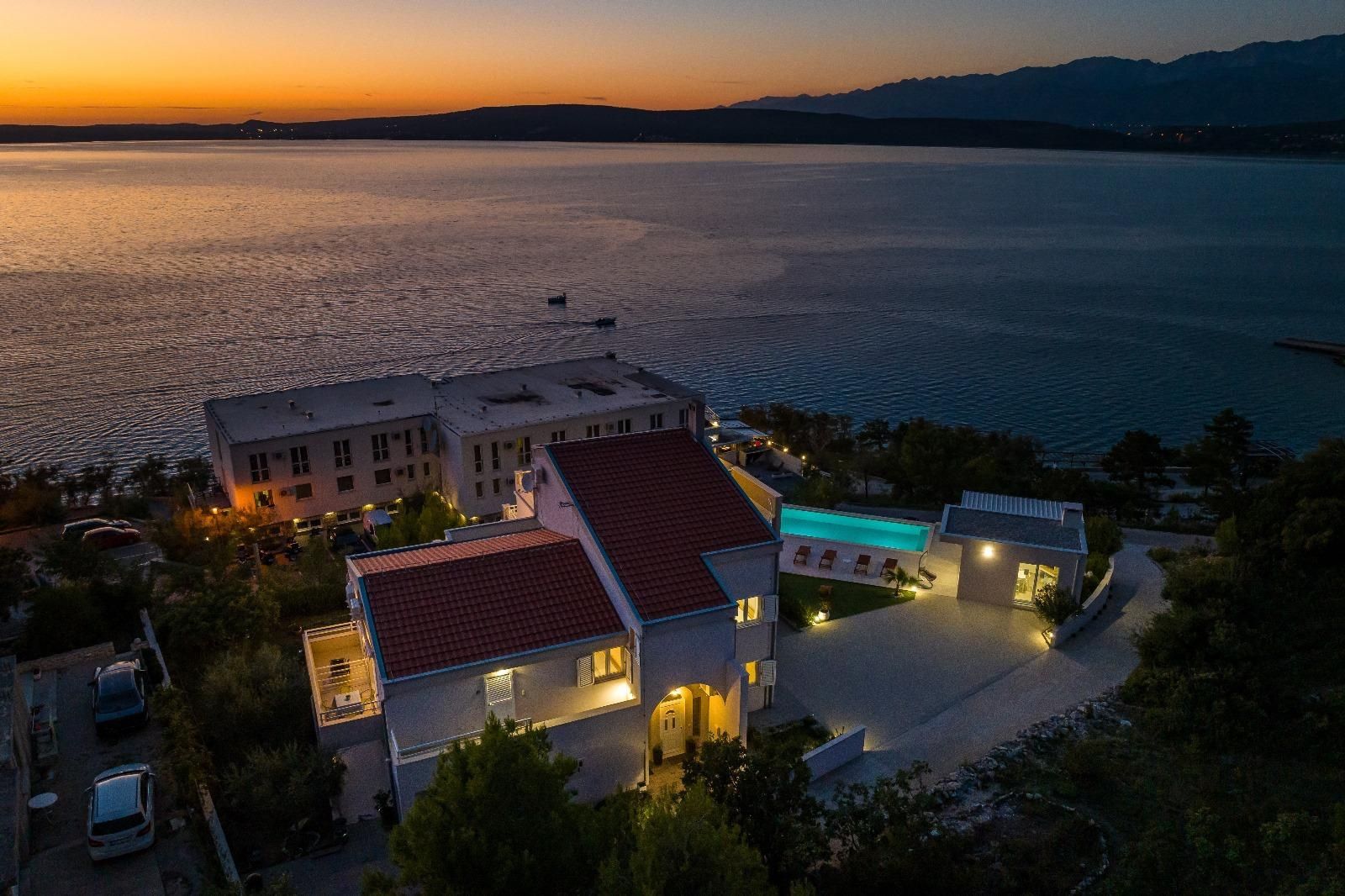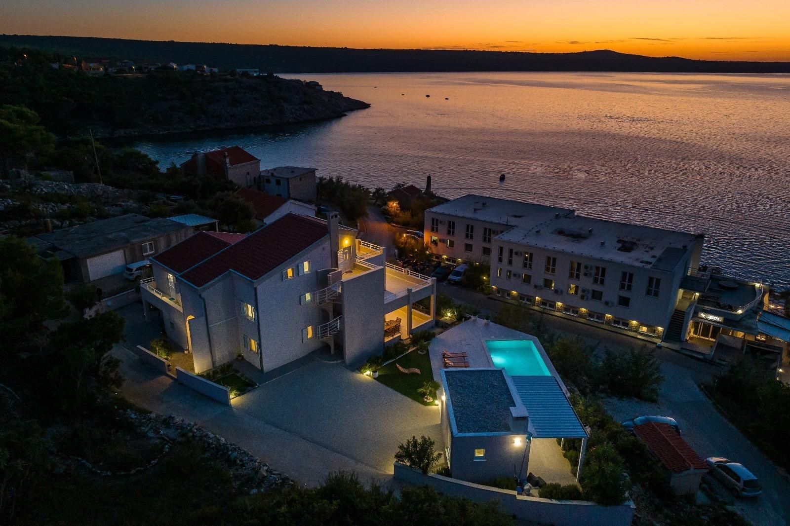 ZADAR, NOVIGRAD - Luxusní vila s panoramatickým výhledem na moře Na prodej je vysoce kvalitní a atraktivní vila nacházející se v jedné z nejkrásnějších částí Novigradu, pouhých 50 metrů od moře, pláže a promenády, s úchvatným výhledem na moře a ostrovy. S celkovou rozlohou 399 m² se vila nachází na prostorném pozemku o rozloze 1 080 m² a nabízí perfektní kombinaci luxusu, pohodlí a výjimečného investičního potenciálu. Vila je postavena na třech podlažích a dále rozdělena na několik bytových jednotek se samostatnými vchody, což umožňuje kombinaci soukromého života a turistického pronájmu. Dispozice podlaží: Přízemí (cca 110 m²): Prostorný a elegantně zařízený obývací pokoj s kuchyní a jídelnou, výstup na velkou terasu, ložnice se šatní skříní a luxusní koupelna s vířivkou a sprchovým koutem. 1. patro (cca 110 m²): Tři pohodlné ložnice, koupelna se sprchovým koutem, světlý obývací pokoj a terasa s krásným výhledem na moře. Plocha apartmánu (samostatné vchody): Apartmán 1 (33 m²): ložnice, obývací pokoj s kuchyní, koupelna a balkon Apartmán 2 (33 m²): ložnice, obývací pokoj, koupelna a dva balkony s výhledem na moře Apartmán 3 (46 m²): dvě ložnice, obývací pokoj s kuchyní, koupelna a balkon Vila nabízí prostornou garáž pro dvě auta (větší a menší), zatímco v suterénu se nachází moderní posilovna se sprchou, toaletou a luxusní saunou pro čtyři osoby, která poskytuje naprostý komfort a soukromý wellness zážitek. V upraveném nádvoří se nachází další vybavení - bazénový domek s grilem a venkovní kuchyní, ideální pro relaxaci, společenské aktivity a užívání si středomořského životního stylu. Vila byla postavena v roce 2008, má stavební povolení a čisté vlastnictví bez věcných břemen. Je vybavena centrálním plynovým topením, klimatizací a větracím systémem, garáží a několika zabezpečenými parkovacími místy. Nachází se v klidné ulici, v blízkosti veškeré potřebné občanské vybavenosti, a lokalita nabízí vynikající dostupnost - pouhých 30 km od Zadaru a 19 km od letiště Zemunik a v blízkosti přírodních krás, jako je Národní park Plitvická jezera, Národní park Kornati, Národní park Krka a Národní park Paklenica. Nemovitost je kategorizována pro turistický pronájem (3*), což z ní činí ideální příležitost pro investici nebo luxusní život u moře.