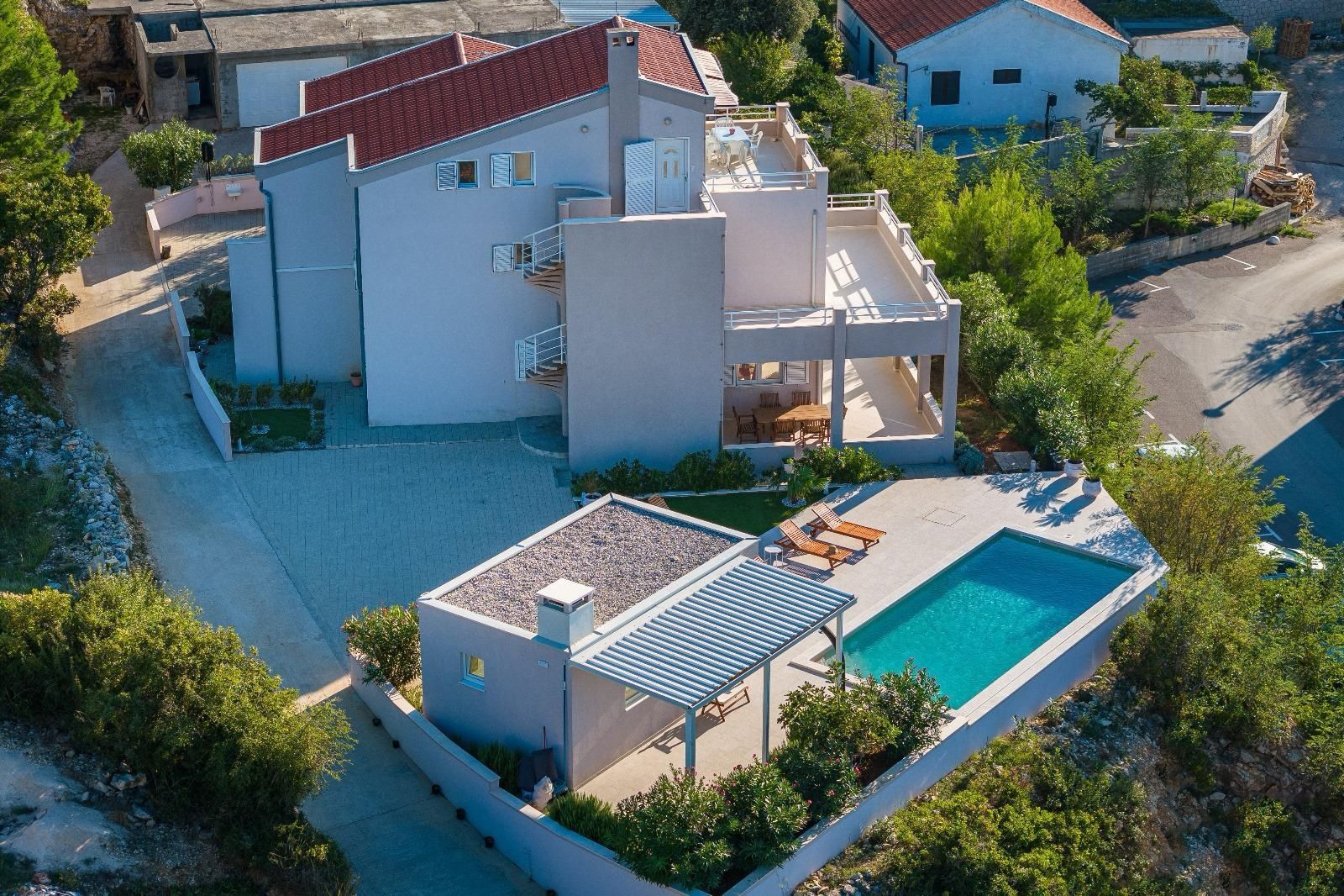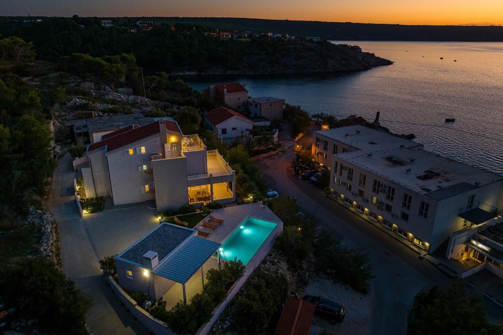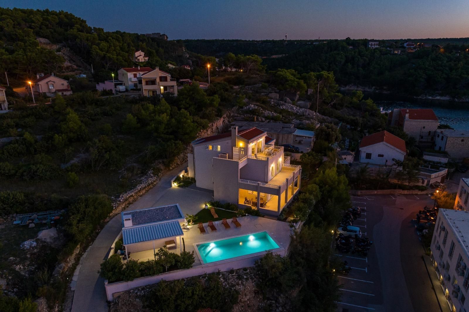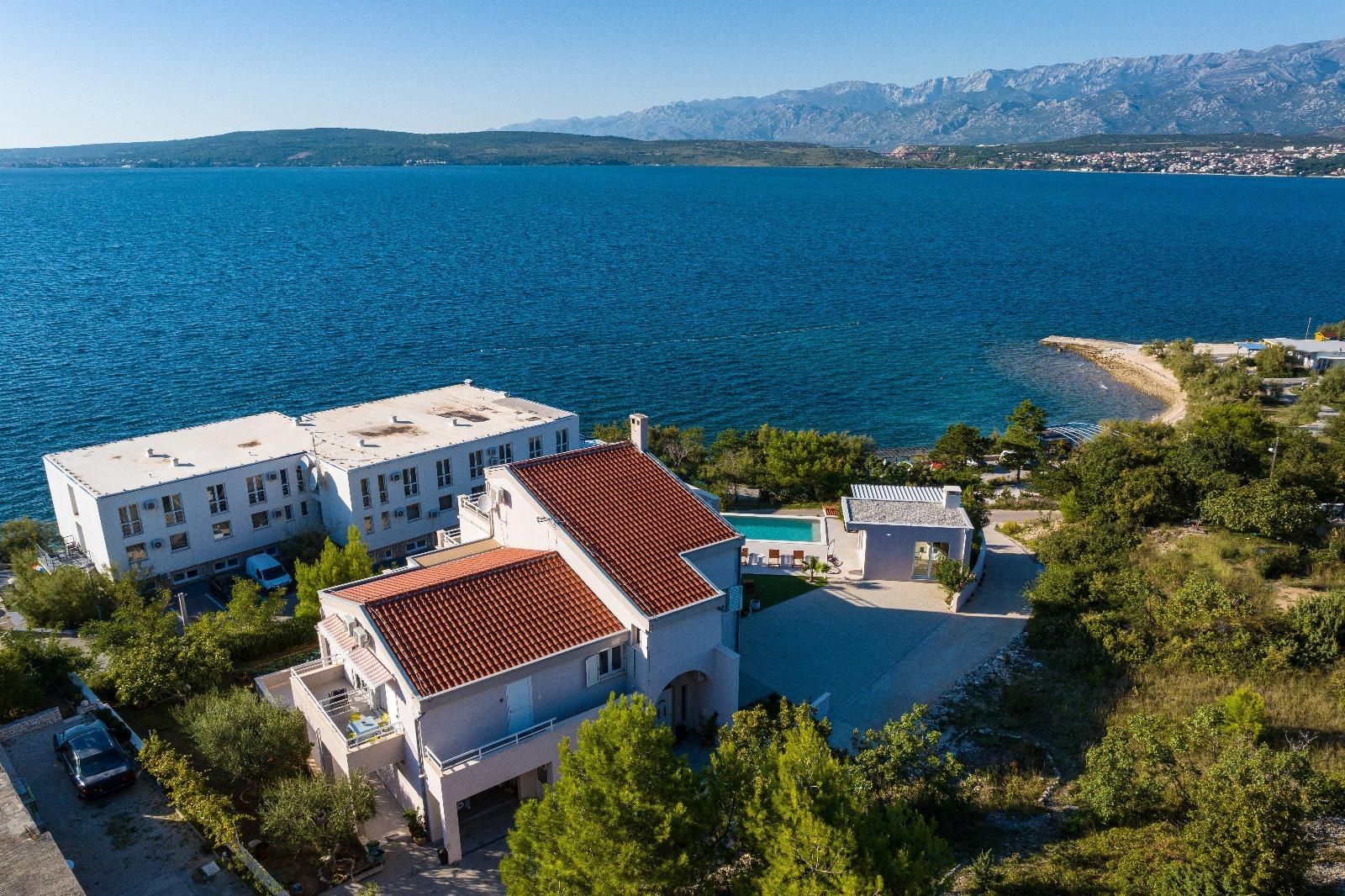 ZADAR, NOVIGRAD - Luxusní vila s panoramatickým výhledem na moře Na prodej je vysoce kvalitní a atraktivní vila nacházející se v jedné z nejkrásnějších částí Novigradu, pouhých 50 metrů od moře, pláže a promenády, s úchvatným výhledem na moře a ostrovy. S celkovou rozlohou 399 m² se vila nachází na prostorném pozemku o rozloze 1 080 m² a nabízí perfektní kombinaci luxusu, pohodlí a výjimečného investičního potenciálu. Vila je postavena na třech podlažích a dále rozdělena na několik bytových jednotek se samostatnými vchody, což umožňuje kombinaci soukromého života a turistického pronájmu. Dispozice podlaží: Přízemí (cca 110 m²): Prostorný a elegantně zařízený obývací pokoj s kuchyní a jídelnou, výstup na velkou terasu, ložnice se šatní skříní a luxusní koupelna s vířivkou a sprchovým koutem. 1. patro (cca 110 m²): Tři pohodlné ložnice, koupelna se sprchovým koutem, světlý obývací pokoj a terasa s krásným výhledem na moře. Plocha apartmánu (samostatné vchody): Apartmán 1 (33 m²): ložnice, obývací pokoj s kuchyní, koupelna a balkon Apartmán 2 (33 m²): ložnice, obývací pokoj, koupelna a dva balkony s výhledem na moře Apartmán 3 (46 m²): dvě ložnice, obývací pokoj s kuchyní, koupelna a balkon Vila nabízí prostornou garáž pro dvě auta (větší a menší), zatímco v suterénu se nachází moderní posilovna se sprchou, toaletou a luxusní saunou pro čtyři osoby, která poskytuje naprostý komfort a soukromý wellness zážitek. V upraveném nádvoří se nachází další vybavení - bazénový domek s grilem a venkovní kuchyní, ideální pro relaxaci, společenské aktivity a užívání si středomořského životního stylu. Vila byla postavena v roce 2008, má stavební povolení a čisté vlastnictví bez věcných břemen. Je vybavena centrálním plynovým topením, klimatizací a větracím systémem, garáží a několika zabezpečenými parkovacími místy. Nachází se v klidné ulici, v blízkosti veškeré potřebné občanské vybavenosti, a lokalita nabízí vynikající dostupnost - pouhých 30 km od Zadaru a 19 km od letiště Zemunik a v blízkosti přírodních krás, jako je Národní park Plitvická jezera, Národní park Kornati, Národní park Krka a Národní park Paklenica. Nemovitost je kategorizována pro turistický pronájem (3*), což z ní činí ideální příležitost pro investici nebo luxusní život u moře.