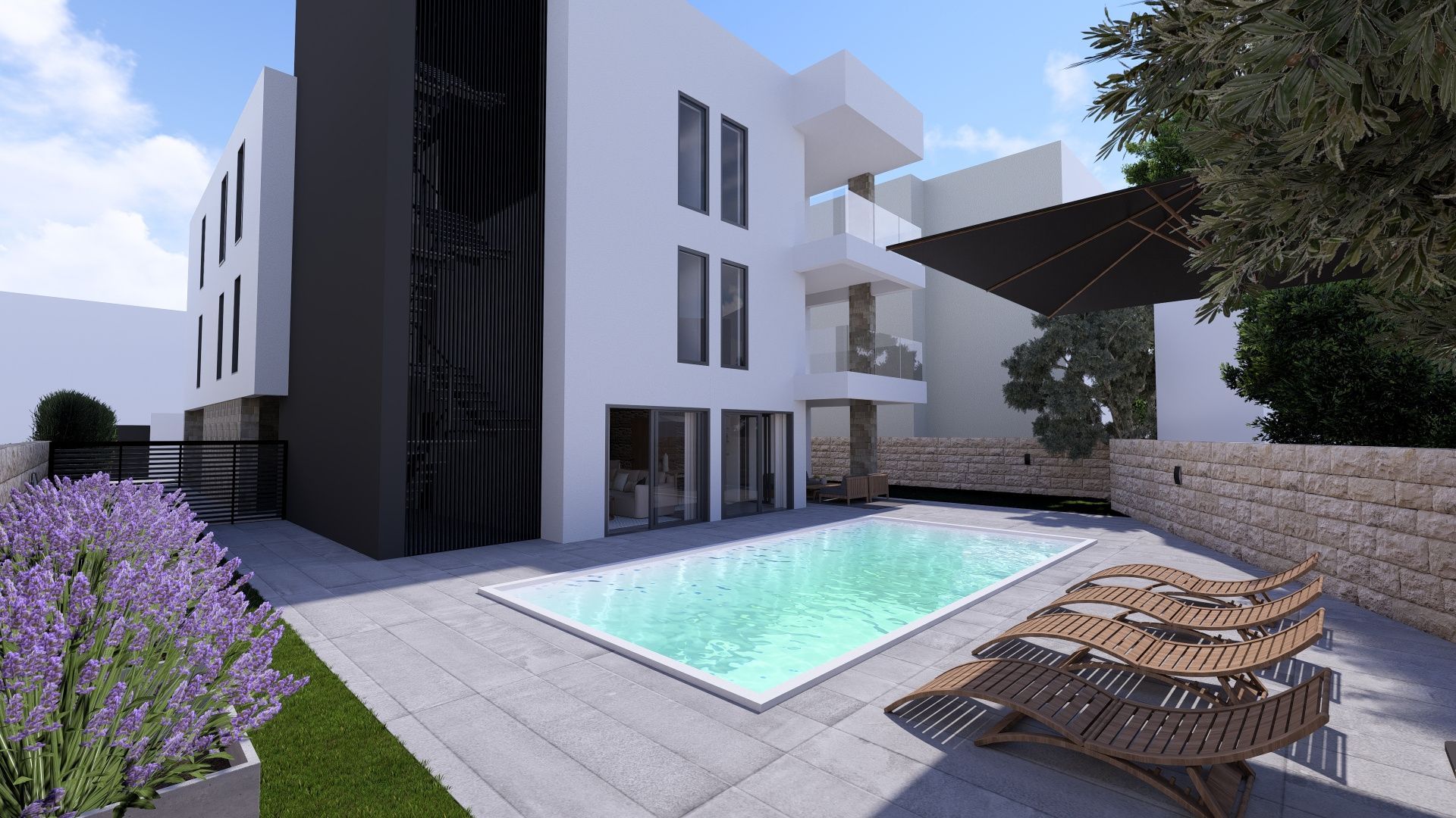 ZADAR, PETRČANE - Novostavba 2. řada u moře! Punta Skala! S1 V exkluzivní, jedinečné lokalitě se nachází mimořádná novostavba ve 2. řadě u moře! K prodeji jsou 4 luxusní apartmány, z nichž každý má 2 parkovací místa, z nichž jedno je kryté. Apartmán S1 se nachází v přízemí v severozápadní části budovy, vedle venkovního bazénu o rozměrech 7,6×4, apartmán se skládá z: kuchyně, jídelna a obývací pokoj | 37,10 m2 ložnice 1 | 9,53 m2 ložnice 2 | 9,49 m2 koupelna | 5,38 m2 chodba | 2,05 m2 CELKOVÁ velikost apartmánu 63,55 m² K nemovitosti náleží následující doplňkové díly a příslušenství: krytá terasa | 13,00 m² kryté parkovací místo | 13,75 m² nekryté parkovací místo | 13,75 m² venkovní terasa | 58,24 m² zahrada | 101,53 m² Celková plocha bytu S1 s přístavbou a příslušenstvím je 263,82 m² a celková užitná plocha je 101,48 m². Byt v přízemí bude mít ve velké soukromé zahradě soukromý venkovní bazén o rozměrech 7,6×4 m. Bude zdoben velkými prosklenými stěnami, které kromě toho, že bytu dodají dostatek denního světla, umožní výhled na bazén z velkého otevřeného obytného prostoru. Dva pokoje budou uspořádány jako ložnice s vestavěnými skříněmi a manželskými postelemi. Obytná část zahrnuje kuchyň ve tvaru L s barem a všemi potřebnými spotřebiči, jídelní kout se stolem a 6 židlemi a velké posezení před ním, před kterým se nachází krb a velká plochá televize. Elegantní koupelna bude vybavena sprchovým koutem a svisle instalovanou pračkou a sušičkou. Všechny apartmány budou mít parketové podlahy a prvotřídní keramiku. Cena zahrnuje prvotřídní italskou kuchyň a plně vybavenou koupelnu. Možnost zakoupení střešní terasy s výhledem na moře o rozloze 71,59 m². Dokončení výstavby je plánováno do konce roku 2026. S více než 152 slunečnými dny v roce je Petrčane jedním z nejslunnějších míst v zadarském regionu. Během léta se tato malebná vesnice mění v živé turistické centrum, které láká návštěvníky z celého světa. Pobřeží dlouhé více než 5 kilometrů je bohaté na udržované pláže – oblázkové, písčité a dlážděné – obklopené voňavými borovicovými lesy, které poskytují přirozený stín. Nejznámější pláže jsou Punta Radman, Žal, Punta Skala a Pinija, každá s vlastním kouzlem a vybavením pro rodiny, sportovce a milovníky klidu. V Punta Radman a Punta Skala se nacházejí dva hotelové komplexy s bohatou nabídkou ubytování, wellness a sportovních zařízení, které se vyznačují vysokou úrovní služeb a atraktivní polohou u moře.