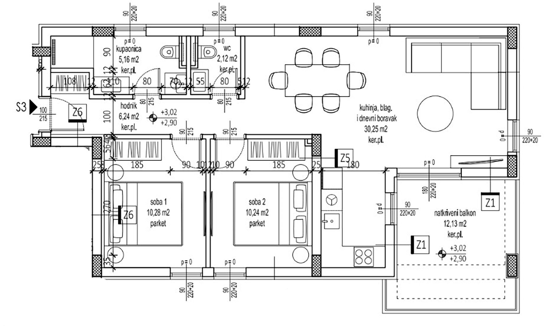 ZADAR, PETRČANE - Novostavba 2. řada u moře! Punta Skala! S3 V exkluzivní, jedinečné lokalitě se nachází mimořádná novostavba ve 2. řadě u moře! K prodeji jsou 4 luxusní apartmány, z nichž každý má 2 parkovací místa, z nichž jedno je kryté. Apartmán S3 se nachází v 1. patře v jihovýchodní části budovy a skládá se z: kuchyně, jídelna a obývací pokoj | 30,25 m2 ložnice 1 | 10,28 m2 ložnice 2 | 10,24 m2 koupelna | 5,16 m2 samostatná toaleta | 2,12 m2 chodba | 6,24 m2 CELKOVÁ velikost apartmánu 64,29 m2. K nemovitosti náleží následující doplňkové díly a příslušenství: krytý balkon | 12,13 m² kryté parkovací místo | 13,75 m² nekryté parkovací místo | 13,75 m² Celková plocha bytu S2 s přístavbou a příslušenstvím je 103,92 m² a celková užitná plocha je 79,99 m². Prostorný obývací pokoj s otevřeným prostorem propojený s kuchyní a jídelnou vytváří moderní a světlý prostor, ideální pro relaxaci a společenské akce. Velká prosklená stěna umožňuje dostatek přirozeného světla a přístup na krytý balkon. Dvě pohodlné ložnice mají dostatek prostoru pro manželské postele a pro maximální využití prostoru je vhodné instalovat vestavěné skříně na míru. Prostorný krytý balkon poskytuje ideální místo pro pobyt venku, pro ranní kávu, rodinné jídlo nebo večerní relaxaci, s ochranou před sluncem a povětrnostními vlivy. Kromě koupelny se sprchovým koutem má byt také samostatnou toaletu. Všechny byty budou vybaveny parketovými podlahami a prvotřídní keramikou. Cena zahrnuje prvotřídní italskou kuchyň a plně vybavenou koupelnu. Dokončení výstavby se očekává do konce roku 2026. Možnost zakoupení střešní terasy o rozloze 71,59 m² s výhledem na moře S více než 152 slunečnými dny v roce je Petrčane jedním z nejslunnějších míst v zadarském regionu. Během léta se tato malebná vesnice promění v živé turistické centrum, které láká návštěvníky z celého světa. Více než 5 kilometrů dlouhé pobřeží je plné udržovaných pláží – oblázkových, písčitých a zpevněných – obklopených voňavými borovicovými lesy, které poskytují přirozený stín. Nejznámějšími plážemi jsou Punta Radman, Žal, Punta Skala a Pinija, každá s vlastním kouzlem a vybavením pro rodiny, sportovce a milovníky klidu. V Punta Radman a Punta Skala se nacházejí dva hotelové komplexy s bohatou nabídkou ubytování, wellness a sportovních zařízení, které se vyznačují vysokou úrovní služeb a atraktivní polohou u moře.