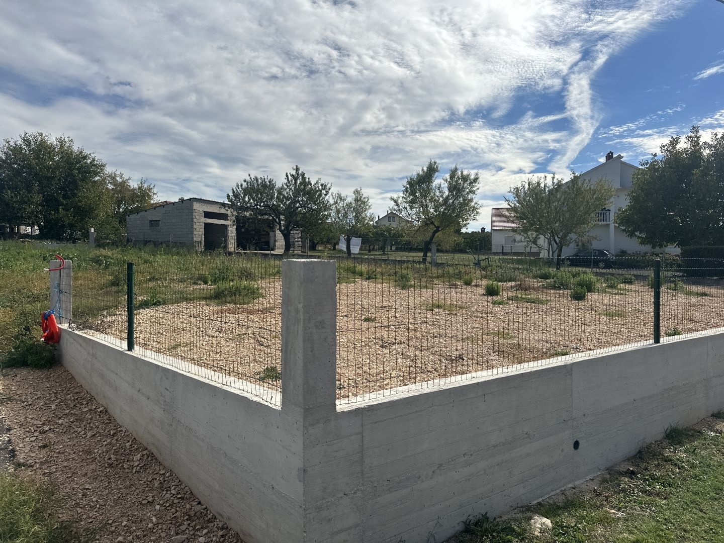 ZADAR, POLIČNIK - Udržovaný pozemek obehnaný zdí! Stavební pozemek k prodeji v Poličniku, v obydlené a klidné části obce. Pozemek se nachází u asfaltové silnice s úhledným přístupem a veškerá potřebná infrastruktura - elektřina a voda - je vzdálena jen pár metrů. Parcela má pravidelný obdélníkový tvar o rozměrech přibližně 57 metrů na délku a 23 metrů na šířku, což umožňuje snadné plánování a výstavbu rodinného domu nebo rekreační vily. Pozemek je kompletně obehnán betonovou zdí a plotem a nachází se v zastavěné části obce s příjezdovou cestou a úhledným okolím. Tento prostorný a úhledný pozemek je ideální pro ty, kteří hledají klid a soukromí a zároveň chtějí být blízko Zadaru a veškeré důležité občanské vybavenosti.