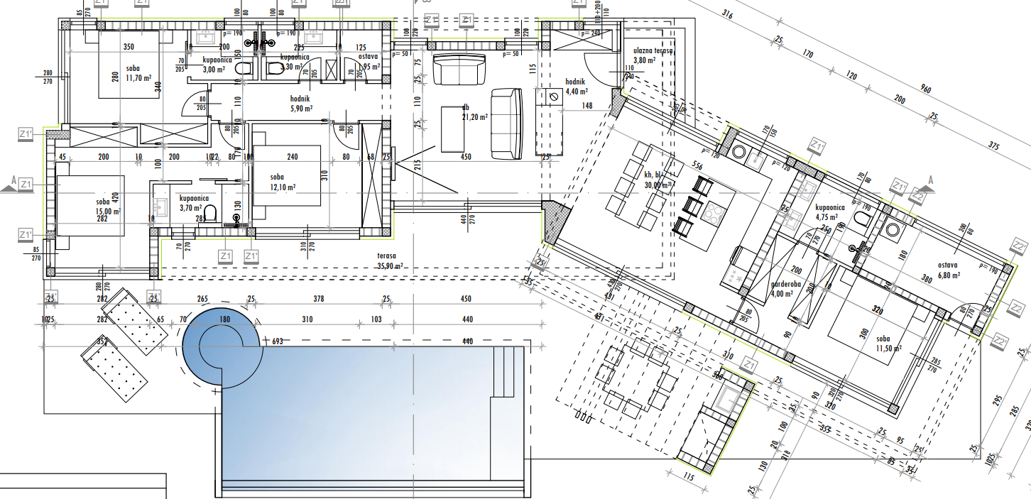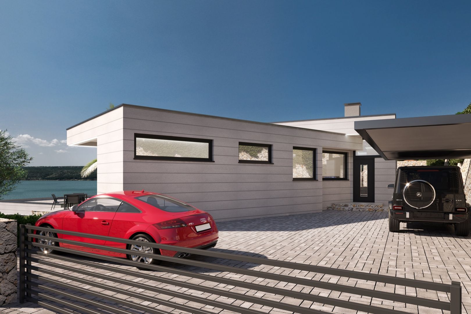 ZADAR, POSEDARJE - Okouzlující přízemní vila s panoramatickým výhledem na moře! Vítejte v oáze elegantního pohodlí a současného stylu, kde se mimořádná stavba snoubí s nekonečnou krásou Jaderského moře. Tento luxusní jednopatrový dům v Posedarje se nachází podél pobřeží a nabízí jedinečnou kombinaci pohodlí, elegance a nádherných výhledů. Každý detail této vily byl pečlivě navržen tak, aby poskytoval maximální zážitek ze stylu a pohodlí. Se svými nádherně vybudovanými železobetonovými stěnami je tato rezidence synonymem síly a bezpečnosti. Plotové zdi, obložené ručně tesaným přírodním kamenem, dodávají nádech tradiční elegance, která dokonale splyne s přírodou. Truhlářství Schuco zajišťuje optimální světlo a ventilaci, zatímco prostorný obývací pokoj zve k odpočinku s neuvěřitelným výhledem na nekonečnou modř moře. Infinity edge vyhřívaný bazén s jacuzzi poskytuje pocit luxusu a soukromí, zatímco podlahové vytápění celého domu zajišťuje příjemné teplo ve všech místnostech. Fasáda pokrytá přírodním bračským kamenem zobrazuje nekonečnou eleganci a kvalitu, zatímco posuvné dveře Schuco od podlahy ke stropu přinášejí do každé místnosti pocit prostornosti a světla. Tato vila nabízí nejen luxus, ale také praktičnost a bezpečnost. Soukromá zahrada a bazén nabízí oázu klidu a relaxace, zatímco hlídané parkoviště a kamerový systém poskytují kompletní zabezpečení vašeho vozidla a domova. Tento jednopodlažní dům se čtyřmi prostornými ložnicemi, z nichž každá má vlastní koupelnu, poskytuje dokonalý prostor pro zábavu a odpočinek celé rodině. S obytnou plochou 204 m2 a prostornou zahradou 808 m2 nabízí tato vila neuvěřitelnou příležitost pro život snů podél pobřeží Jaderského moře. Nechte se okouzlit tímto jednopatrovým domem v Posedarje svou krásou a pohodlím a vytvořte dokonalé místo, kde si můžete užívat života u moře. Ve výstavbě, plánované dokončení do května 2025.