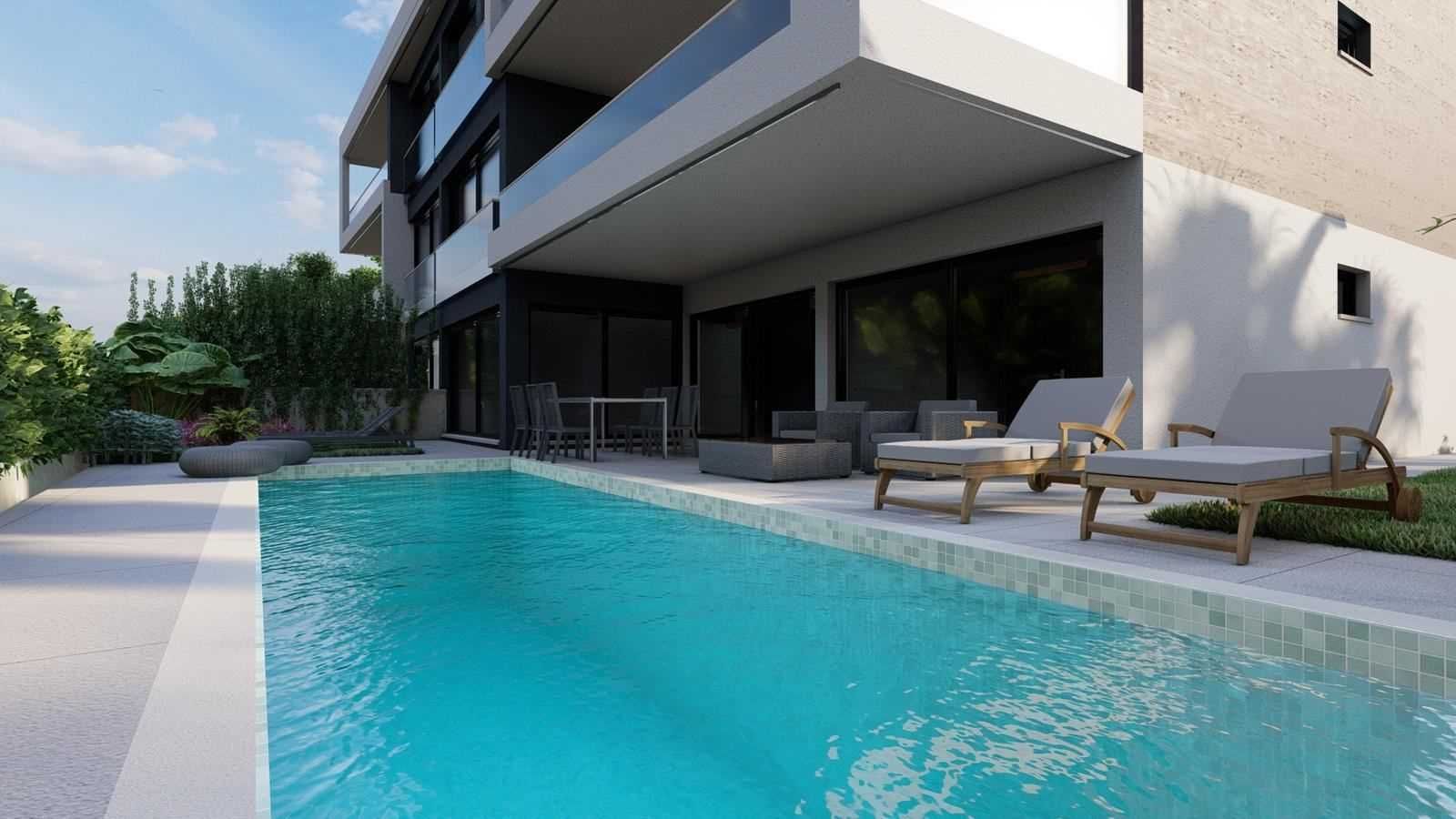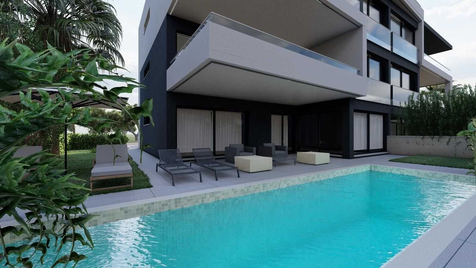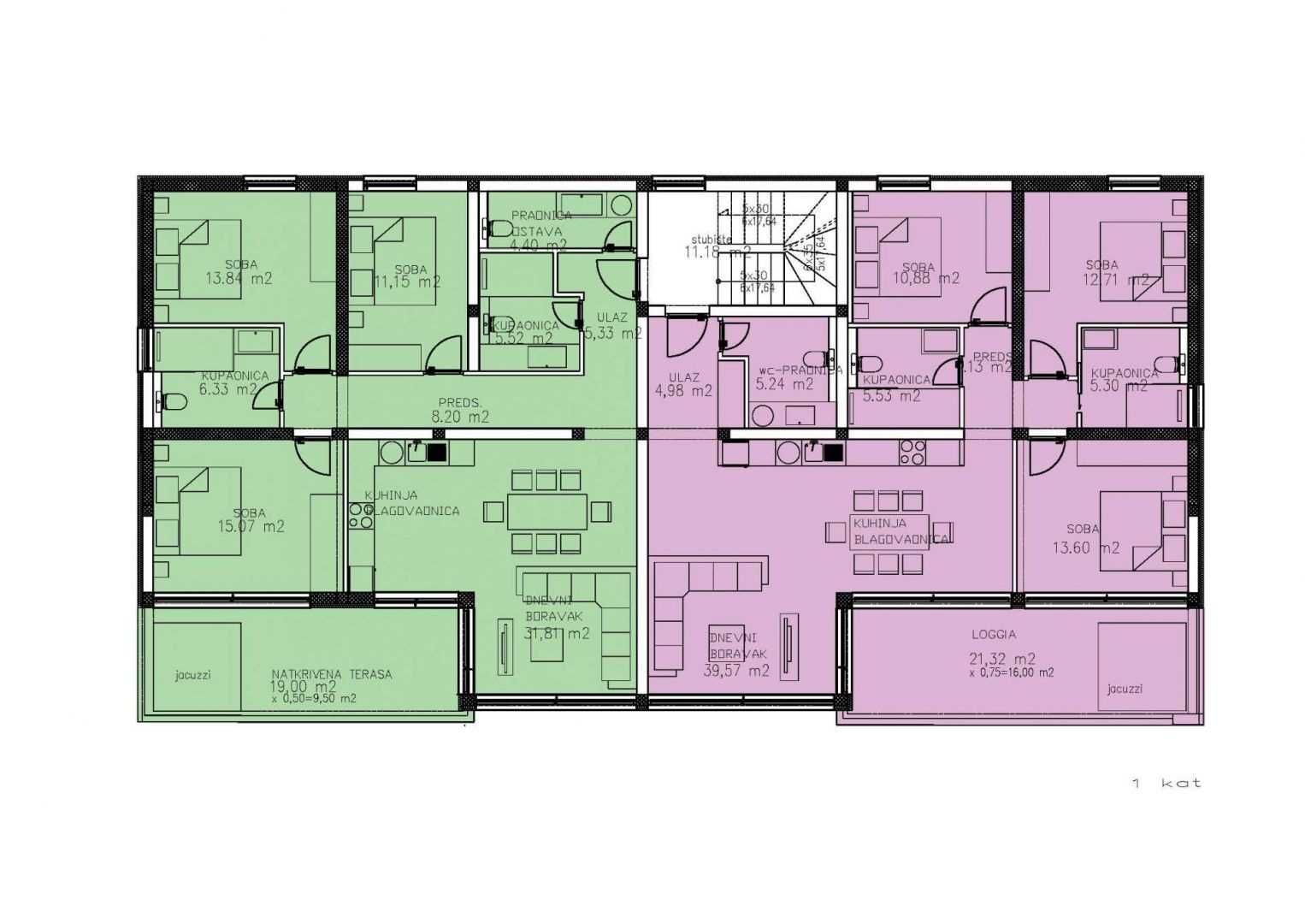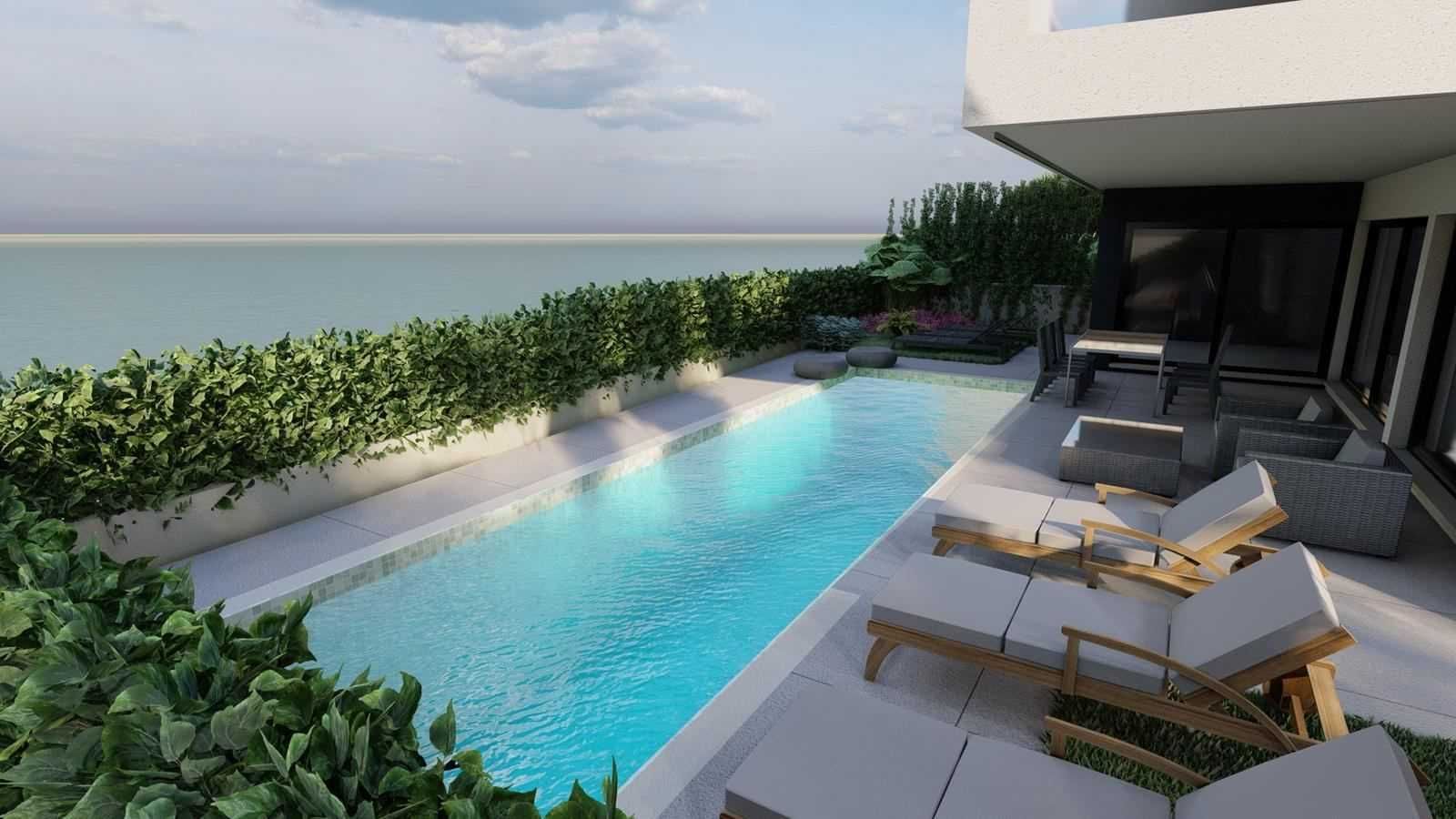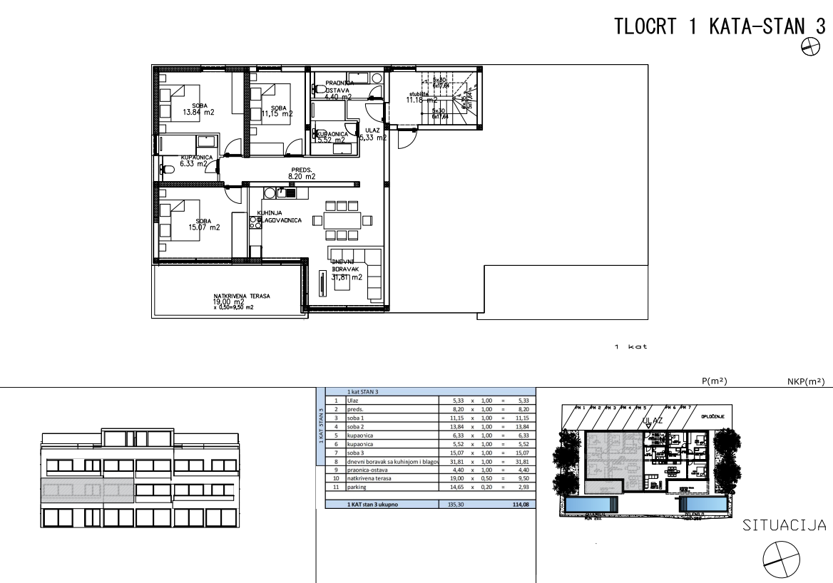 ZADAR, PRIVLAKA - Luxusní byt ve výstavbě, 1. řada k moři S3 bytového domu, luxusní vily se šesti bytovými jednotkami u moře. Byt o celkové obytné ploše 101,65 m2 se skládá ze tří ložnic, dvou koupelen, prostorného obývacího pokoje, kuchyně s jídelnou, chodby a komory. K bytu náleží krytá terasa 19 m2 s vířivkou a jedno parkovací stání ve dvoře domu. Celková užitná plocha bytu včetně veškerého příslušenství je 114,08 m2. Byt je plně klimatizovaný, vytápění zajišťuje systém tepelného čerpadla, v koupelnách je podlahové vytápění. Při stavbě byly použity kvalitní materiály, jako je prvotřídní italská keramika a dubové podlahové krytiny, PVC truhlářské žaluzie s elektrickým pohonem, bezpečnostní dveře. Tepelná izolace na fasádě je 10 cm polystyren. Privlaka je malé malebné místo na pobřeží Jaderského moře, které potěší svou poklidnou atmosférou a krásnými plážemi. Privlaka se nachází pouhých 16 km od městského centra Zadaru a také v blízkosti různých zařízení, jako jsou národní parky a přírodní parky. Nedaleko je také královské město Nin, známé pro nejdelší písečné pláže v Chorvatsku a bohaté kulturní a historické dědictví. Nejbližší letiště je 27 km od Privlaka a dálnice je jen 28 km daleko.