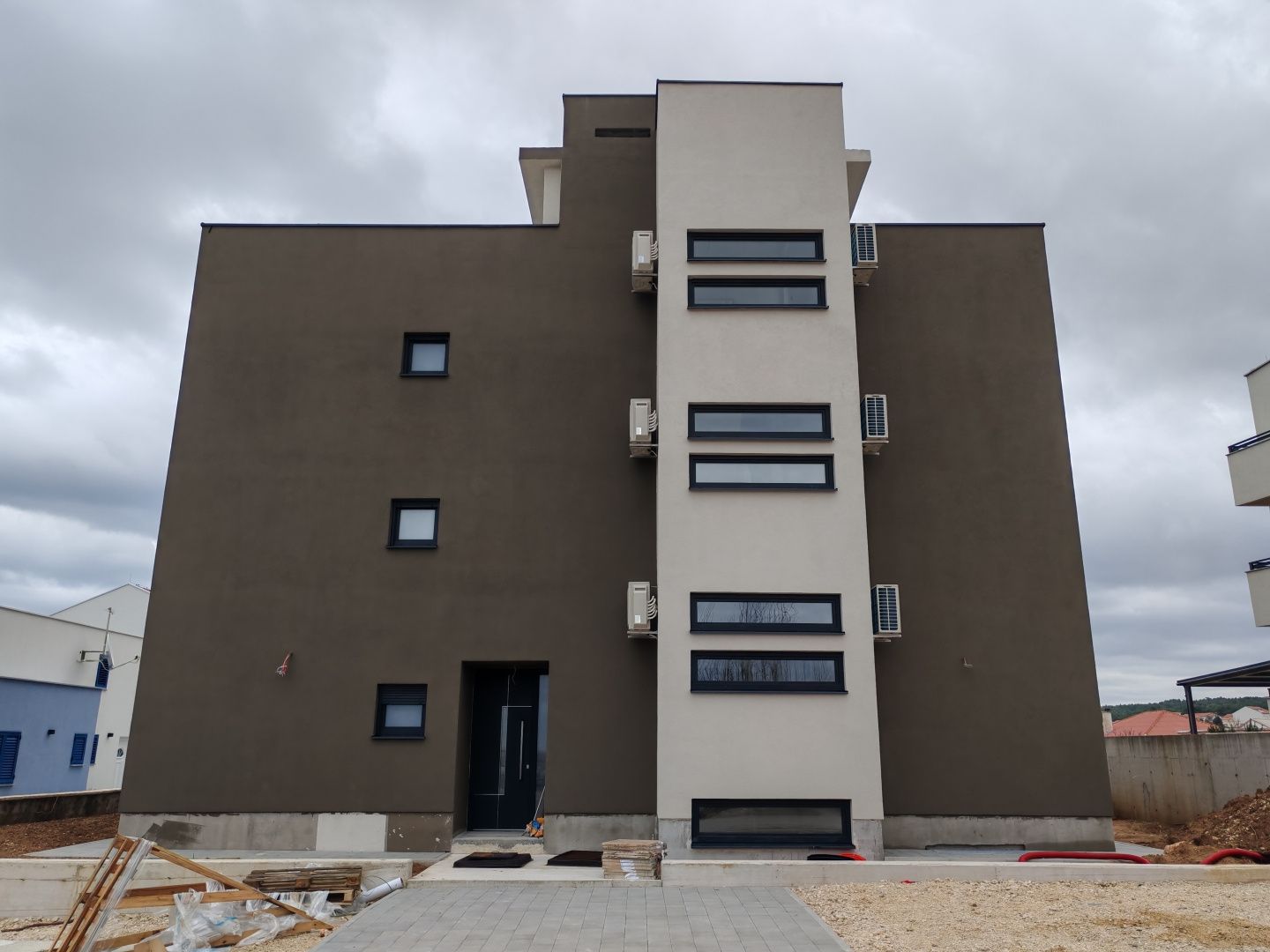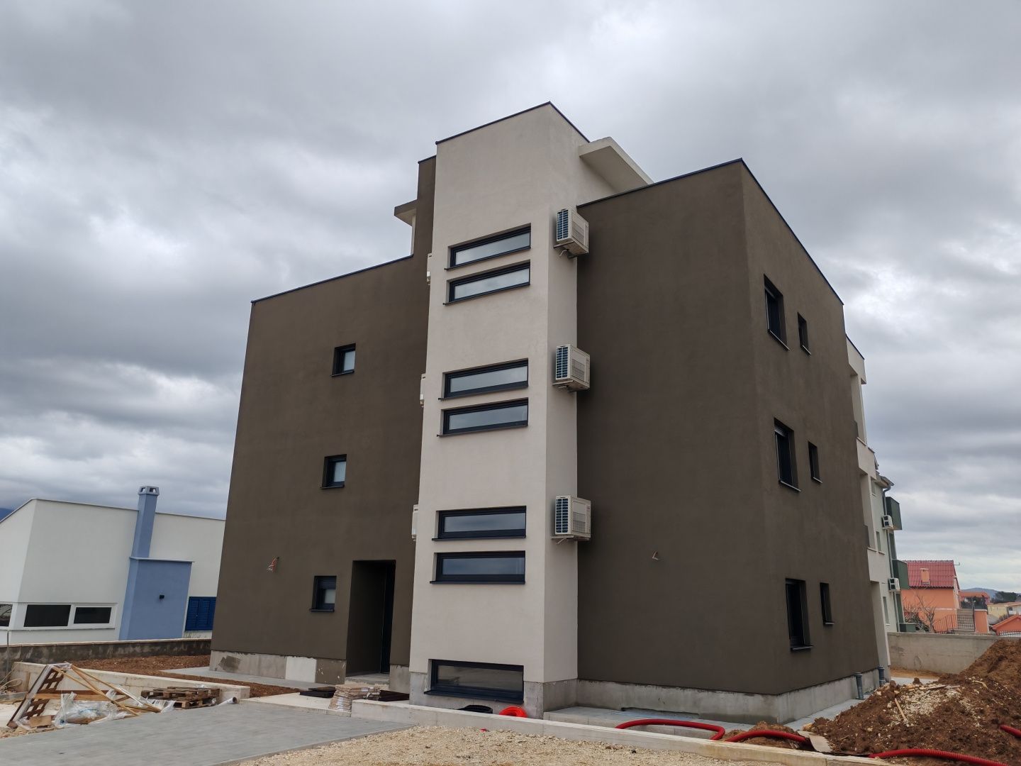 ZADAR, RAŽANAC - Novostavba! Podlahové vytápění, výtah, výhled na moře, úložný prostor...! S6. Na prodej jsou špičkové apartmány v novostavbě nacházející se v klidném a malebném místě Ražanac, ideálním pro bydlení, dovolenou nebo investici. Budova má celkem šest moderně navržených apartmánů, každý s vlastním úložným prostorem v suterénu a vlastním parkovacím místem. Jsou vzdáleny pouhých 320 metrů od oblázkové pláže s výhledem na Velebit. Budova je vybavena výtahem a všechny apartmány mají podlahové vytápění, které zaručuje příjemnou teplotu po celý rok. Každá jednotka má také vestavěnou klimatizaci ve všech místnostech, což dále přispívá ke komfortu. Apartmán S6 ve druhém patře nabízí perfektní kombinaci funkčnosti a pohodlí - skládá se ze dvou ložnic, moderní koupelny, další toalety, prostorného obývacího pokoje s kuchyní a jídelnou, kryté terasy a další střešní terasy s krásným výhledem na moře. Plánované dokončení je do konce roku 2025. Ražanac je okouzlující dalmatské městečko, které spojuje klid, přírodu a tradiční středomořský duch. Jeho pláže jsou známé svou výjimečnou čistotou a úchvatnými výhledy na mohutný Velebit, který vytváří dechberoucí scenérie. Je ideální pro každého, kdo hledá únik od shonu každodenního života a chce si užít autentickou přímořskou atmosféru. Pro více informací nebo prohlídku nás neváhejte kontaktovat – apartmány jsou připraveny k nastěhování a tato příležitost se naskytne jen zřídka.