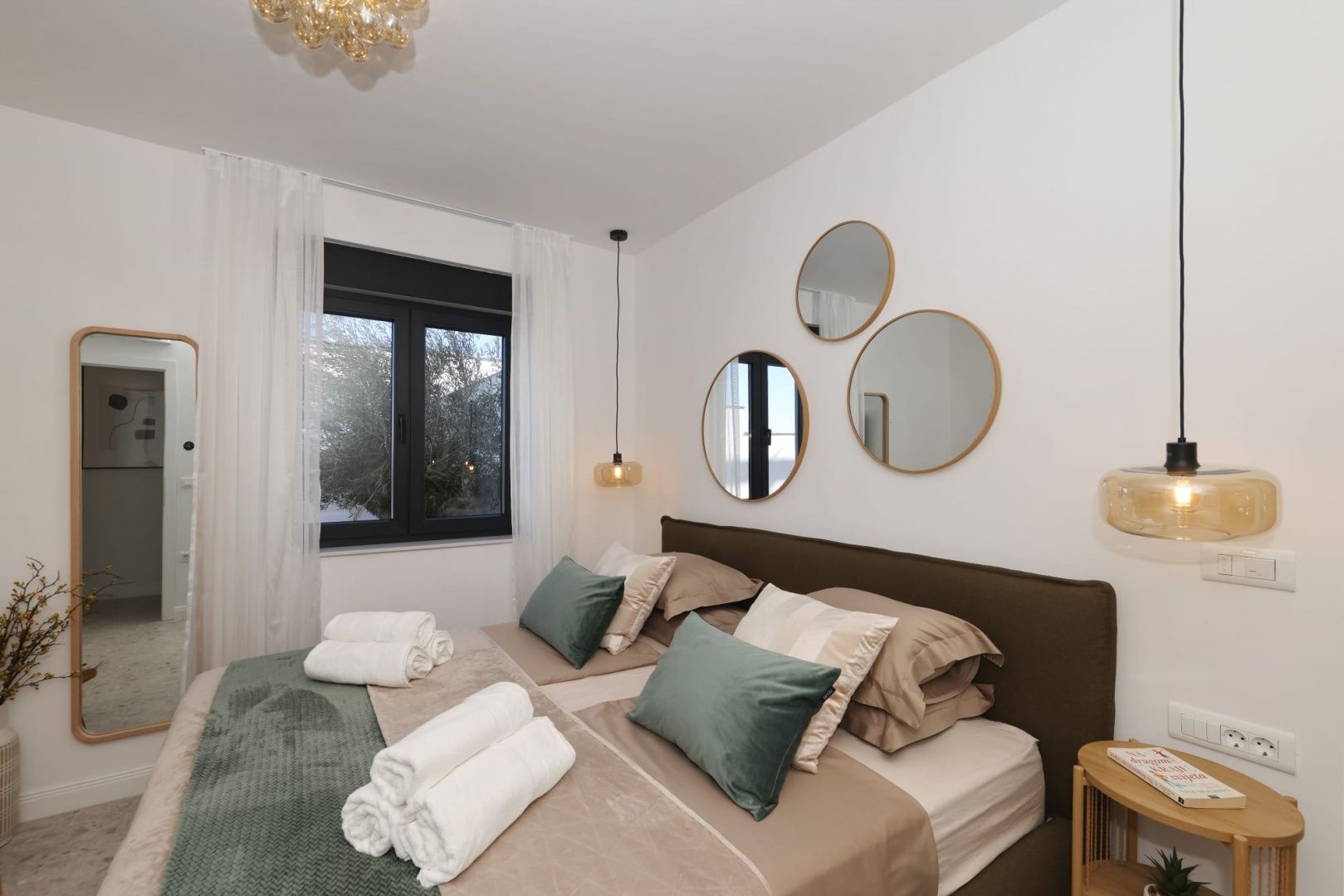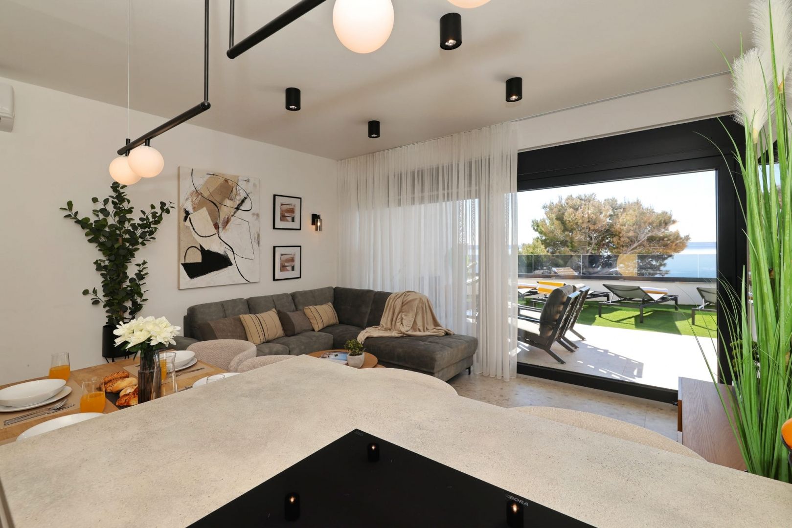 ZADAR, RTINA - zařízený apartmán se zahradou u moře Jen pár minut jízdy od ostrova Pag a půl hodiny od Zadaru, v klidném přímořském městečku Rtina, je k prodeji moderní a plně zařízený dvoupokojový apartmán se soukromou zahradou a vířivkou. Tato nemovitost je ideální příležitostí pro ty, kteří hledají zařízený rekreační dům, turistickou investici nebo klidný život u moře, v novější budově a kvalitně navrženém prostoru. Apartmán se nachází v přízemí novostavby, s vlastním vchodem a oplocenou zahradou, která poskytuje naprosté soukromí. Je zařízen moderně s důrazem na pohodlí a funkčnost a prodává se plně zařízený - připravený k nastěhování bez dalších investic. Vnitřní prostor se skládá ze dvou ložnic (jedna s vlastní koupelnou), koupelny, obývacího pokoje s přístupem na terasu a do zahrady, moderně vybavené kuchyně s jídelnou. Dvůr je upraven pro zábavu - s vířivkou, lehátky, venkovní sprchou, grilem a krytou jídelnou. Ideální pro pobyt venku po většinu roku, s podmanivým výhledem na moře a blízké ostrovy. Poloha nabízí snadný přístup na pláž, která je vzdálena jen pár minut chůze, a obchody, restaurace a veškerá potřebná občanská vybavenost jsou v dosahu. Blízkost Pagu a Zadaru činí z této nemovitosti strategicky vynikající volbu pro klidný život, víkendový pobyt nebo stabilní příjem z cestovního ruchu. Tato nemovitost představuje dokonalou kombinaci stylu, kvality a středomořské atmosféry - ideální příležitost pro každého, kdo hledá život nebo dovolenou u moře bez kompromisů. ****