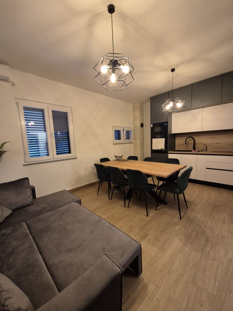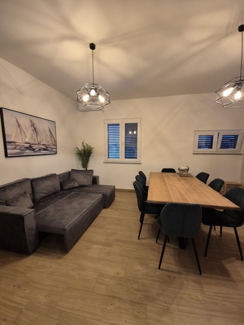 ZADAR, SELINE - PŘÍLEŽITOST! Dům v 1. řadě u moře Prodává se krásný dům v městečku Seline, obec Starigrad-Paklenica, pouhých 20 metrů od upravené pláže a křišťálově čistého moře. Dům byl kompletně zrekonstruován v roce 2025, během které byly provedeny veškeré stavební a instalační práce: byla zavedena třífázová elektřina, vyměněny kompletní instalace elektřiny a vody, instalovány nové obklady stěn a podlah, instalována nová sanitární keramika, vymalovány všechny stěny a postavena nová kuchyňská linka na míru s vestavěnými spotřebiči a koupelnovým nábytkem na míru. Dům byl zrekonstruován i zvenku, takže není žádná část, která by nebyla zahrnuta do prací. K dispozici je fotodokumentace kompletní rekonstrukce. Nemovitost se skládá ze suterénu, přízemí a podkroví: Suterén: dva sklady, jeden na víno a jeden na uložení věcí. Přízemí: třípokojový byt sestávající ze vstupní haly, kuchyně s jídelnou a obývacím pokojem, tří ložnic, dvou koupelen s toaletou a samostatné toalety. Z obývacího pokoje se vchází na prostornou krytou terasu s úložným prostorem (dříve využívaným jako letní kuchyně). Za domem: čtyři další úložné místnosti (cca 80 m²), které lze přestavět na byt, saunu nebo vířivku. Podkroví: neobydlené, s možností úpravy. Celková obytná plocha je cca 90 m², s terasou o celkové rozloze cca 120 m² a dalších 80 m² pomocných místností. Dům je vybaven klimatizací ve všech ložnicích a obývacím pokoji a obývací pokoj je vybaven peletovým topením (kamna připravená k instalaci). Má kategorizační rozhodnutí (3 hvězdičky), což z něj činí ideální místo pro turistický pronájem nebo jako rodinný rekreační dům. V okruhu 200 metrů se nachází veškeré vybavení potřebné pro každodenní život a příjemný pobyt: obchody, kavárny, restaurace, pekárna, kostel, dětské hřiště a udržované pláže. Vlastnictví je úhledné, dokumentace je kompletní a k dispozici na vyžádání. Tato nemovitost představuje vzácnou příležitost – moderně zařízený dům přímo u moře, v jedné z nejkrásnějších částí Zadarské riviéry, připravený k nastěhování nebo k pokračování ve vašem turistickém podnikání.