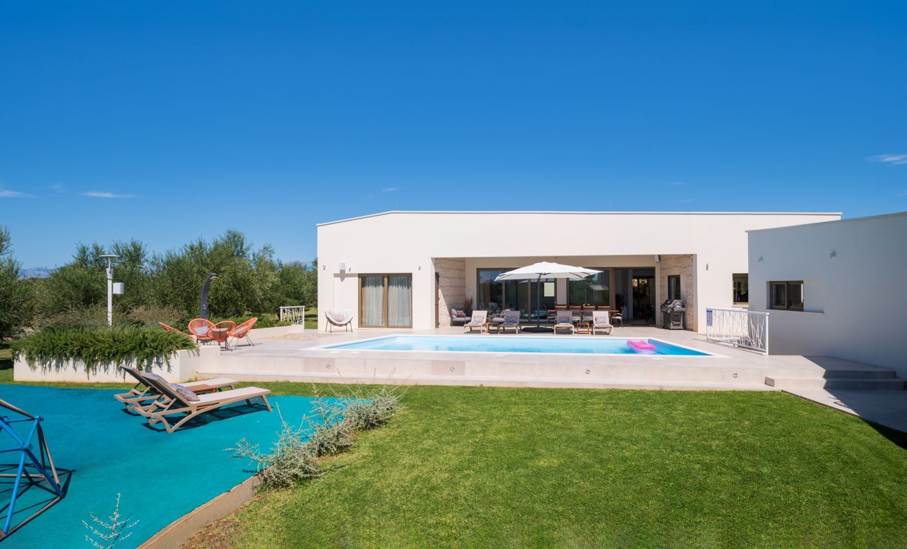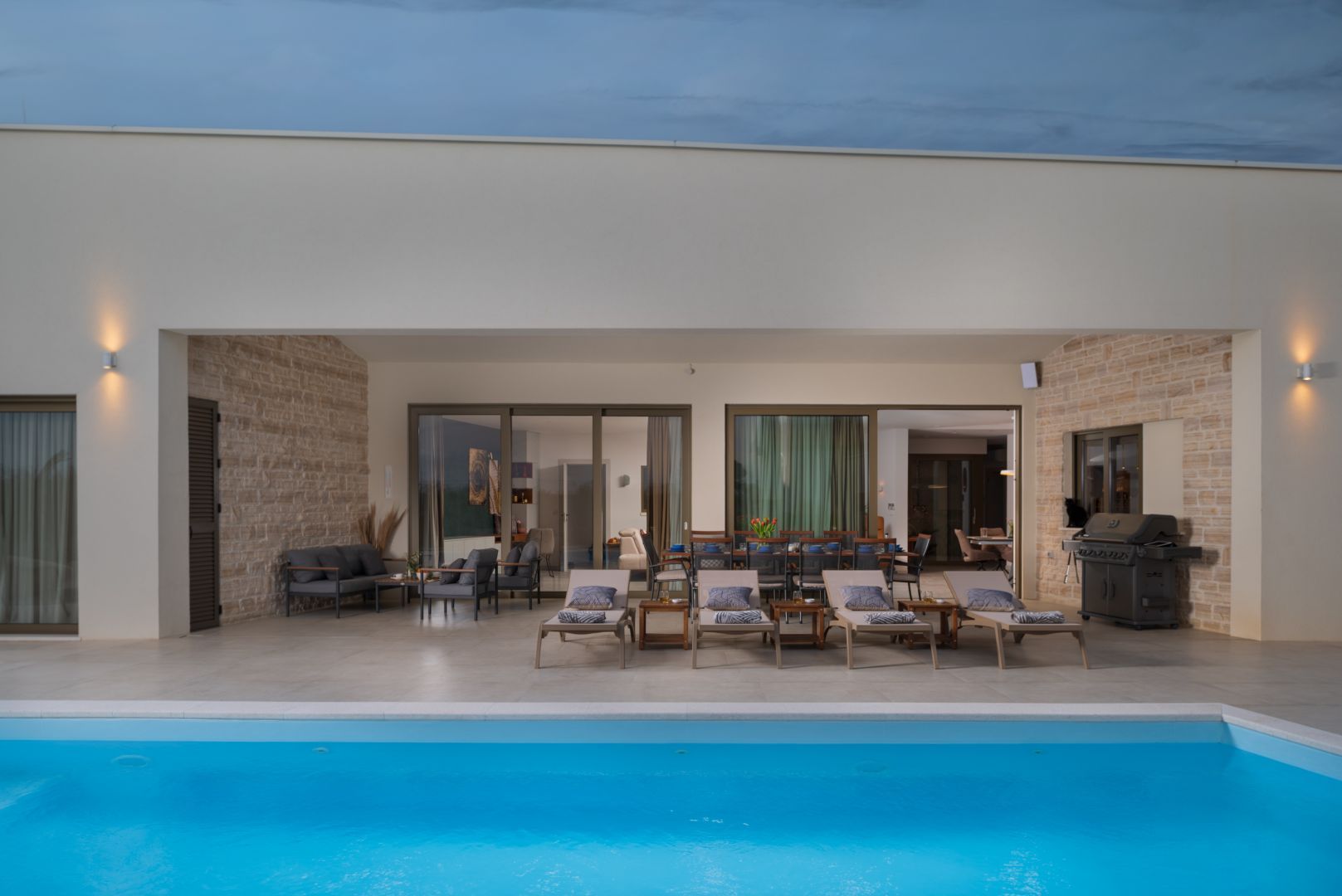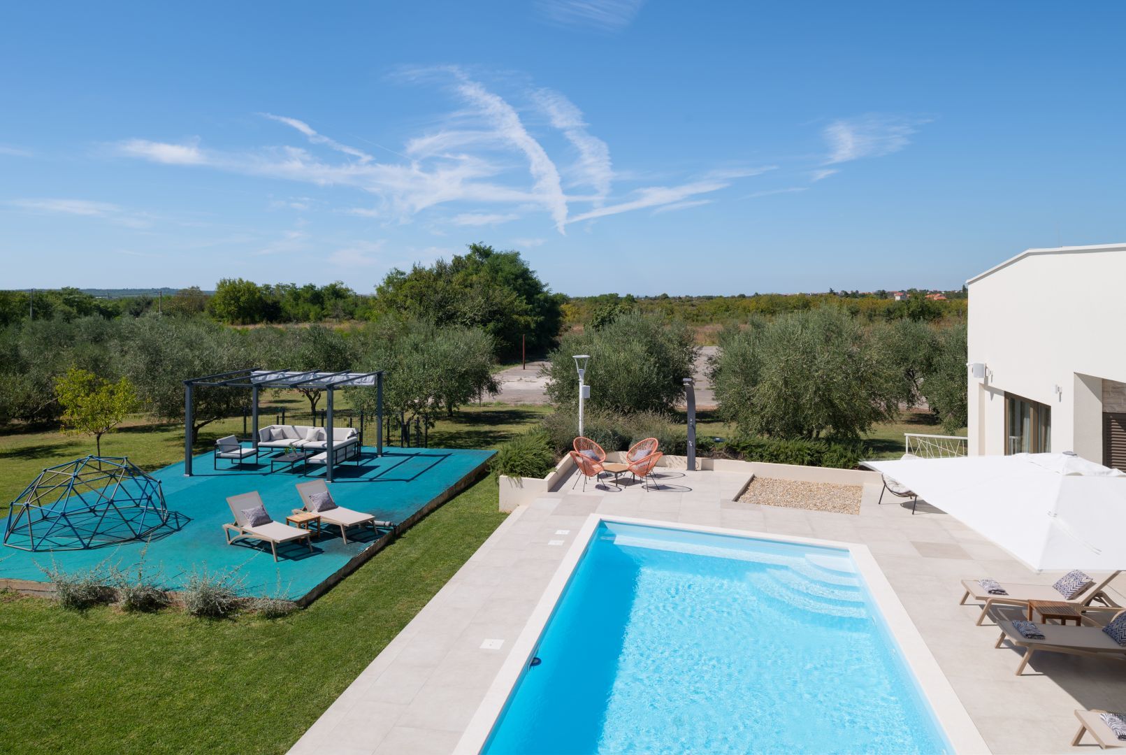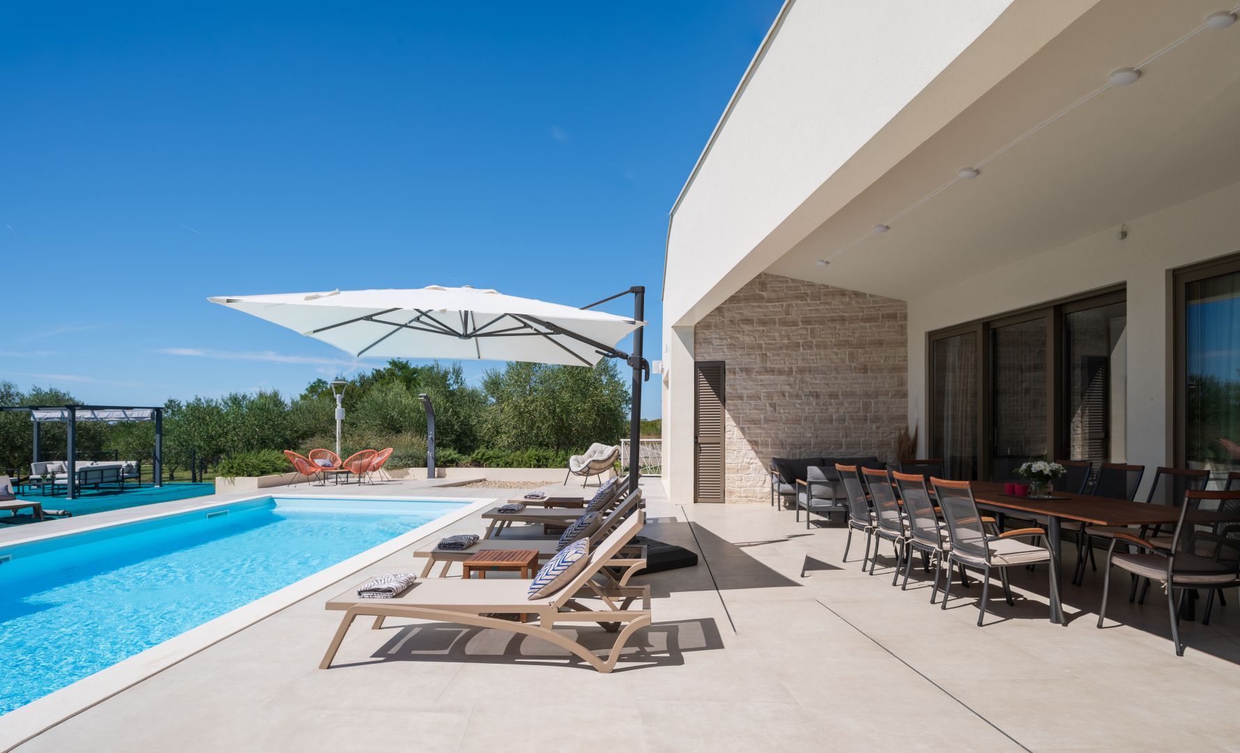 ZADAR, SMOKOVIĆ - Luxusní rekreační dům Plně zařízený luxusní rekreační dům s 5 ložnicemi (každý pokoj má vlastní WC, koupelnu a terasu), velkým obývacím pokojem, kuchyní a jídelnou, zimní zahradou, velkou terasou s bazénem, dvěma sklepy, dvěma garážemi , vnější pomocná budova s vnitřním grilem, pokoj pro hosty a kůlna na nářadí. Vedle domu na pozemku je 45 orných oliv a je zde možnost dokoupit další pozemky z více orných olivovníků. Dům je mimořádně moderní a luxusně zařízený nejmodernější technologií. V celém domě bylo provedeno podlahové vytápění a také vodní tepelná čerpadla. Dům byl postaven pro život rodiny majitele, při stavbě a zařízení byly použity nejkvalitnější materiály a instalováno nejmodernější technické vybavení. Centrum Zadaru je 13 km od domu a letiště Zadar je 7 km od domu.