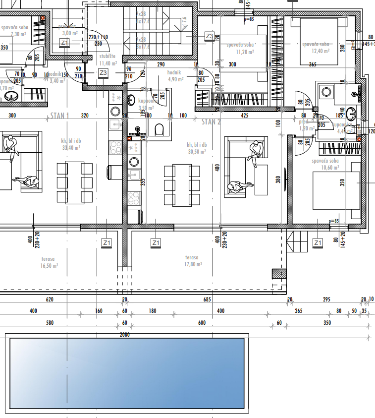 ZADAR, SUKOŠAN - Špičková novostavba! Podlahové vytápění, vyhřívaný bazén, 120 metrů od moře...! S2 Na prodej jsou nové, moderní apartmány v krásném Sukošanu, v budově s celkem šesti bytovými jednotkami, ideální pro klidný život nebo jako investice k dovolené a pronájmu. Každý apartmán má tři ložnice, dvě koupelny, pohodlný obývací pokoj, jídelnu a kuchyň a prostornou terasu pro užívání si čerstvého vzduchu. Budova je vzdálena pouhých 120 metrů od pláže - jen tři minuty chůze k moři. V přízemí se nachází společný vyhřívaný bazén o rozloze 30 m2, ideální pro relaxaci po celý rok, zatímco kolem budovy je zelená zahrada, která poskytuje pocit soukromí a klidu. Každý apartmán má vlastní úložný prostor a penthousy mají navíc exkluzivní střešní terasy s panoramatickým výhledem. Apartmány v prvním a druhém patře také nabízejí krásný výhled na moře. Komfort a kvalita výstavby jsou na nejvyšší úrovni: podlahové vytápění v celém bytě, klimatizace v každé místnosti, elektrické rolety, moskytiéry... Dokončení výstavby je plánováno do konce roku 2026 a jelikož je majitelem právnická osoba, kupující neplatí daň z nemovitosti. Sukošan je okouzlující dalmatské městečko známé svými písečnými plážemi, čistým mořem a přístavy, ideální pro milovníky klidného života u moře. Nachází se pouhých 10 minut jízdy od Zadaru - historického města s bohatým kulturním dědictvím, špičkovou gastronomií a pulzující atmosférou po celý rok. Pro více informací a prohlídku nás neváhejte kontaktovat - najděte si svůj ideální domov u moře v Sukošanu!