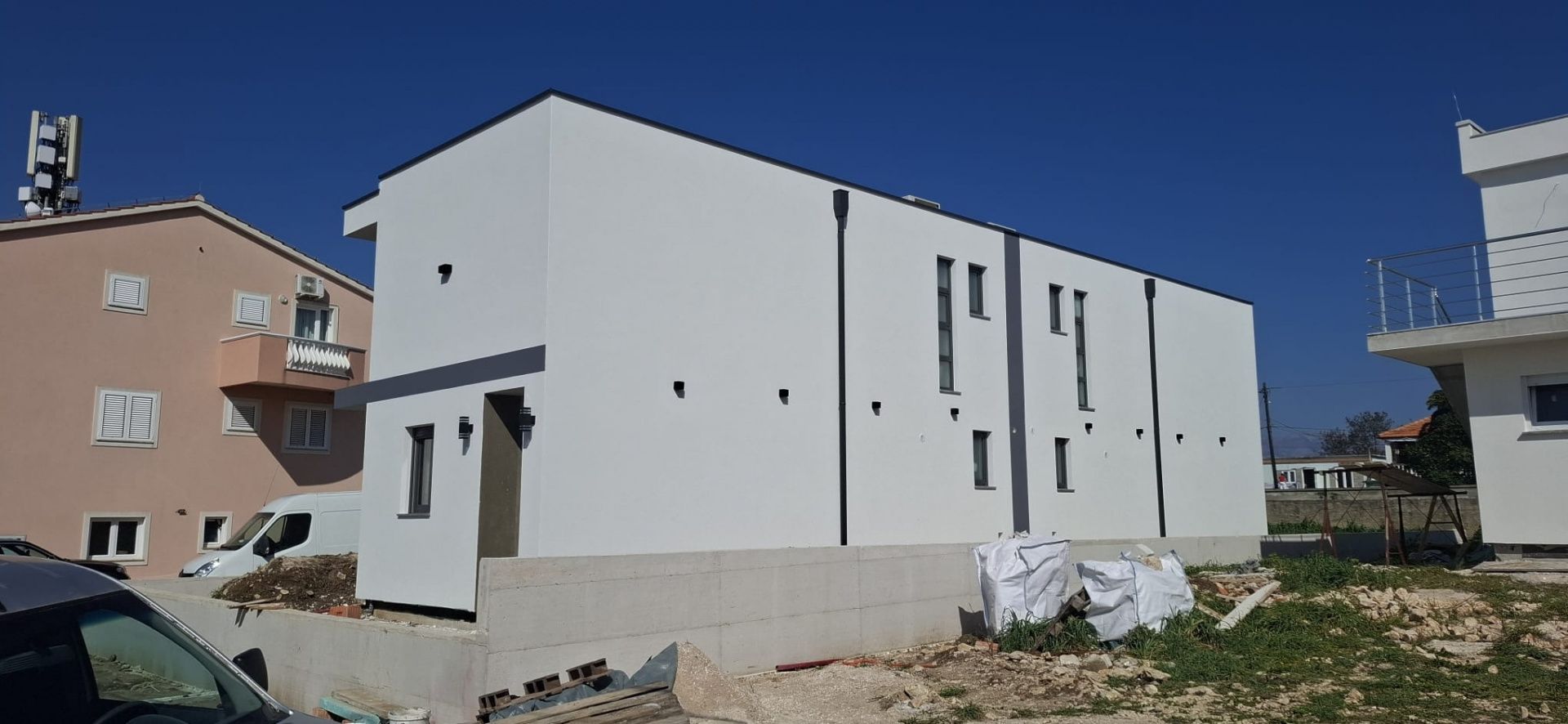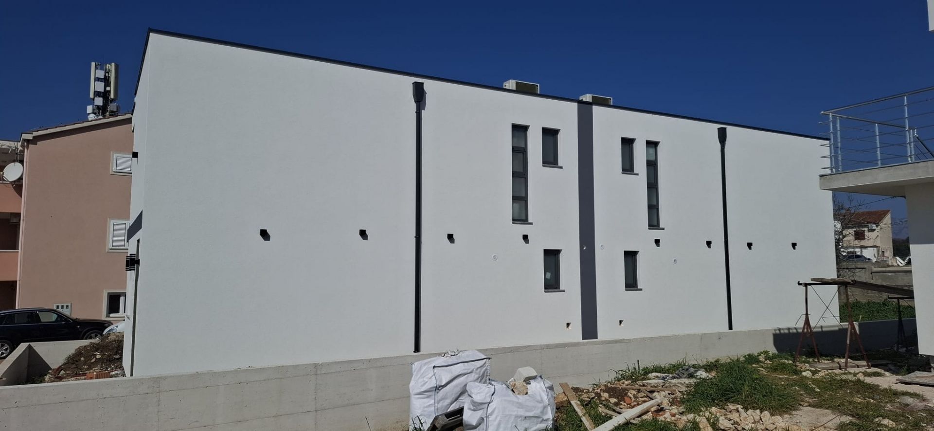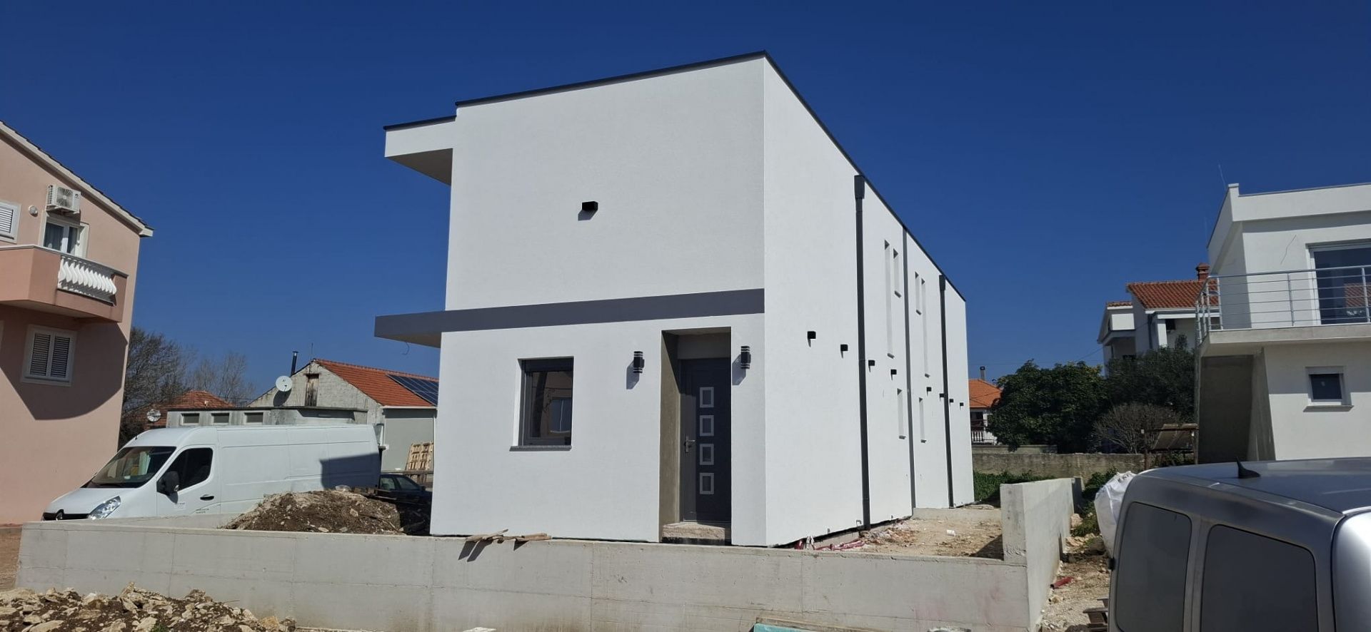 ZADAR, VRSI - Vynikající dvojdomek s výhledem na moře a zahradou! V klidném přímořském městečku Vrsi, hned vedle historického Ninu a všeho, co malebný Zadar nabízí, se prodává moderní dvojdomek, který kombinuje kvalitní konstrukci, pohodlí a středomořský životní styl. Vrsi je známá svými krásnými plážemi, čistým mořem a uvolněným dalmatským rytmem, zatímco Zadar je v dosahu s restauracemi, obchody, kulturními památkami a krásnými západy slunce. Ideální místo pro klidný život, ale také vynikající příležitost k turistickému pronájmu. Dům je ve výstavbě a plánované dokončení výstavby je na jaře 2026. Byl postaven na principu "na klíč", což znamená, že se do něj nastěhujete bez starostí - moderní kuchyň je již zahrnuta v ceně a v každém pokoji je instalována klimatizace. V přízemí se nachází prostorný obývací pokoj, jídelna, kuchyň, koupelna a praktická prádelna. Pozemek o rozloze 100 m2 nabízí možnost instalace bazénu a k dispozici jsou také dvě soukromá parkovací místa s nabíječkou pro elektromobily. V patře se nacházejí tři pohodlné ložnice a další koupelna, přičemž každý pokoj má přístup na balkon s výhledem na moře a malebný Nin. Dům má celkovou čistou plochu 116 m2 a nabízí perfektní rovnováhu mezi moderním komfortem a středomořskou atmosférou. Pokud hledáte bydlení ve výjimečné lokalitě nebo investici s velkým potenciálem, kontaktujte nás – rádi vám poskytneme jakékoli další informace a ukážeme vám tuto nádhernou nemovitost.