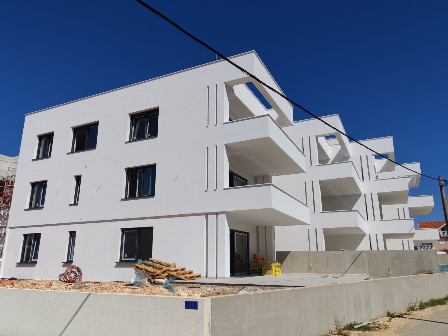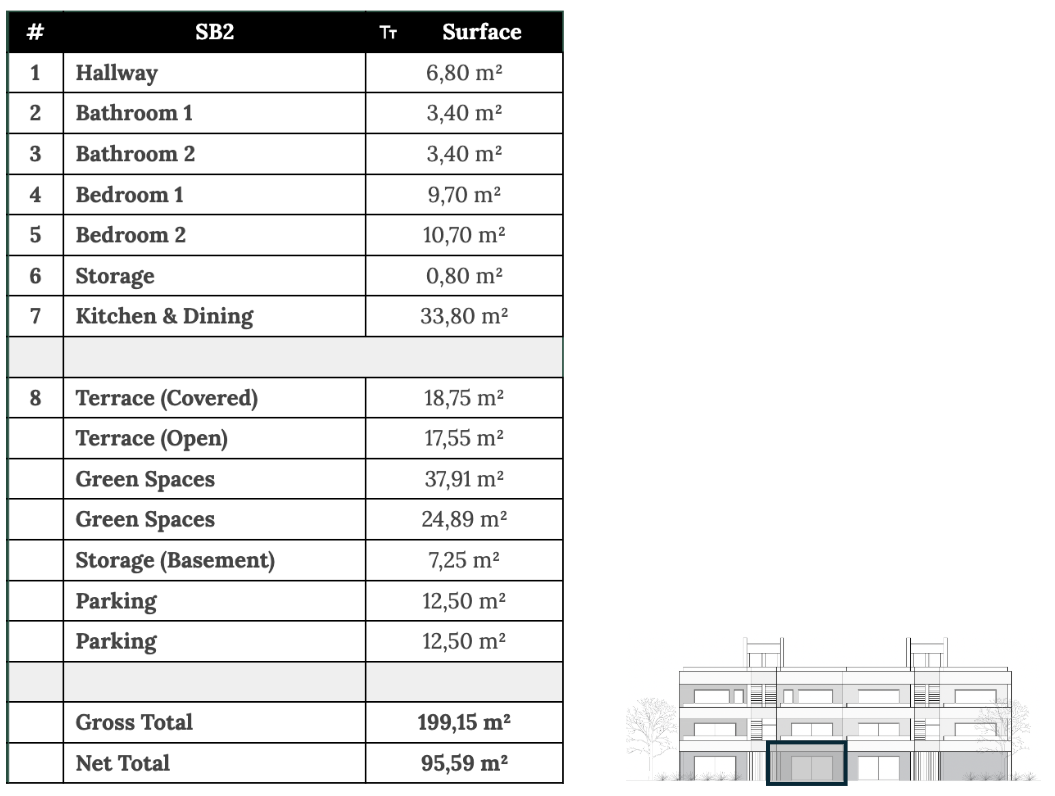 ZADAR, ZATON - Apartmán se zahradou 95 metrů od moře! SB2. Pouhých 95 metrů od moře, v klidném městečku Zaton, se staví moderní projekt s devíti luxusními apartmány, které se nacházejí v uzavřeném resortu s rampou u vjezdu. Osada je navržena jako soukromá oáza, skládající se z pěti budov, kde si obyvatelé užívají naprostého bezpečí a soukromí. Apartmány v horních patrech mají prostorné střešní terasy s krásným výhledem na moře a ostrovy, zatímco jednotky v přízemí mají vlastní zahrady. Ke každé bytové jednotce náleží dvě venkovní parkovací místa a za příplatek je možné si také zakoupit plně zařízené apartmány. Zvláštní pozornost byla věnována interiérovému designu, moderním technologickým řešením a kvalitním materiálům, aby byl dům funkční, bezpečný a pohodlný. Systém chytré domácnosti umožňuje ovládání osvětlení, klimatizace a vytápění a konstrukce je provedena s železobetonovou konstrukcí s 10 cm tepelné izolace. Součástí standardního vybavení jsou hliníkové truhlářské výrobky s elektrickými roletami, multisplitové klimatizace, podlahové vytápění v koupelnách a obývacím pokoji, videovrátný, kamerový systém a protipožární dveře. Byla použita prvotřídní sanitární keramika a podlahové krytiny od renomovaných výrobců. Plánované dokončení prací je do konce roku 2025. Apartmán SA1 se nachází v přízemí a skládá se ze dvou ložnic, dvou koupelen, úložné místnosti a prostorného obývacího pokoje s kuchyní a jídelnou. Jeho zvláštní hodnotu tvoří velká zahrada, krytá terasa a další nekrytá terasa. Zaton je klidné dalmatské městečko známé svým křišťálově čistým mořem, oblázkovými plážemi a uvolněnou středomořskou atmosférou, zatímco nedaleko se nachází Zadar - město bohaté na historii, kulturní památky a špičkové restaurace, ideální destinace pro bydlení i dovolenou. Prodávající je právnická osoba a kupující neplatí daň z nemovitosti. Pro veškeré další informace a pro domluvení prohlídky nás neváhejte kontaktovat.