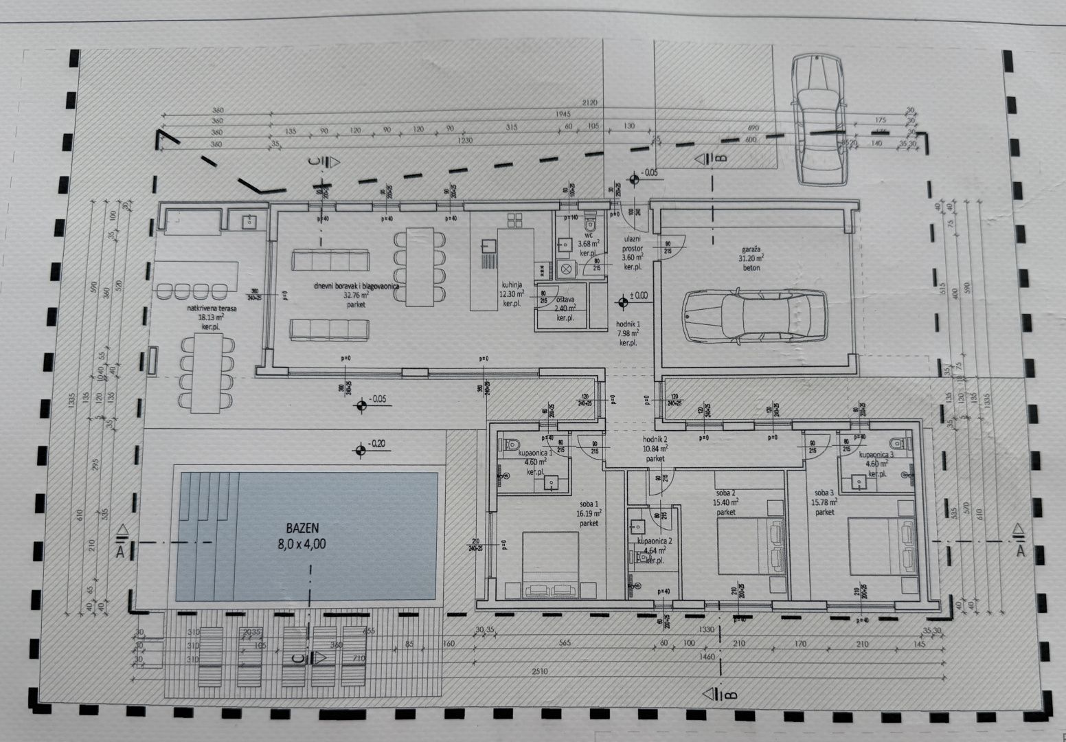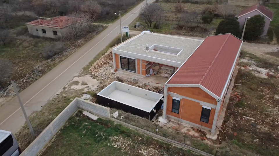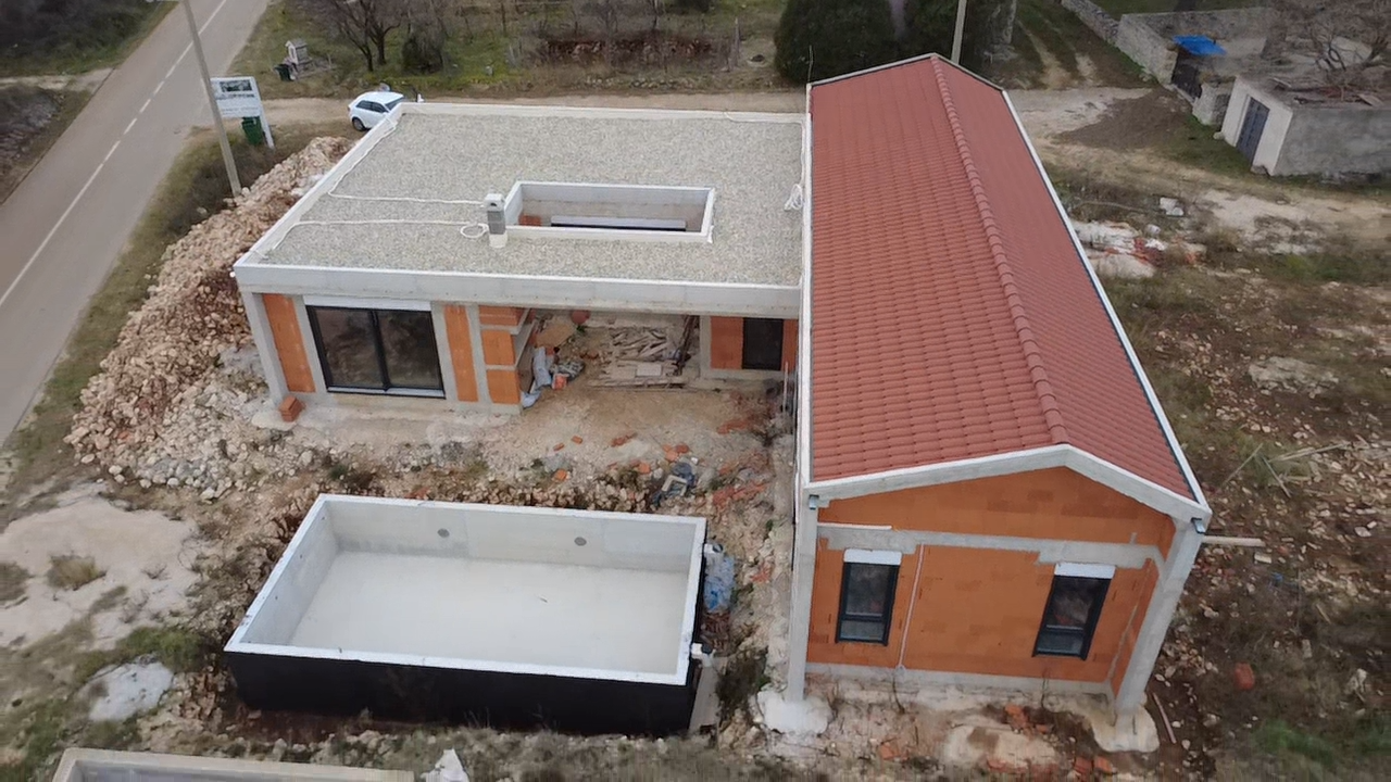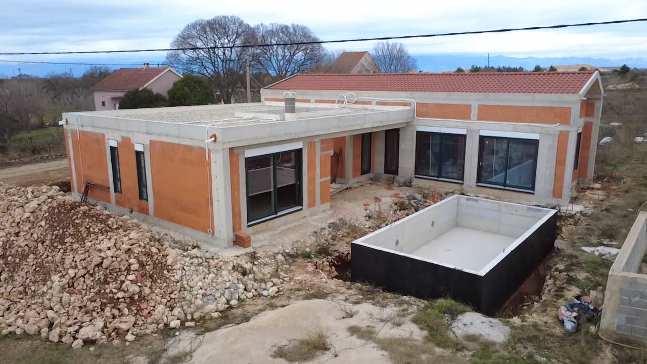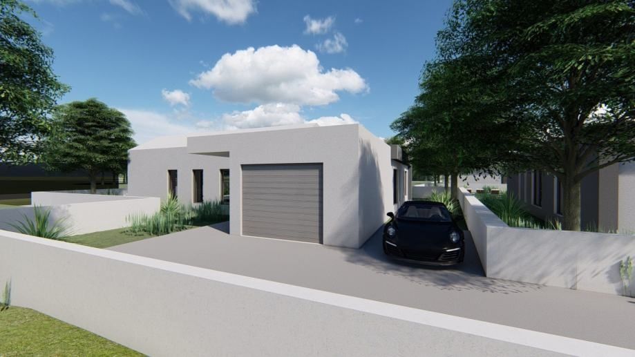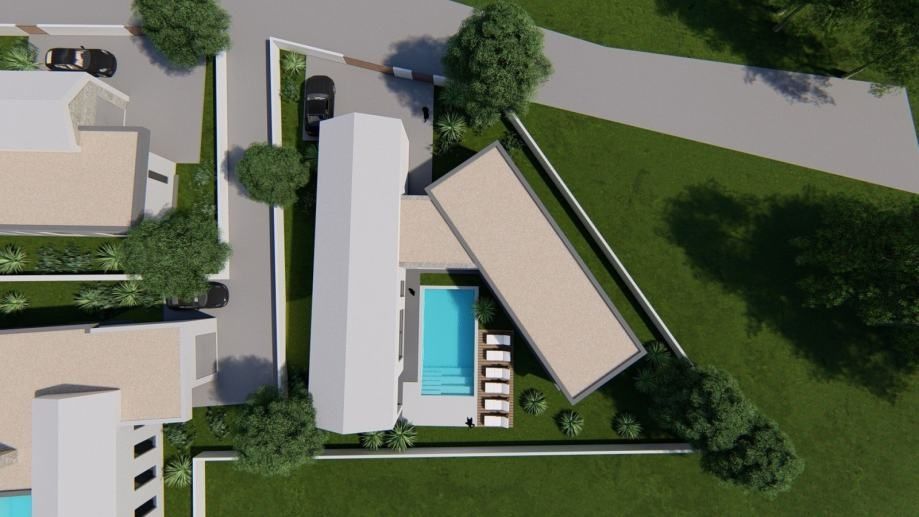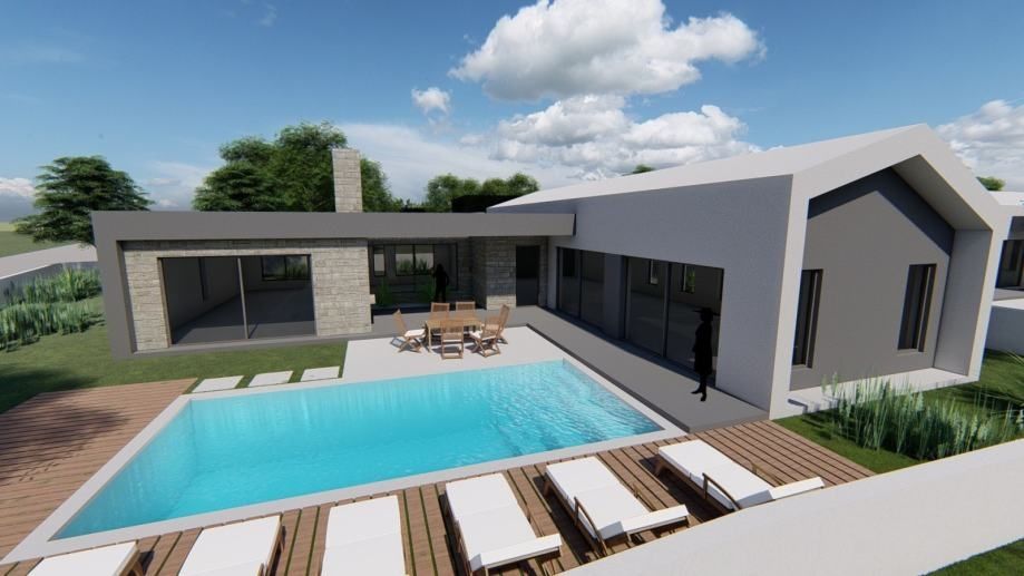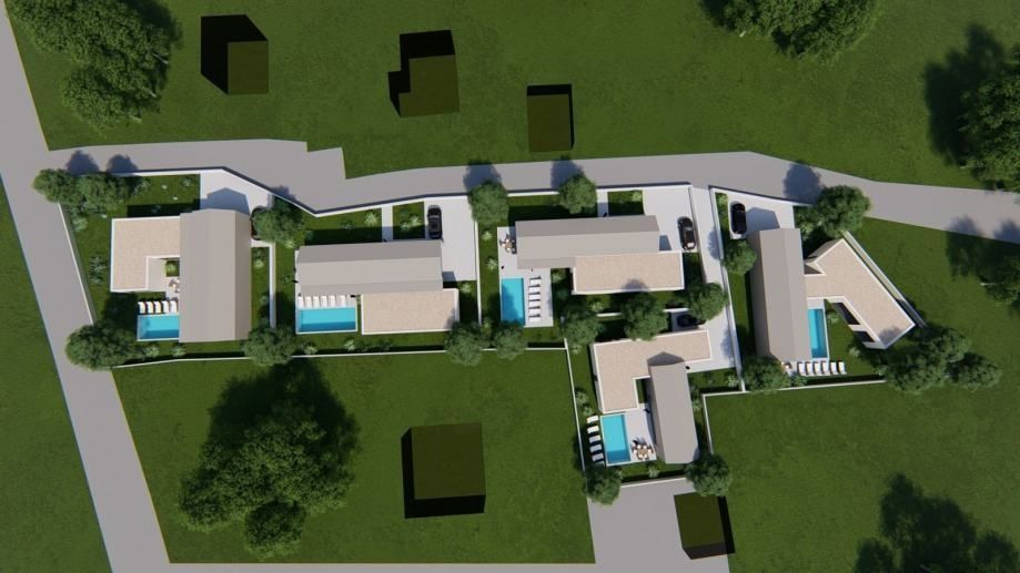 ZADAR, ZEMUNIK G. – Luxusní moderní vila (B) přízemní s bazénem V klidném a příjemném prostředí Zemuniku Gornji, místa známého svým tichem, bezpečností a vynikajícím dopravním spojením s městem Zadar, se nachází tato moderní přízemní vila, která nabízí dokonalou rovnováhu mezi soukromím, komfortem a moderním životním stylem. Zemunik Gornji se nachází jen pár minut jízdy od Zadaru a letiště Zadar, což z této lokality činí mimořádně praktické místo pro každodenní život, ale také mimořádně atraktivní pro investici. Vila je součástí exkluzivního projektu, který zahrnuje celkem pět samostatně stojících vil, pečlivě navržených na pozemcích o rozloze přibližně 550 m², které zajišťují prostornost, klid a vysokou úroveň soukromí. Zvláštní pozornost byla věnována architektuře, kvalitě konstrukce a detailům, které splňují vysoké standardy moderního bydlení. Vila B má 165,97 m² čisté užitné obytné plochy a dalších 18,14 m² čistého otevřeného prostoru. Vnitřní uspořádání je funkčně a elegantně navrženo a zahrnuje vstupní prostor, tři prostorné ložnice s vlastními koupelnami, světlý obývací pokoj propojený s kuchyní a jídelnou, samostatnou toaletu, garáž a další úložný prostor. Dvůr se soukromým bazénem poskytuje ideální podmínky pro relaxaci, venkovní bydlení a užívání si středomořského klimatu, zatímco klidná a bezpečná mikrolokace činí z této nemovitosti ideální volbu pro rodinný život, ale také jako luxusní rekreační dům nebo turistický pronájem. Plánované dokončení výstavby je naplánováno na rok 2026.
