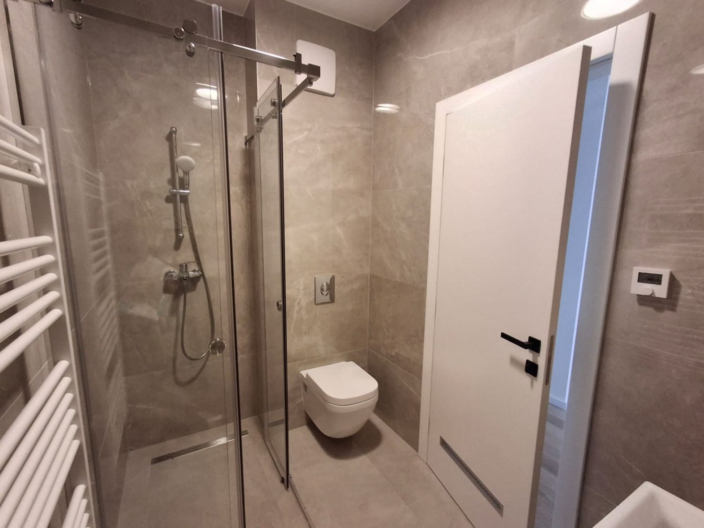 ZÁHREB, DONJE VRAPČE - Byt s dokonalou kombinací novostavby a praktičnosti V moderní a kvalitní novostavbě z roku 2024 se nachází atraktivní dvoupokojový byt s celkovou obytnou plochou 40 m². Nachází se ve druhém patře budovy. Budova je vybavena výtahem a další výhodou je, že výtah vás dopraví přímo z garáže do patra s bytem. K bytu náleží také garážové parkovací místo o rozloze 14,84 m² za 44 520 €, které se nachází na výhodném místě – druhé parkovací místo od vchodu v suterénu garáží budovy. Balkon bytu se nachází na boční, dvorní straně budovy a je částečně opatřen proskleným plotem v poloviční výšce, což mu dodává moderní estetický vzhled a dodatečnou otevřenost. Zároveň zajišťuje soukromí. Byt má mimořádně funkční dispozici. Skládá se ze vstupní haly, elegantní koupelny, kuchyně s otevřeným konceptem propojené s jídelnou a obývacím pokojem, pohodlné ložnice a prostorného balkonu s přístupem z obývacího pokoje. Byt se prodává nezařízený, což kupujícímu dává možnost uspořádat si prostor dle vlastního přání a stylu. Byt již má v otevřeném konceptu obývacího pokoje a jídelny vyhrazené místo pro kuchyň, ale kuchyň ještě nebyla postavena. Nový majitel má naprostou svobodu ve výběru materiálů, barev a dispozičního řešení. Byt je po celý den zaplaven přirozeným světlem. V koupelně a obývacím prostoru je podlahové vytápění s termostatem. V obývacím pokoji a ložnici jsou instalovány klimatizace, které zajišťují optimální teplotu po celý rok. K většímu komfortu přispívají elektrické žaluzie. Ve stropě je instalováno velké množství elektrických zásuvek, což umožňuje flexibilní umístění osvětlení. Koupelna je obložena přírodním mramorovým vzorem v zemitých, neutrálních tónech. Má sprchový kout se skleněnými posuvnými dveřmi a lineární umyvadlem pro elegantní a praktický odtok vody. Kvalitní konstrukce, moderní vybavení a promyšlené detaily dělají z této nemovitosti moderní, funkční a pohodlný obytný prostor. Jsme vám k dispozici pro veškeré dotazy a informace.