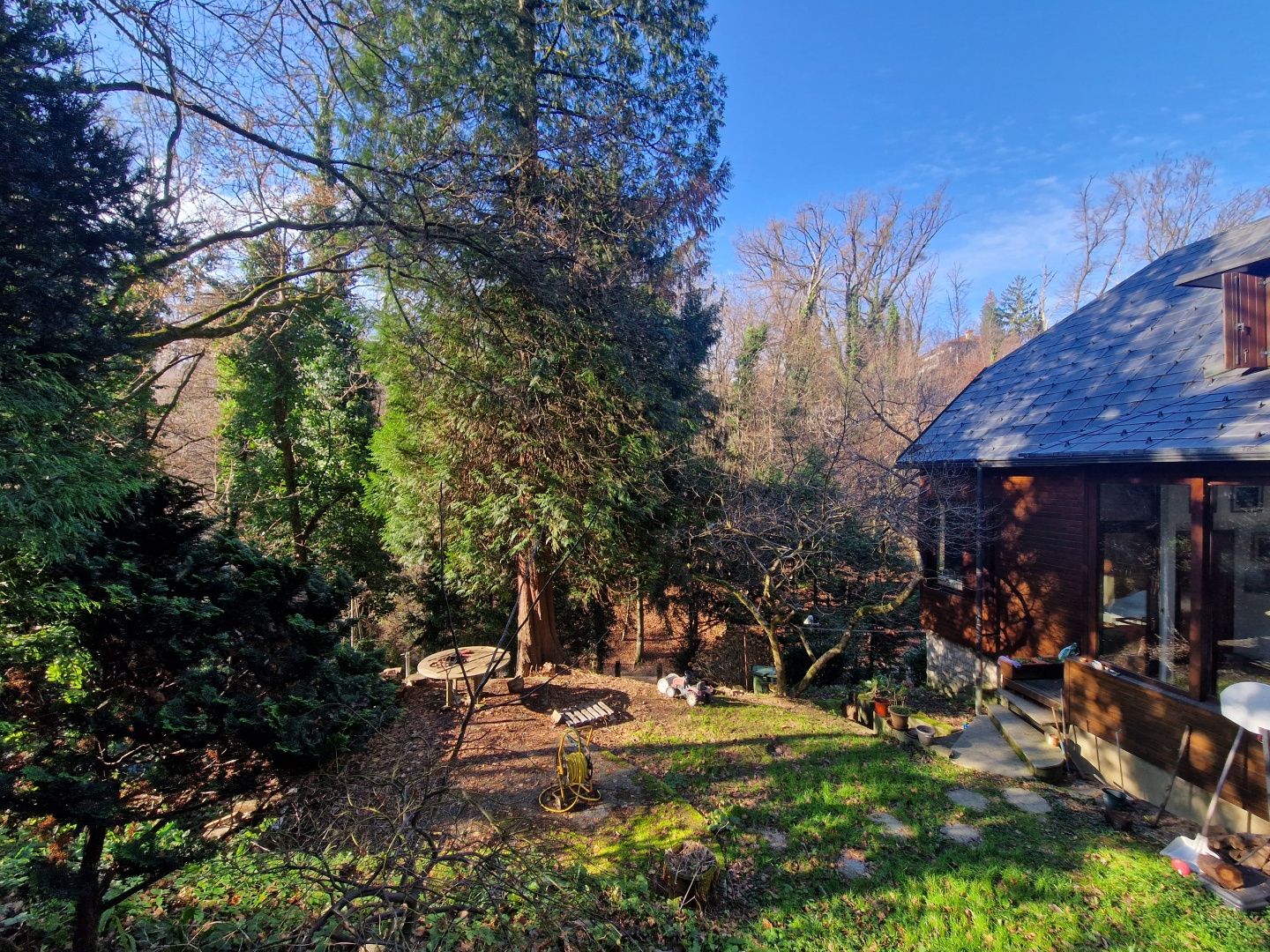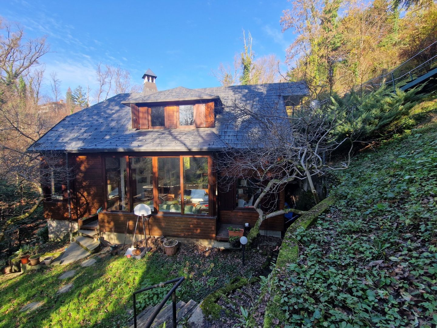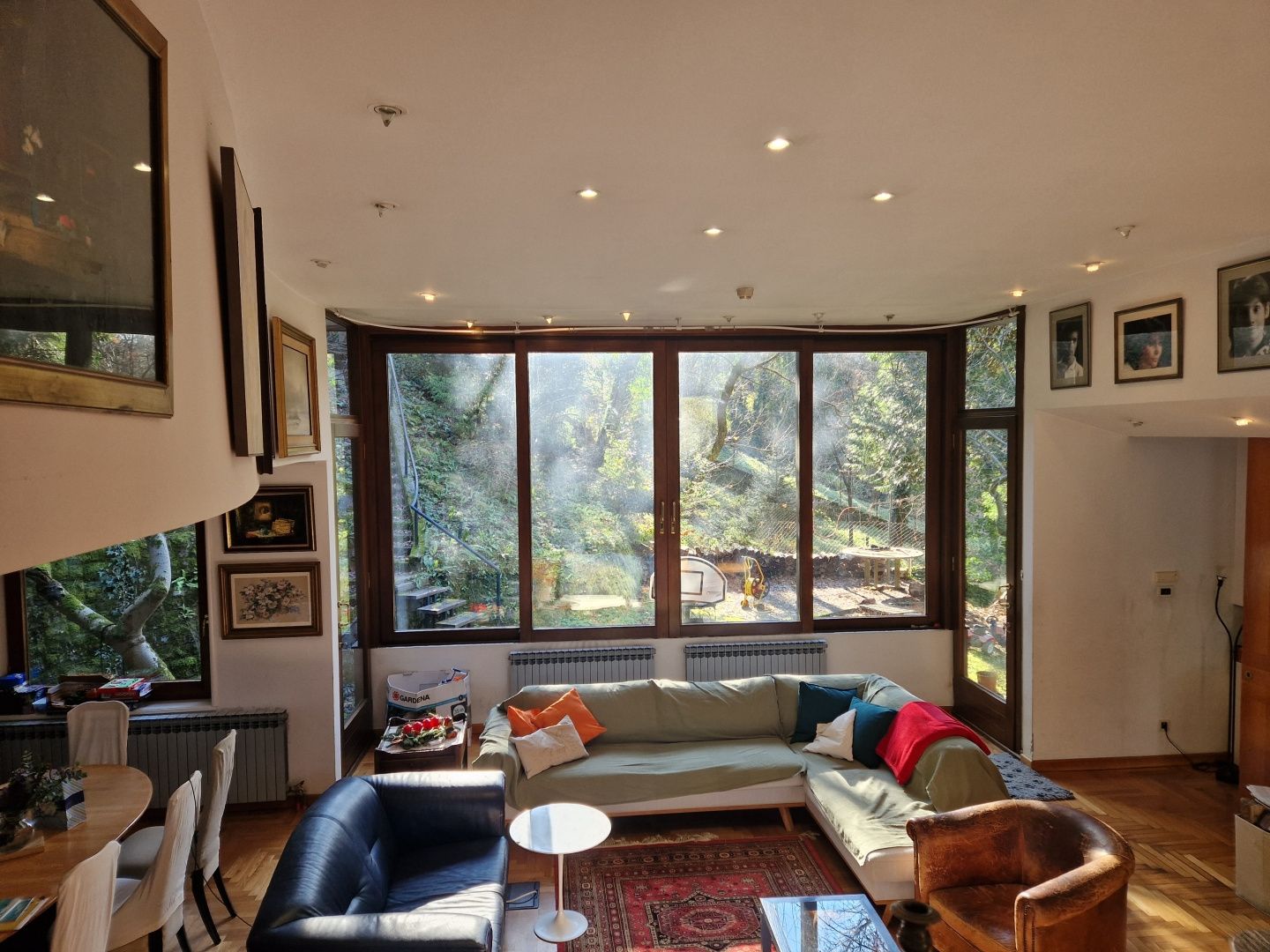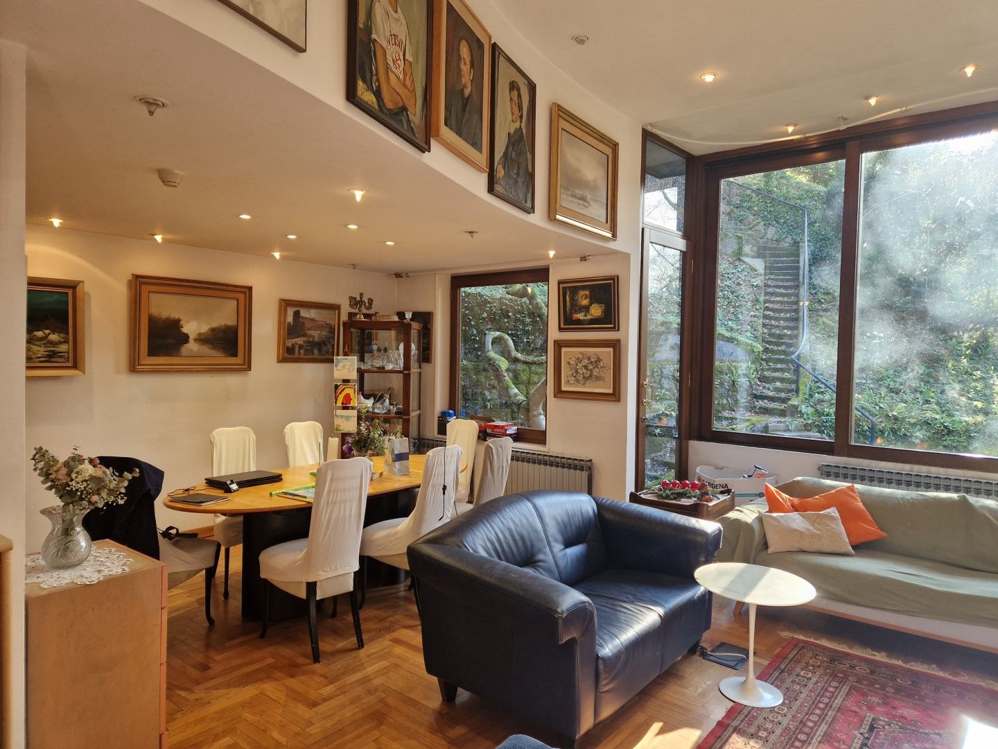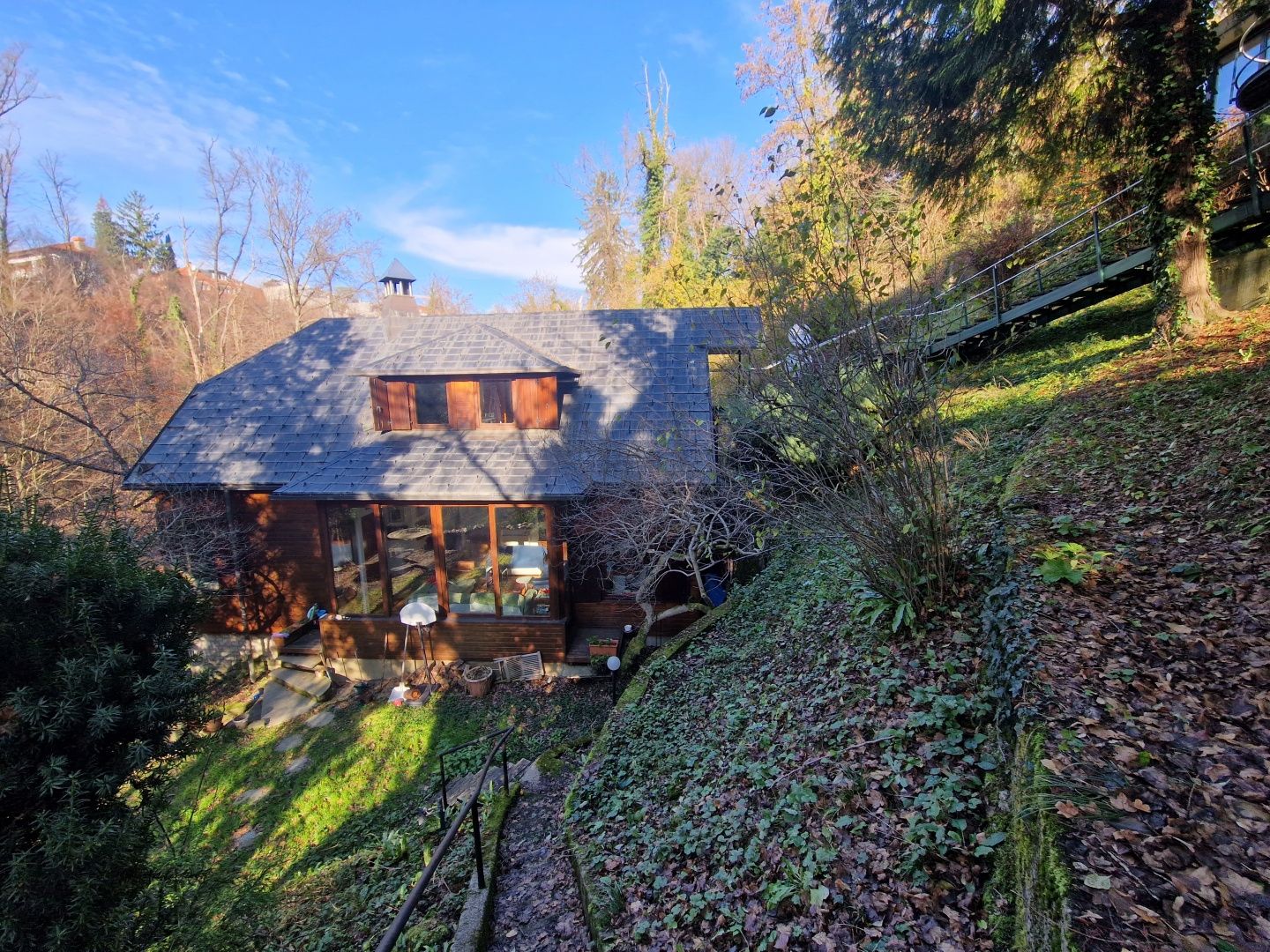 ZÁHŘEB, HORNÍ MĚSTO - Unikátní dům zasazený do přírody V srdci zeleně, pouhých 12 minut chůze od Ilice a centra Záhřebu, se nachází tento unikátní dům, který nabízí naprostý klid a soukromí – bez sousedů a s výhledem na přírodu Dubravkin put a Tuškanac. Vedle domu se nachází i obchodní prostor. Obytný dům se rozkládá na třech podlažích a má celkovou plochu 262 m2. V prvním patře domu se nacházejí dvě ložnice, pracovna a dvě koupelny. Vstup do druhého patra vede do obývacího pokoje. Prostorný obývací pokoj je propojen s velkou terasou zasazenou do přírodního prostředí, což vytváří dokonalé propojení mezi interiérem a exteriérem. Půdorys druhého patra doplňuje kuchyň, jídelna a hlavní ložnice s vlastní koupelnou. Třetí patro domu je navrženo jako samostatná bytová jednotka se dvěma ložnicemi. Výše uvedený byt je se zbytkem domu propojen vnitřním schodištěm a má také samostatný vchod zvenčí. Vedle domu se nachází samostatná budova s obchodním prostorem o rozloze 112 m2, ideální pro pracovní tým deseti lidí. Půdorys obchodního prostoru se skládá z větší otevřené místnosti u vchodu, dvou menších samostatných galerií a koupelny s toaletou. Tato lokalita, která se nachází podél slavné promenády Dubravkin put, nabízí výjimečnou kombinaci soukromí a dostupnosti. Veškerá městská občanská vybavenost je v blízkosti a veřejná doprava (autobusová linka 105) zajišťuje rychlé spojení se zbytkem města. Architektonický návrh domu a obchodní budovy je podepsán významným záhřebským architektem a profesorem, který také dohlížel na celou stavbu. Objekt byl postaven s využitím pilotového systému v kombinaci s kovovými a železobetonovými konstrukcemi, přičemž přístupové schodiště je vyrobeno z oceli a dřeva, rovněž zajištěno pilotovými základy. Díky této konstrukci neutrpěla budova během záhřebských zemětřesení žádné škody – potvrzení výjimečné kvality a stability konstrukce. Vzhledem ke své jedinečné poloze v přírodním prostředí, přesto jen krůček od centra, je tato nemovitost ideální volbou pro bydlení, letní sídlo nebo jako investiční příležitost.