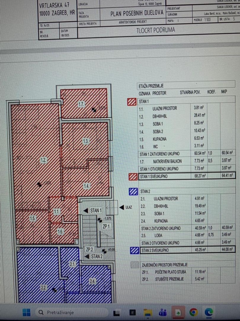 ZÁHŘEB, LAŠČINA - NOVOSTAVBA V ŽÁDANÉ LOKALITE! Prodává se moderní dvoupatrový byt v novostavbě o celkové rozloze 100 m², která se nachází v klidné a zelené čtvrti Laščina, nedaleko parku Maksimir. Byt byl pečlivě navržen tak, aby poskytoval maximální funkčnost, pohodlí a moderní způsob bydlení, a je uspořádán na dvou podlažích. Dispozice: * prostorný obývací pokoj propojený s kuchyní a jídelnou * tři ložnice * dvě koupelny * samostatná toaleta * dva balkony ideální pro relaxaci a trávení času venku Velké prosklené plochy poskytují dostatek přirozeného světla, zatímco moderní uspořádání prostoru vytváří příjemné a funkční obytné prostředí. Vybavení a další vybavení: * podlahové vytápění * klimatizace * elektrické rolety * venkovní parkovací místo * garážové parkovací místo v ceně * možnost výběru podlahových materiálů dle přání kupujícího po dohodě s majitelem Byt byl postaven dle moderních stavebních standardů s důrazem na energetickou účinnost, kvalitní materiály a dlouhodobou hodnotu nemovitosti. Lokace: Čtvrť Laščina je známá svým klidným okolím a zelení a v bezprostřední blízkosti se nachází park Maksimir, jedna z nejkrásnějších zelených oáz Záhřebu. V blízkosti se nacházejí: * obchody * školy a školky * nemocnice a lékárny * dětská hřiště * veřejná doprava Vynikající dopravní spojení umožňuje rychlý přístup do centra města a zároveň poskytuje klid a soukromí. Další informace: * moderní dvoupatrový byt v novostavbě * ideální pro rodinné bydlení nebo investici * cena dohodou Pokud hledáte kvalitní a moderní byt v atraktivní lokalitě, tato nemovitost představuje vynikající příležitost. Pro více informací, prezentaci projektu nebo sjednání prohlídky nás prosím kontaktujte s důvěrou.