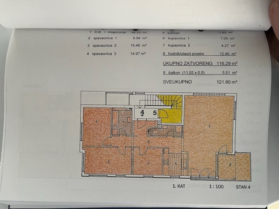 ZÁHREB, MIKULIĆI - Prostorný čtyřpokojový byt s garáží a dvěma parkovacími místy v prvním patře Prodává se prostorný a funkční čtyřpokojový byt s celkovou čistou užitnou plochou 121 m², který se nachází v celém prvním patře bytového domu s celkem dvěma podlažími. K bytu náleží také garáž o rozloze 10,68 m² a dvě venkovní parkovací místa před ní, která nejsou zahrnuta v ceně. Budova byla postavena v roce 2004, je pravidelně udržována a ve výborném stavu a byt vyniká dostatkem přirozeného světla a mimořádně logickým uspořádáním místností. Byt je uspořádán tak, že soukromá a obytná část jsou jasně odděleny. Vstupní hala vede do samostatné spací části, která se skládá ze tří ložnic a prostorné koupelny. V druhé části bytu se nachází další toaleta, kuchyň propojená s jídelnou a velký obývací pokoj s přístupem na terasu, ideální pro relaxaci. Budova je postavena kvalitně, s železobetonovou konstrukcí, která neutrpěla žádné škody při zemětřesení. Je vybaven zateplenou fasádou, PVC tesařskou truhlářstvím, dubovými parketami, vstupními dveřmi proti vloupání a vytápění je plynové ústřední s dodatečně instalovanou klimatizací. Kromě možnosti koupě je zde také možnost výměny za menší byt nebo jinou investiční nemovitost, což tuto nabídku činí ještě flexibilnější a zajímavější. Byt je ideální volbou pro rodinu, která hledá pohodlný, světlý a funkční domov v kvalitní budově s vynikajícím dispozičním řešením a kompletním parkovacím řešením.