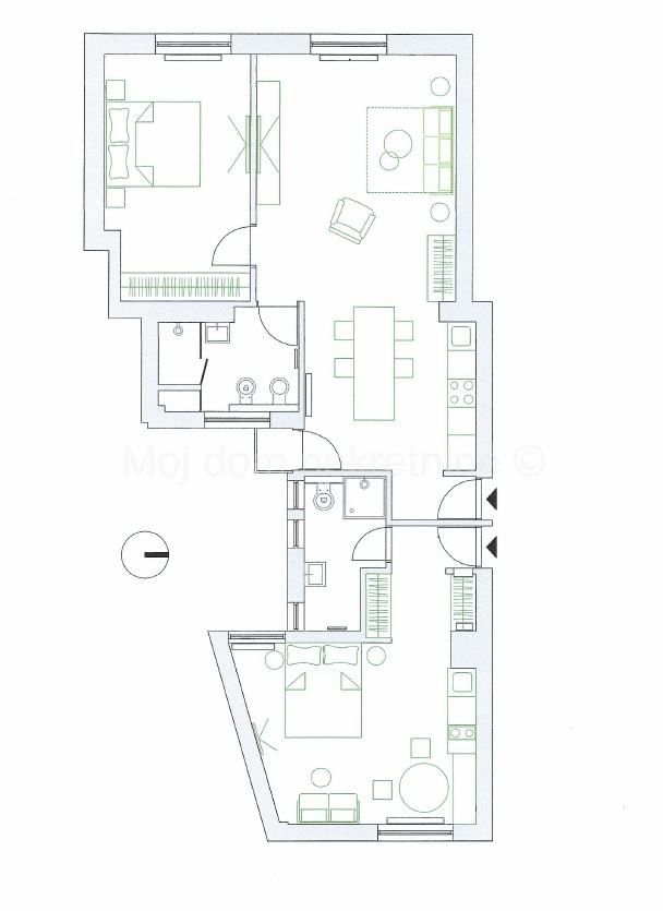 ZÁHŘEB, RIBNJAK - Komfortní byt v centru města V Záhřebu, v atraktivní a vyhledávané čtvrti Ribnjak, jen pár minut chůze od náměstí Bana Jelačiće, se prodává moderně zařízený byt o celkové rozloze 83 m2. Nemovitost je funkčně rozdělena na dva samostatné byty, které se úspěšně využívají ke krátkodobému pronájmu, což z ní činí vynikající investiční příležitost. Větší byt se skládá z prostorného obývacího pokoje s otevřeným konceptem, který kombinuje kuchyň s jídelnou, samostatných ložnic a koupelny. Prostor je světlý, vzdušný a navržen s důrazem na pohodlí a maximální využití zastavěné plochy. Druhý byt je koncipován jako studio a kombinuje spací část, kuchyň s jídelnou v jednom prostoru spolu se samostatnou koupelnou. Chytře organizované uspořádání umožňuje funkčnost a příjemný pobyt. Byt byl kompletně zrekonstruován v roce 2018, kdy byly obnoveny podlahy, instalovány PVC truhlářské práce a bezpečnostní dveře a vyměněny všechny instalace (voda, elektřina a plyn), což zajišťuje dlouhodobou bezpečnost a kvalitu bydlení. Je vybaven klimatizací a prodává se kompletně zařízený a připravený k pokračování v turistických aktivitách nebo bydlení bez dalších investic. K bytu patří také úložný prostor v suterénu budovy. Budova byla postavena v roce 1938 a nachází se v bezprostřední blízkosti základních a středních škol, mateřských škol, nemocnic, veřejné dopravy (tramvaj) a veškeré občanské vybavenosti nezbytné pro kvalitní život ve městě. Vlastnictví 1/1, bez věcných břemen. Díky své vynikající poloze v samém centru města a již zavedenému modelu pronájmu představuje tato nemovitost na trhu vzácnou příležitost.